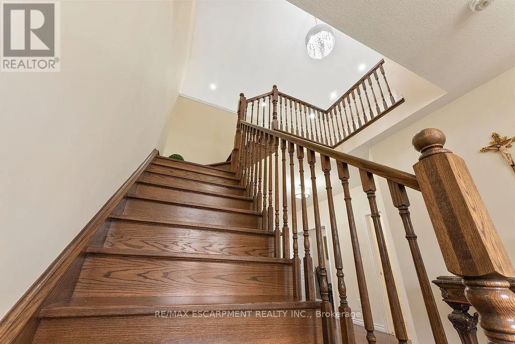 TRAFALGAR DR Stunning Stoney Creek Mountain Home Nestled in a prime location. This beautifully designed 2,553 sq. ft. home offers an exceptional layout perfect for families. Features a main floor office which can be used as a 5th bedroom. Enjoy the convenience of an attached double garage with inside access to a spacious main floor mudroom. The exposed aggregate concrete driveway fits up to 4 vehicles. The fully fenced backyard was professionally landscaped in 2024 and includes new grass (front and back), a concrete patio, garden shed, and a security camera system. Inside, you'll find countless upgrades-highlighted by granite counter tops and pot lights throughout, a newer ensuite shower installed in 2024. Bonus: $330/year in passive income from a solar panel contract. A must-see! (id:27476)