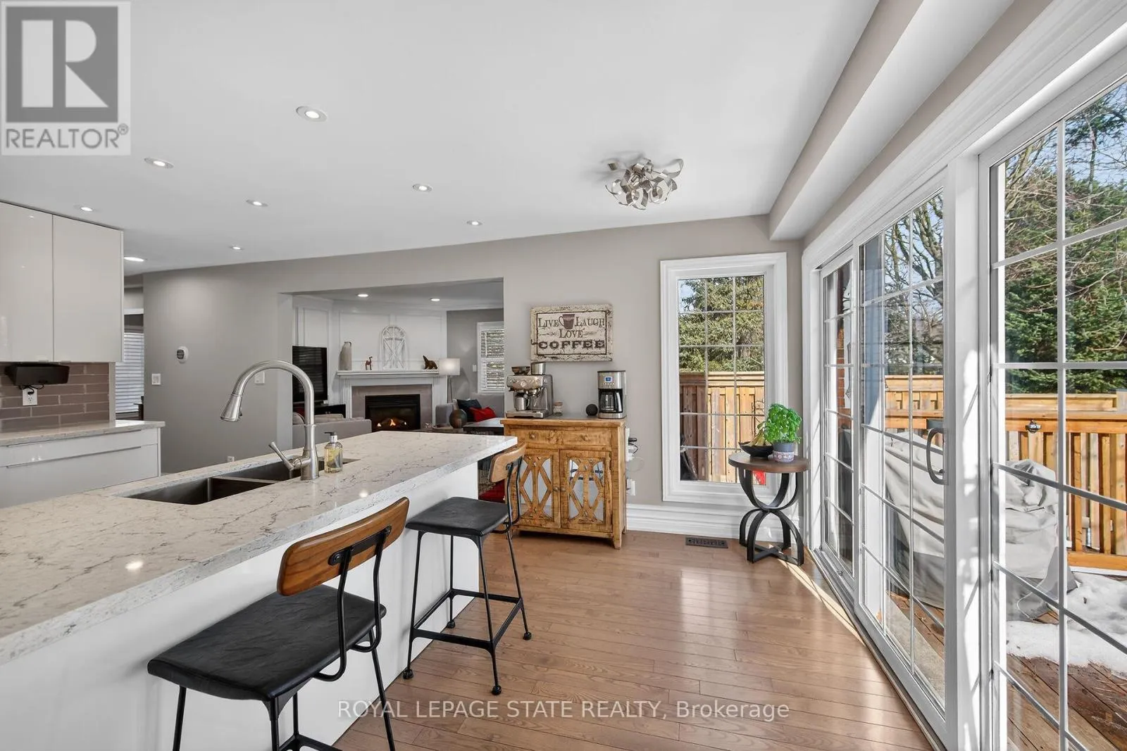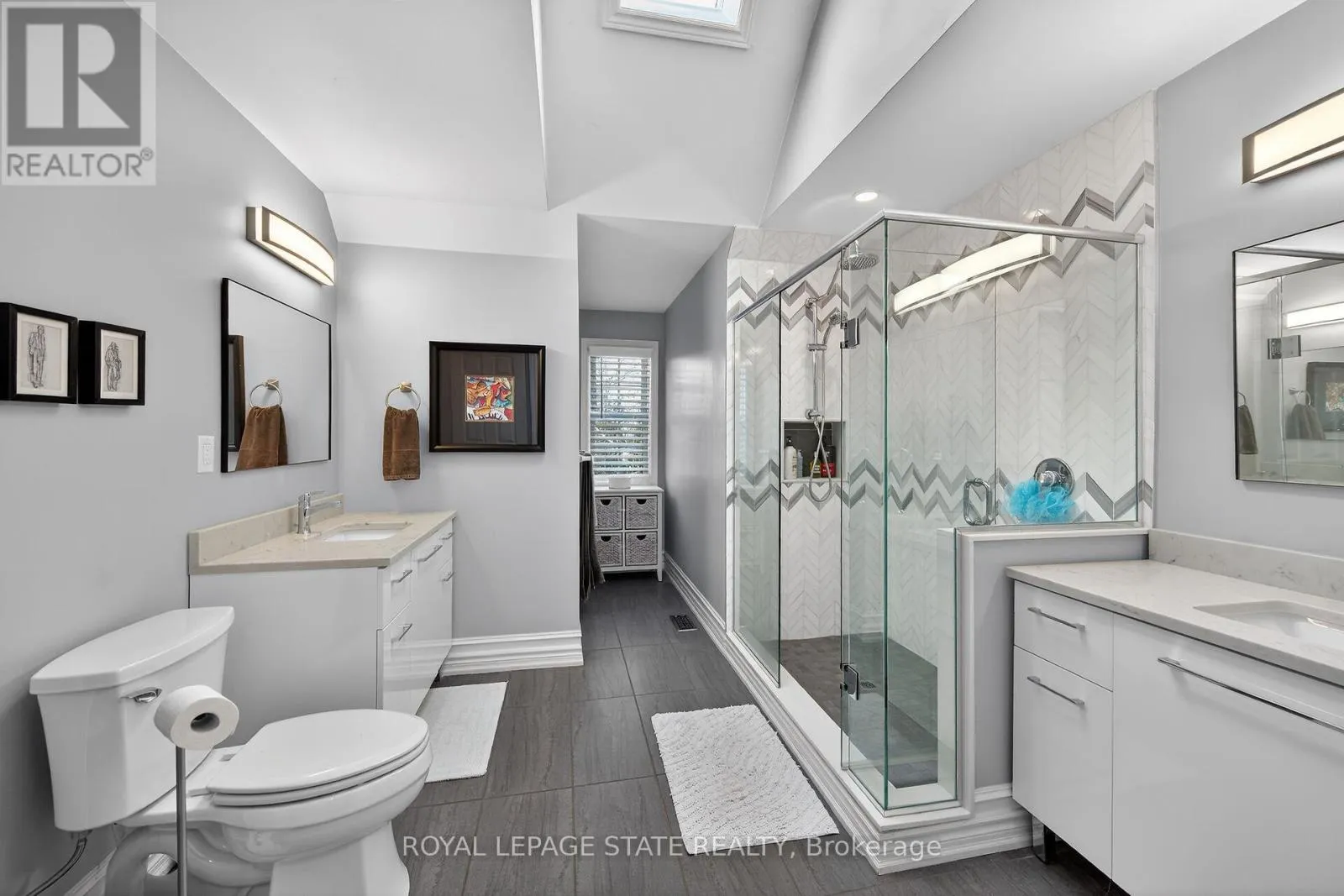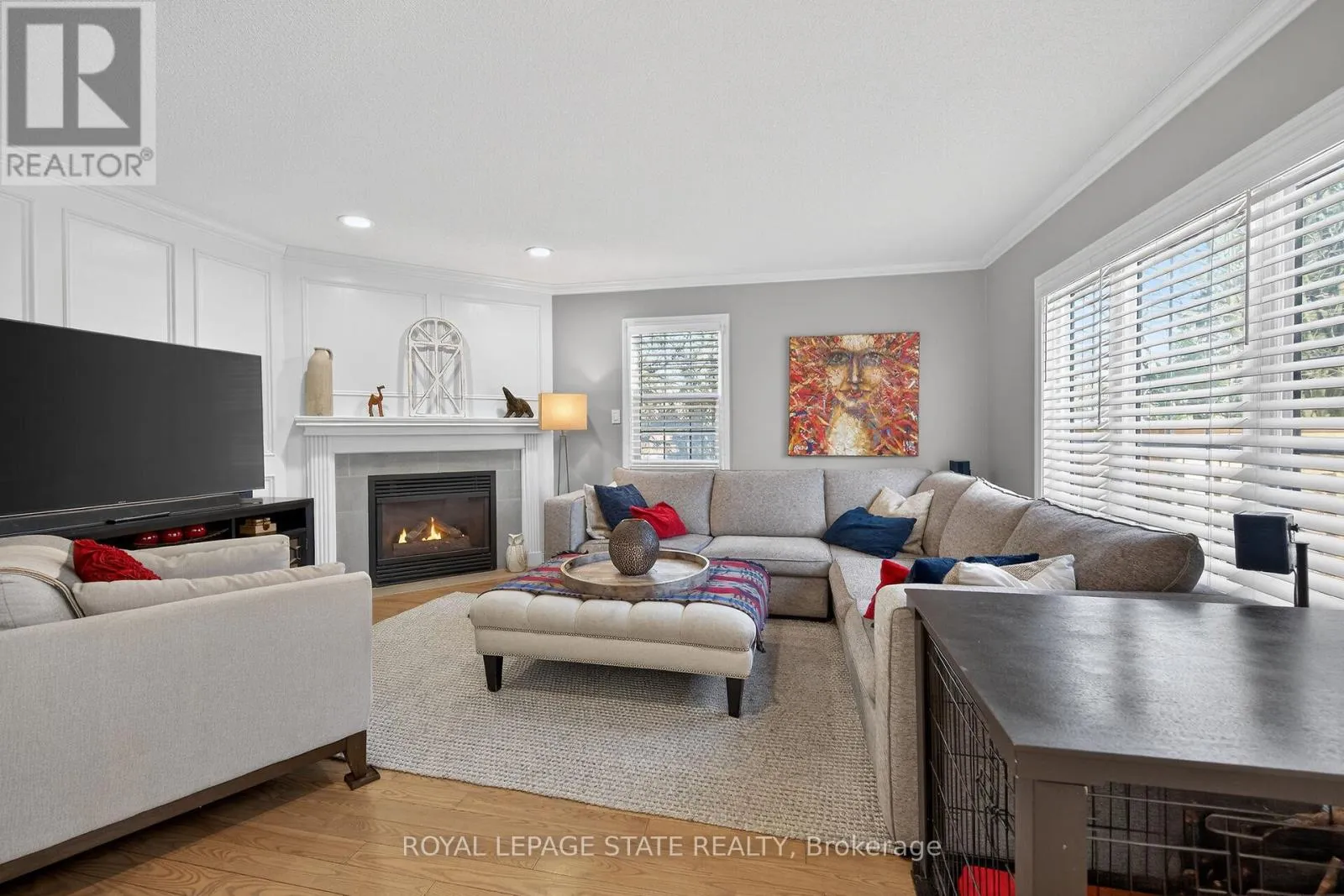 Cross Streets: Amberly Blvd. ** Directions: Wilson St. W. between Amberly Blvd. & Hamilton Dr. Spacious 2-storey end-unit condo townhouse providing 2946 sq ft of beautifully updated living space in sought-after Ancaster. This bright and airy home features vaulted ceilings, oversized windows and an abundance of skylights, filling the interior with natural light. Thoughtfully designed layout includes a ground-floor family room with cozy gas fireplace, as well as separate living and dining rooms ideal for entertaining. Elegant ash flooring runs throughout the first and second floors. The stunning renovated kitchen showcases white high-gloss cabinetry, a full pantry wall, premium quartz countertops, glass backsplash, pot lights, and top-of-the-line stainless steel AGA appliances. The basement was renovated in 2020, featuring a spacious recreation room, office space, additional bedroom, and a large 3-piece bathroom. A rare opportunity to enjoy spacious, low-maintenance living (including snow removal from driveway and walkway), close to highway access, shopping, and amenities in one of Ancaster's most desirable neighborhoods. RSA. SQFTA. (id:27476)