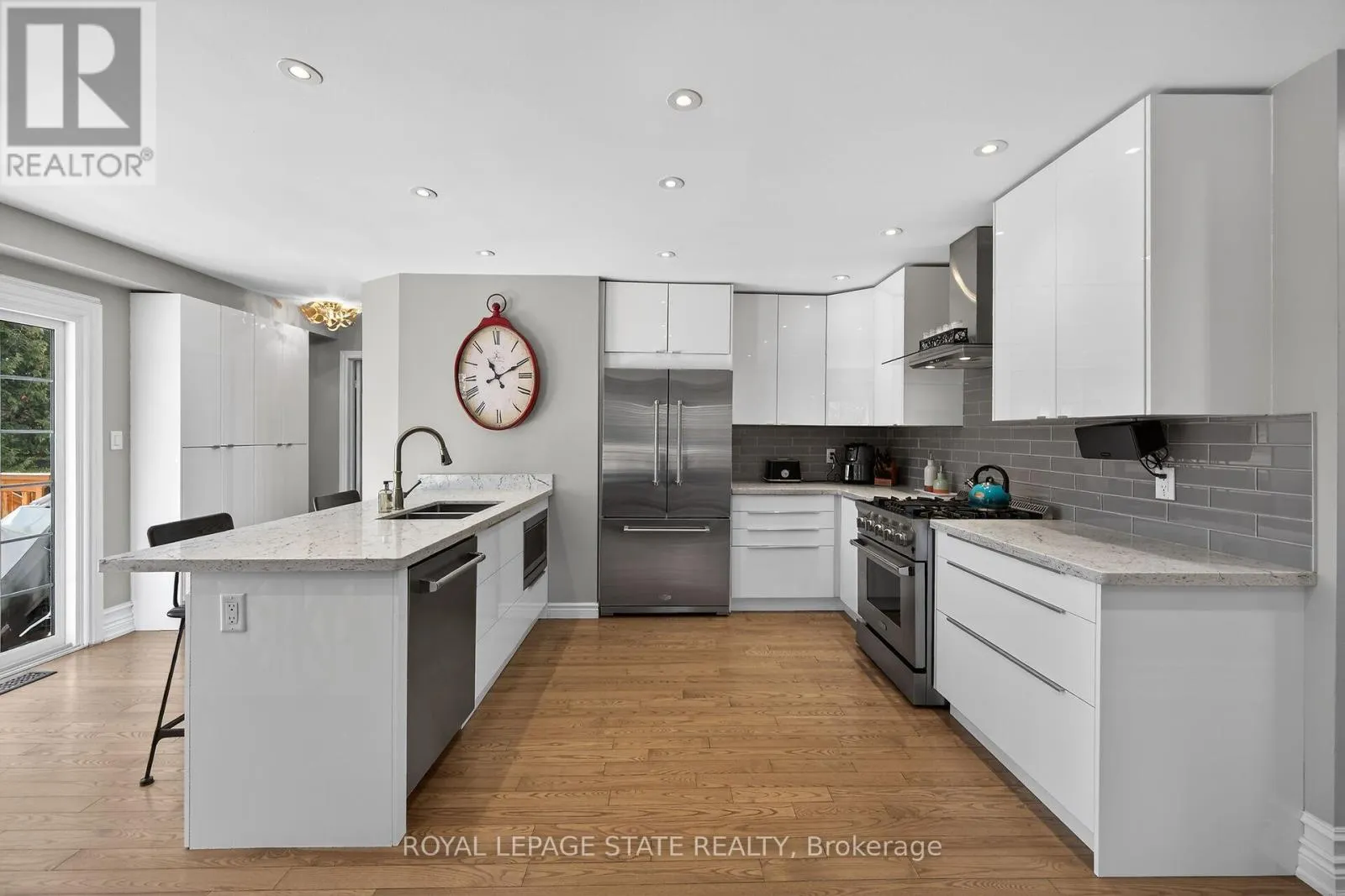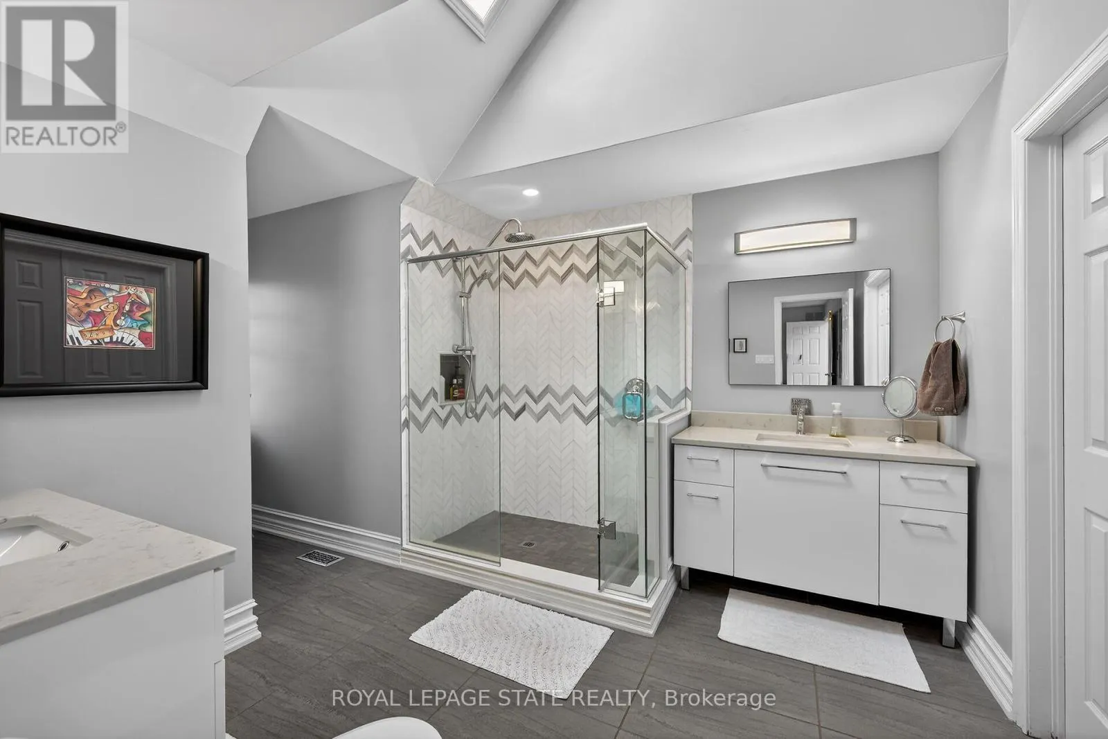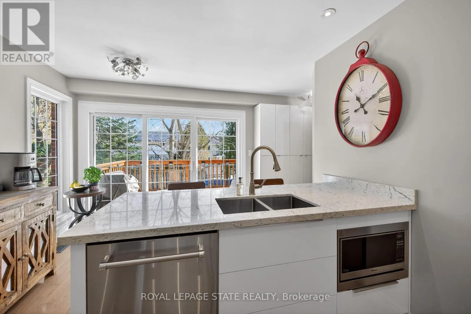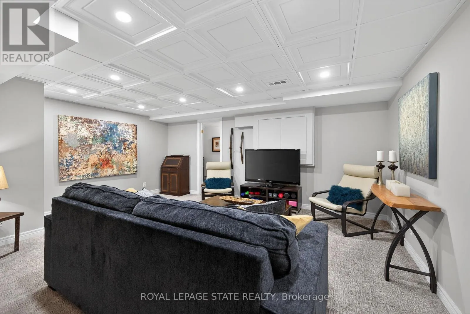 Cross Streets: Amberly Blvd. ** Directions: Wilson St. W. between Amberly Blvd. & Hamilton Dr. Spacious 2-storey end-unit condo townhouse providing 2946 sq ft of beautifully updated living space in sought-after Ancaster. This bright and airy home features vaulted ceilings, oversized windows and an abundance of skylights, filling the interior with natural light. Thoughtfully designed layout includes a ground-floor family room with cozy gas fireplace, as well as separate living and dining rooms ideal for entertaining. Elegant ash flooring runs throughout the first and second floors. The stunning renovated kitchen showcases white high-gloss cabinetry, a full pantry wall, premium quartz countertops, glass backsplash, pot lights, and top-of-the-line stainless steel AGA appliances. The basement was renovated in 2020, featuring a spacious recreation room, office space, additional bedroom, and a large 3-piece bathroom. A rare opportunity to enjoy spacious, low-maintenance living (including snow removal from driveway and walkway), close to highway access, shopping, and amenities in one of Ancaster's most desirable neighborhoods. RSA. SQFTA. (id:27476)