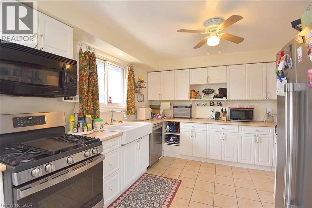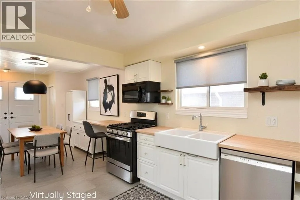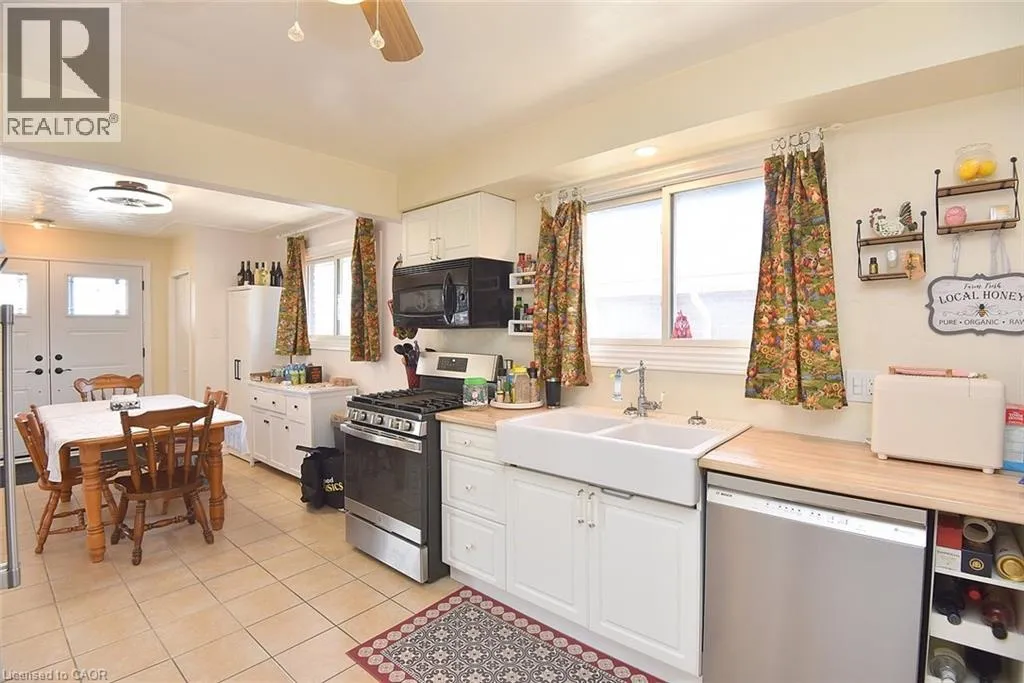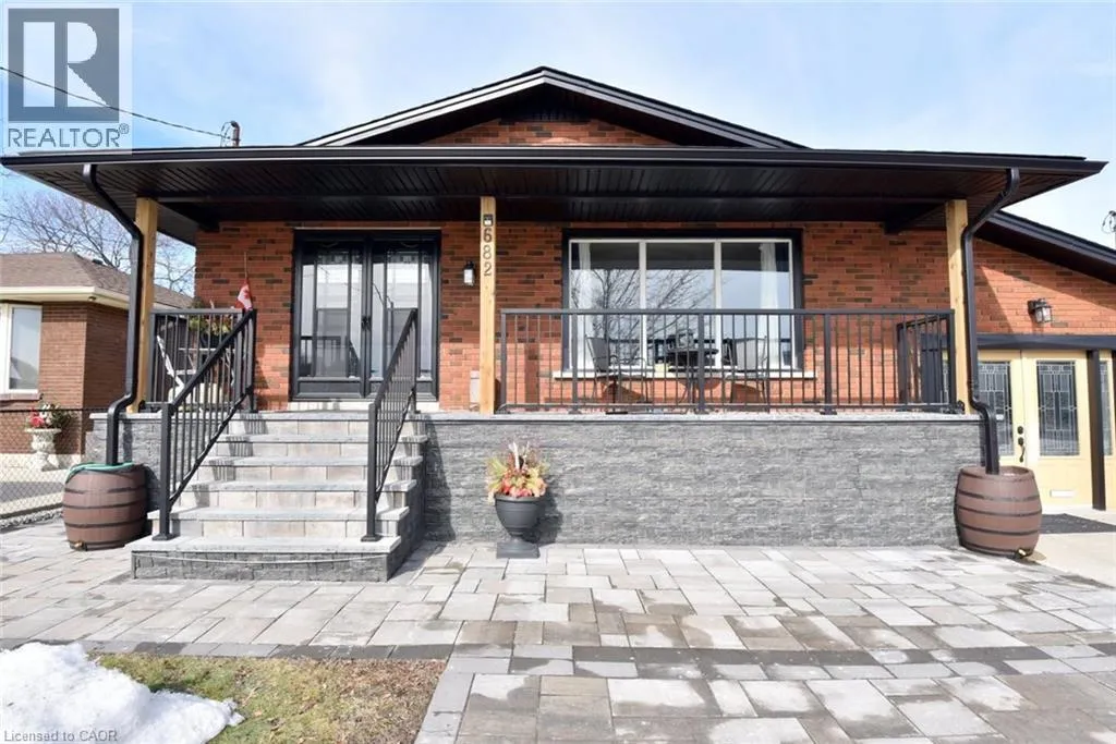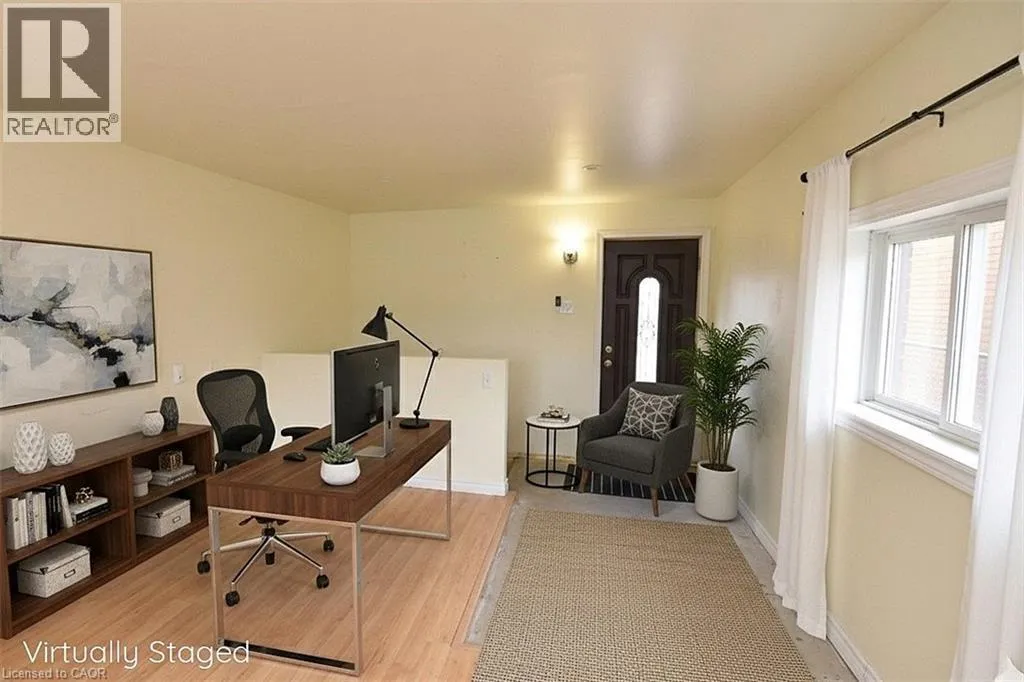 Mohawk Rd., W., West of Upper Paradise Rd. Ideal WORK FROM HOME. The garage is finished as an office with insulation and drywall and force air heating with an entrance to the basement family room. Large bungalow built in 1968. Recently renewed double front doors, basement windows, complete basement refinished, interlock patio, extended turn-a-bout driveway in inter-locke paving providing 7 parking spots, front porch and canopy completely renewed, evestrough and flashing, all new stainless appliances, and new fencing. Fully fenced yard. The side door entry on the opposite side of the house leds to the finished basement & is ideal for a secondary dwelling unit with the addition of a kitchenette or to the main floor. The garage can be easily converted back to a garage with a new garage door. Some images are virtually staged. (id:27476)
