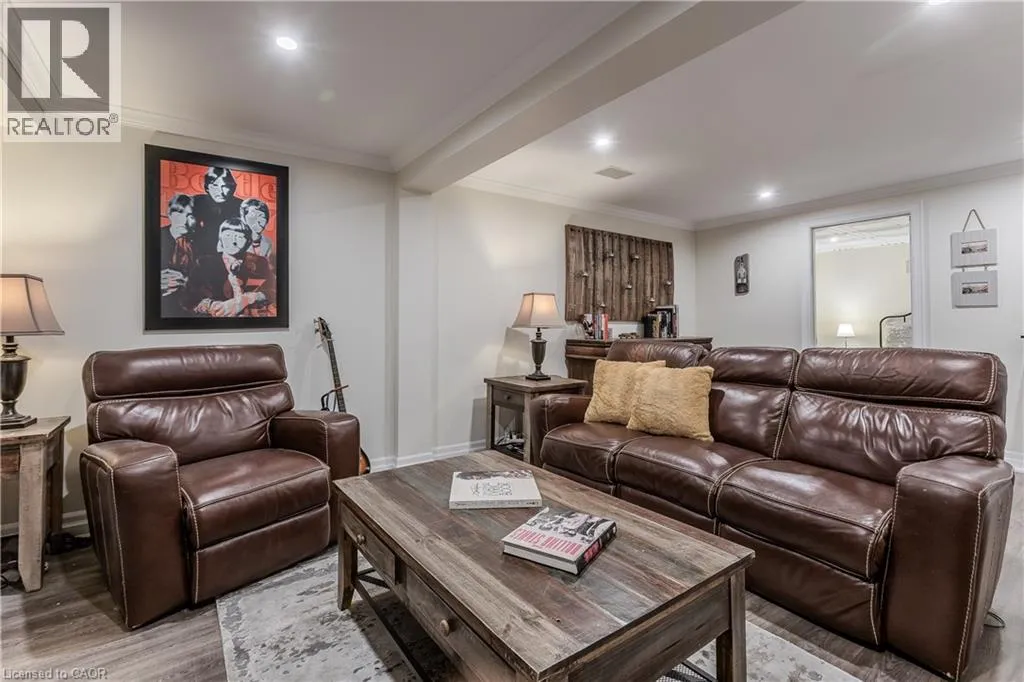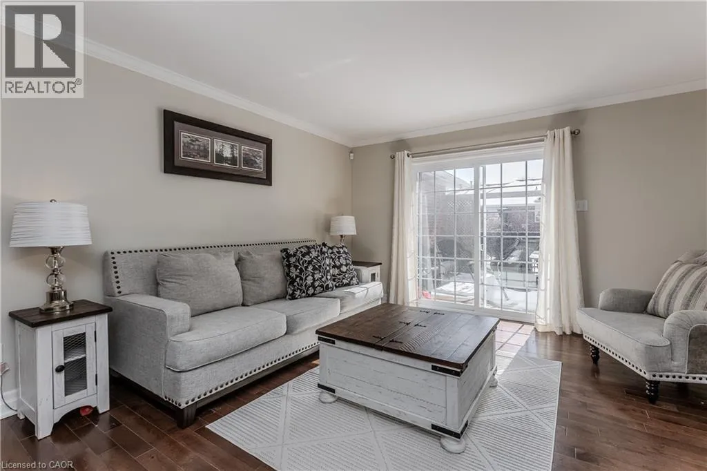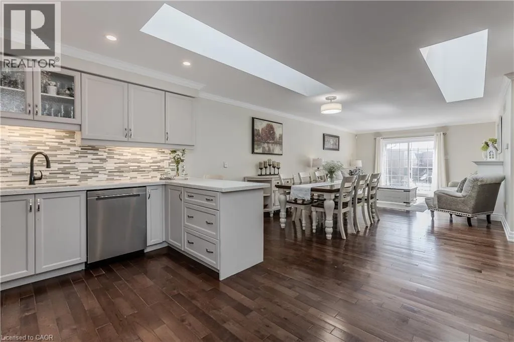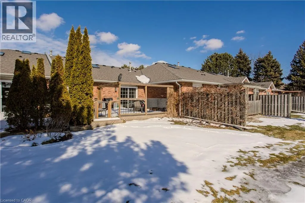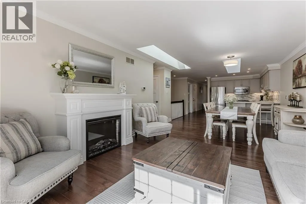 Golf Links Road to Meadowlands Blvd. Tucked into a quiet, family-friendly Ancaster community known for its nature trails, this beautiful bungalow townhome offers the perfect blend of comfort, convenience, and low-maintenance living â with over 2000sf of living space for your family to grow. Steps from Meadowlands power centre for all your shopping and dining needs, including movie theatre. Mins to historic old town Ancaster, the Old Mill Restaurant, parks, all amenities, plus easy highway access, this location truly checks every box. From the moment you arrive, the inviting curb appeal and lovely gardens set the tone. Inside, hardwood flooring and an open-concept layout create a welcoming atmosphere ideal for everyday living. The kitchen is thoughtfully designed with granite countertops, tile backsplash, SS appliances, peninsula w/ breakfast bar, and a skylight that fills the space with natural light. The adjoining dining area flows seamlessly into the spacious living room, complete with a electric fireplace, additional skylight, and walkout to the rear deck â perfect for hosting family gatherings. The main level features a spacious primary retreat with dual closets and a contemporary 3-piece ensuite showcasing a glass walk-in shower. A second bedroom â currently used as a home office â offers additional flexibility for families, along with a 3-piece main bathroom for added convenience. The fully finished lower level expands your living space even further, with laminate flooring throughout, a large rec room featuring an electric fireplace and built-in media wall, 2 additional bedrooms, workshop/storage, and a dedicated home office. Whether you need space for teens, guests, hobbies, or multigenerational living, this level adapts to your lifestyle. Step outside to the fully fenced wooden deck (2023), ideal setting for summer BBQs, morning coffee, or relaxing evenings under the stars. A move-in ready opportunity in one of Ancasterâs most desirable neighbourhoods â this is easy family living at its best. (id:27476)
