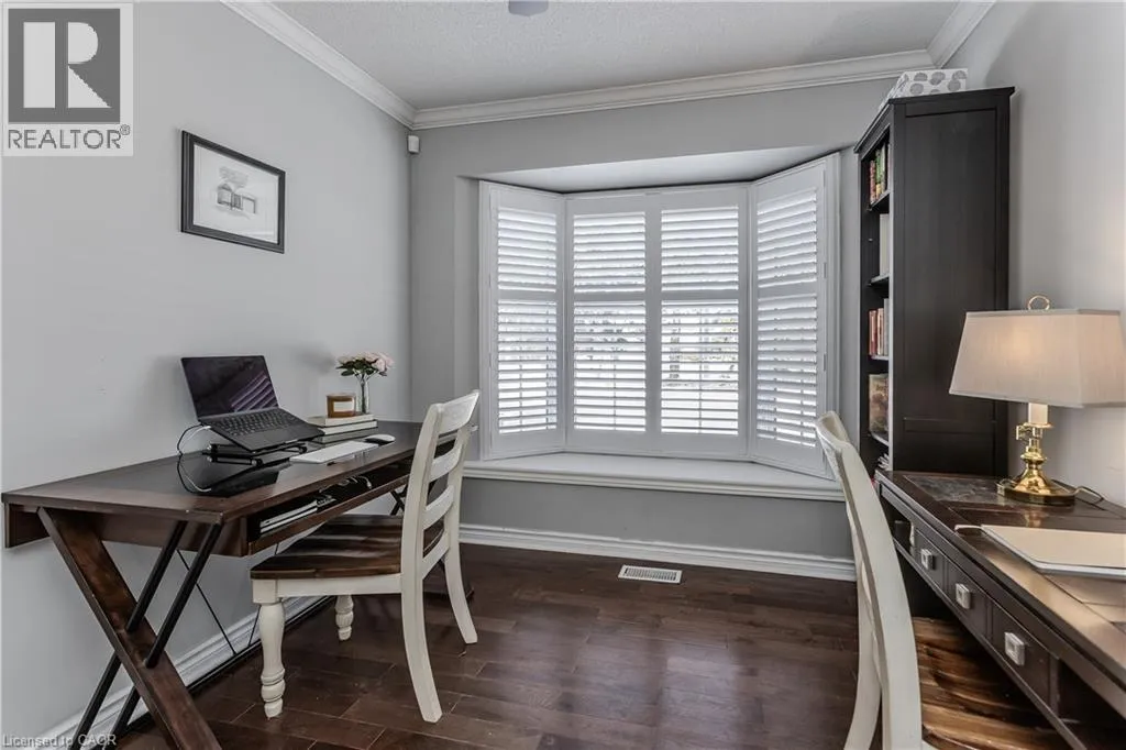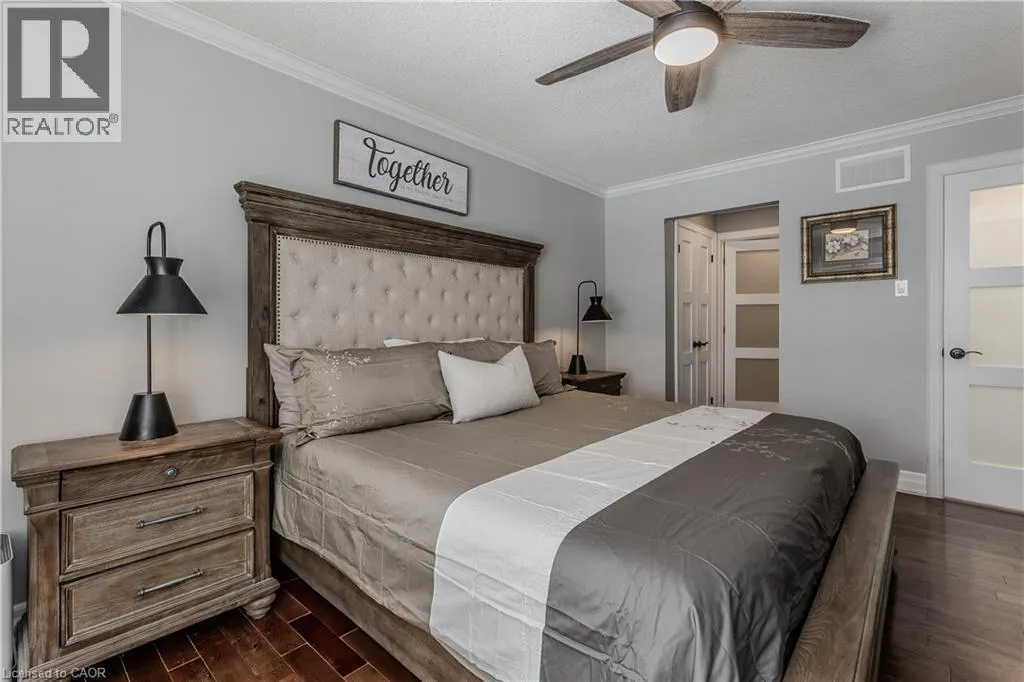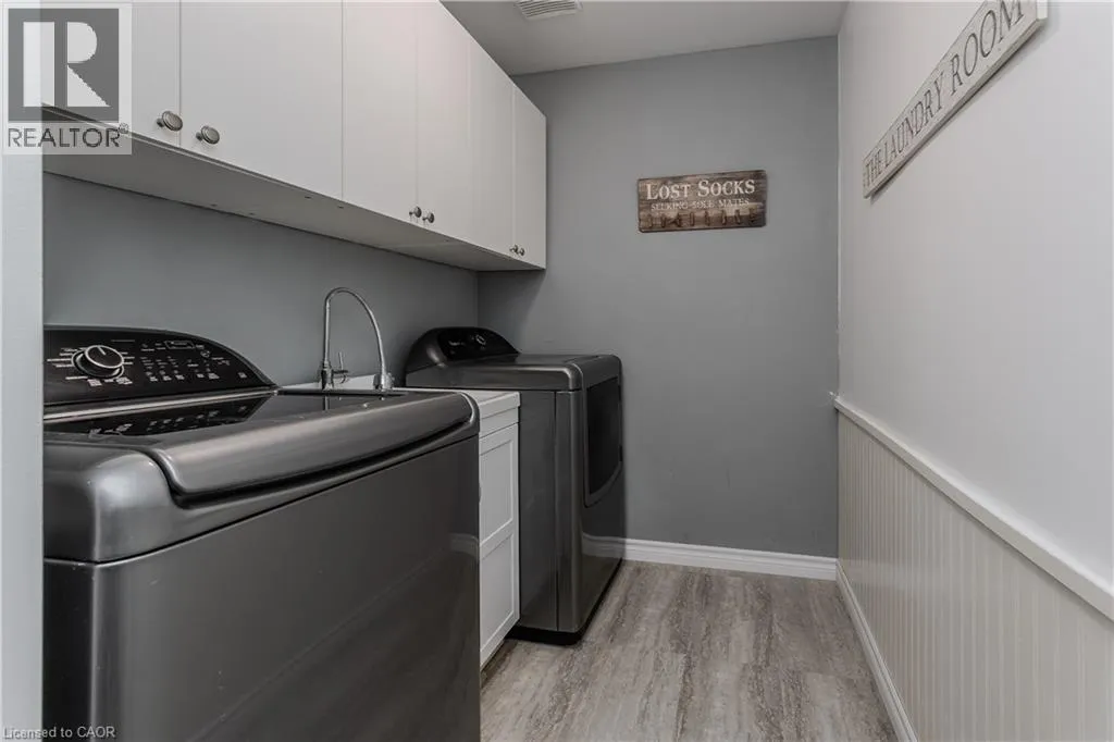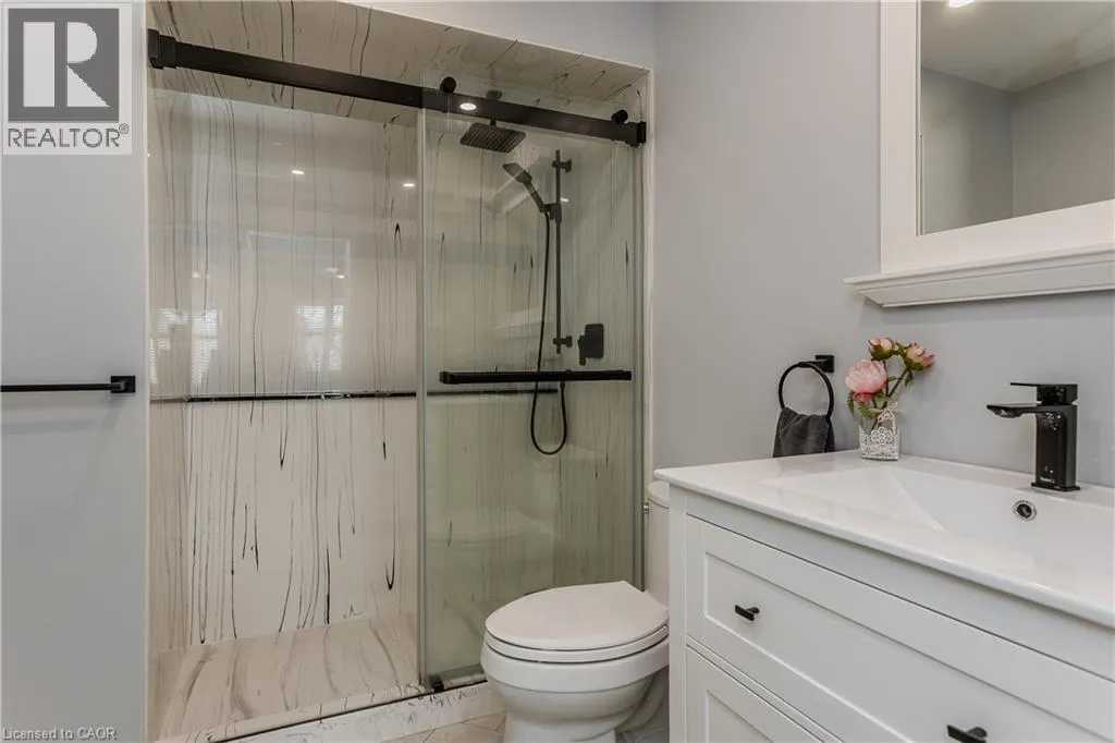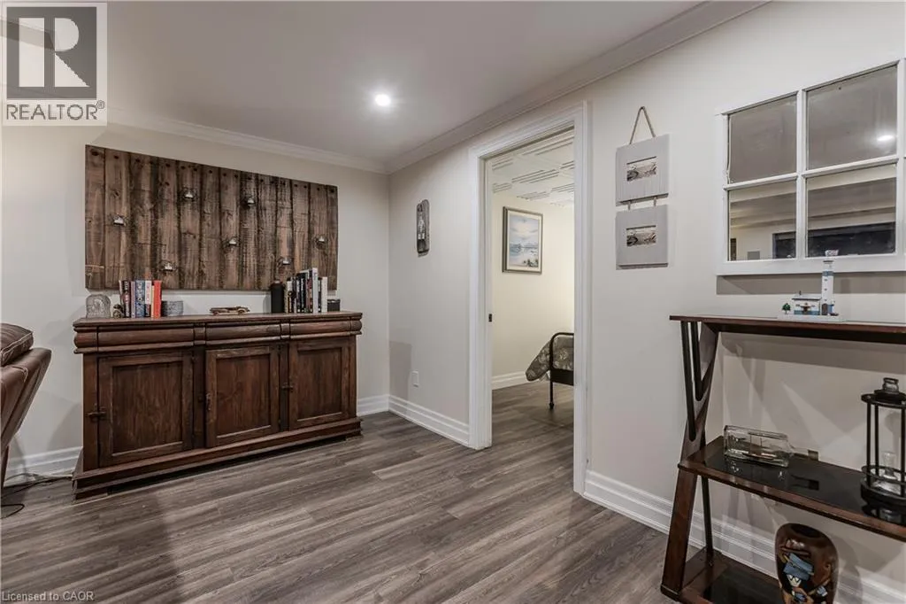 Golf Links Road to Meadowlands Blvd. Tucked into a quiet, family-friendly Ancaster community known for its nature trails, this beautiful bungalow townhome offers the perfect blend of comfort, convenience, and low-maintenance living â with over 2000sf of living space for your family to grow. Steps from Meadowlands power centre for all your shopping and dining needs, including movie theatre. Mins to historic old town Ancaster, the Old Mill Restaurant, parks, all amenities, plus easy highway access, this location truly checks every box. From the moment you arrive, the inviting curb appeal and lovely gardens set the tone. Inside, hardwood flooring and an open-concept layout create a welcoming atmosphere ideal for everyday living. The kitchen is thoughtfully designed with granite countertops, tile backsplash, SS appliances, peninsula w/ breakfast bar, and a skylight that fills the space with natural light. The adjoining dining area flows seamlessly into the spacious living room, complete with a electric fireplace, additional skylight, and walkout to the rear deck â perfect for hosting family gatherings. The main level features a spacious primary retreat with dual closets and a contemporary 3-piece ensuite showcasing a glass walk-in shower. A second bedroom â currently used as a home office â offers additional flexibility for families, along with a 3-piece main bathroom for added convenience. The fully finished lower level expands your living space even further, with laminate flooring throughout, a large rec room featuring an electric fireplace and built-in media wall, 2 additional bedrooms, workshop/storage, and a dedicated home office. Whether you need space for teens, guests, hobbies, or multigenerational living, this level adapts to your lifestyle. Step outside to the fully fenced wooden deck (2023), ideal setting for summer BBQs, morning coffee, or relaxing evenings under the stars. A move-in ready opportunity in one of Ancasterâs most desirable neighbourhoods â this is easy family living at its best. (id:27476)