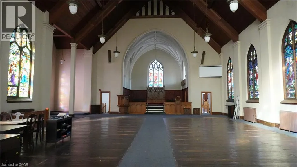 An extraordinary piece of Hamiltonâs architectural heritage is now available in the heart of the city. This church is ready to be reimagined into an amazing primary residence, or could be divided into multiple apartments. It could make for an amazing events venue, community hub, creative space, or be restored to a place of worship. There are so many possibilities! From soaring stained-glass windows that bathe the interior in multi-coloured light to dramatic exposed wood beams, the sense of scale, character, and craftsmanship is unmistakable. Positioned prominently on a tri-corner lot directly on the King St arterial road, the property commands attention and street presence. This is your rare chance to acquire a landmark building with history, visibility, and upside. (id:27476)