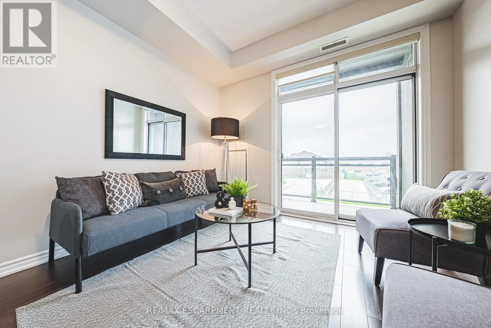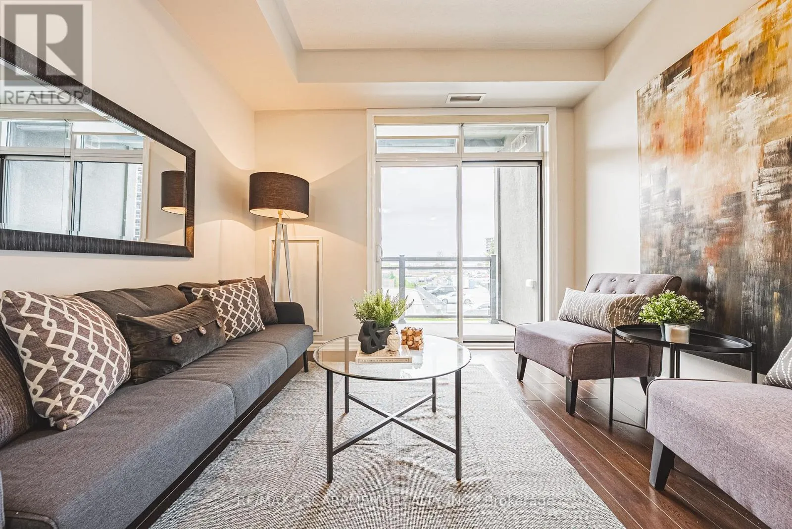 Cross Streets: Green & Francis. ** Directions: Frances to Green. Beautiful 1 Bedroom + Large Den in Waterfront Trails!? Welcome to lakeside living in this Boutique building, well-designed condo located steps from Lake Ontario. This spacious 1 bedroom plus full-size den offers impressive flexibility - perfect for a guest room, office, or fitness space. Located in one of Stoney Creek's most scenic waterfront communities, you'll enjoy walking trails, park space, and a small beach just outside your door. Take in gorgeous sunset views and the peaceful lakefront atmosphere year-round. Waterfront Trails is known for its exceptional upkeep and efficiency. Residents enjoy a spectacular rooftop terrace with panoramic views of the lake and escarpment, a well-equipped fitness centre, and an inviting party room. The building is pet-friendly and offers secure underground parking and an unobstructed view of the Escarpment. This unit includes 1 underground parking space and a locker. Additional parking may be available for a reasonable monthly fee. Conveniently located close to the QEW, and shopping, this condo is an excellent choice for first-time buyers, downsizers, or anyone seeking a calm, low-maintenance lifestyle by the water. (id:27476)