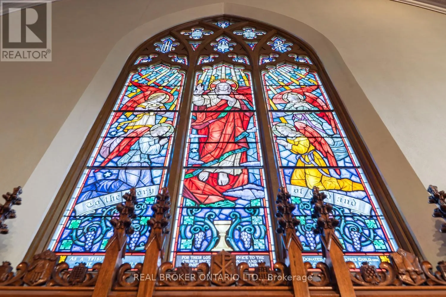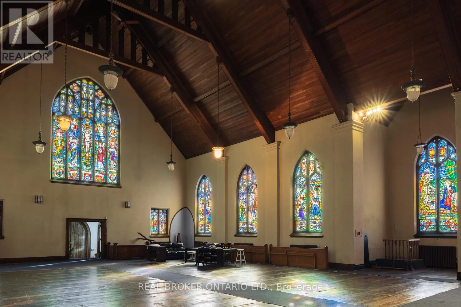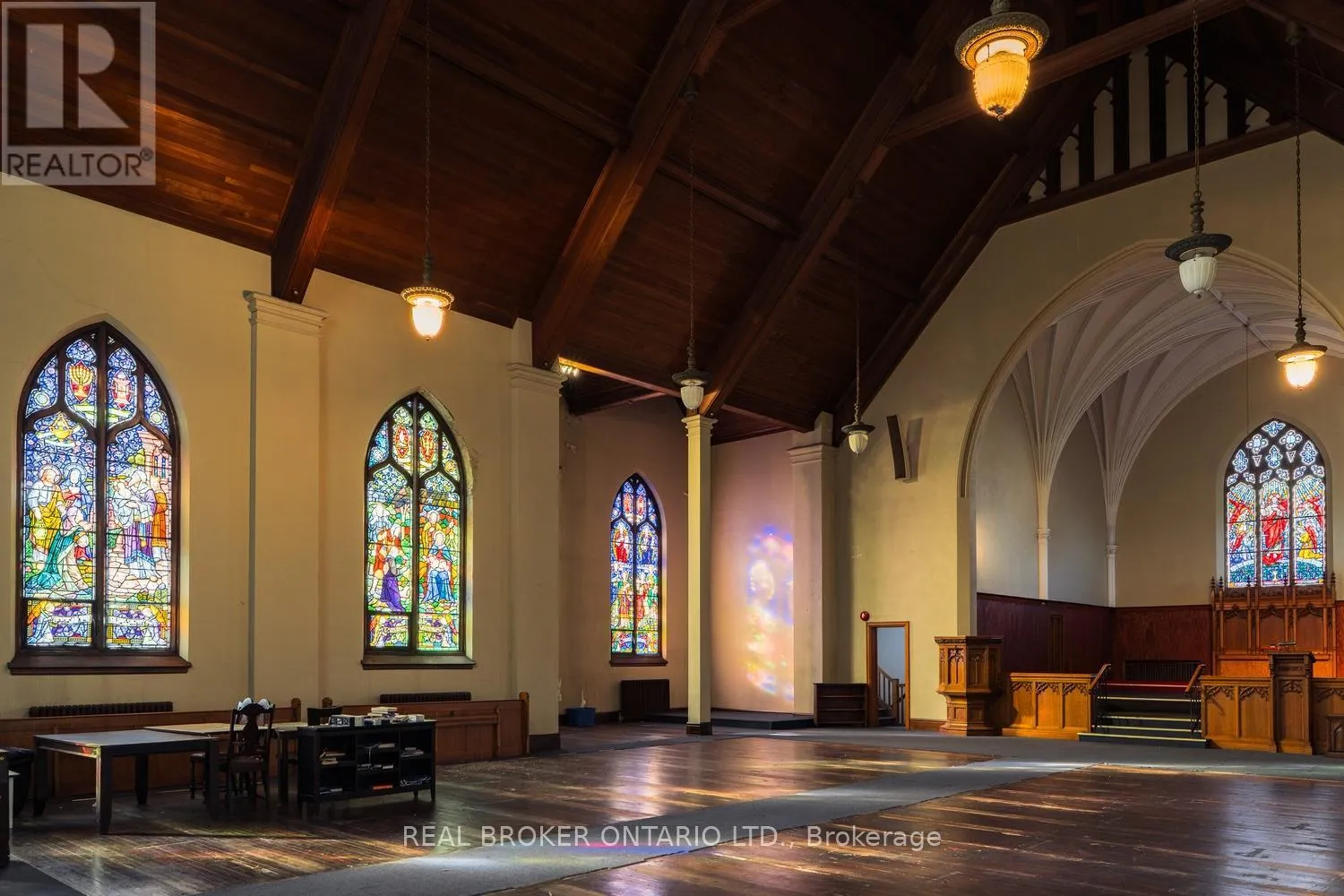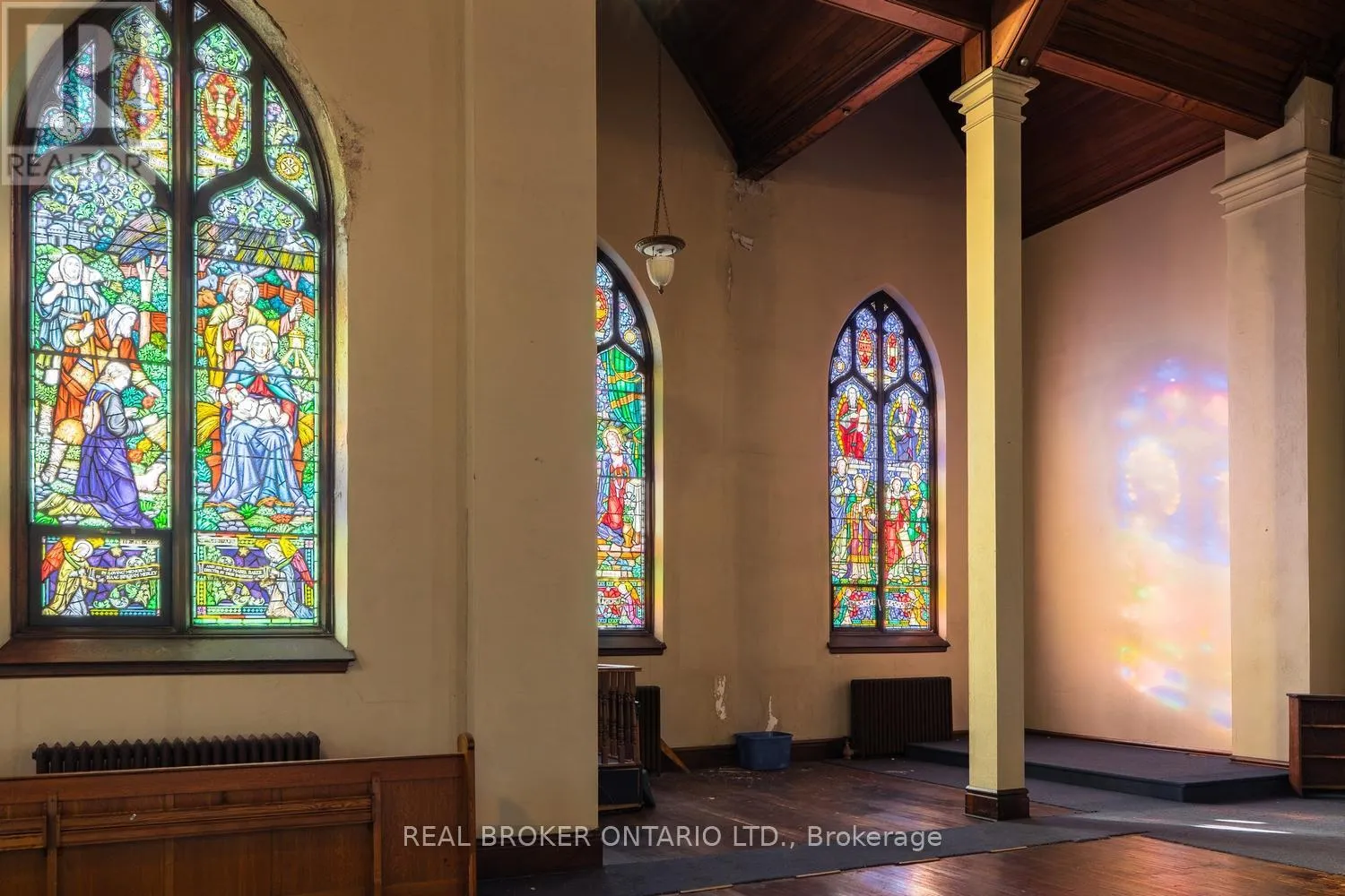 Cross Streets: Grosvenor Ave S. ** Directions: Corner of King St E & Grosvenor Ave S. An extraordinary piece of Hamilton's architectural heritage is now available in the heart of the city. This church is ready to be reimagined into an amazing primary residence, or could be divided into multiple apartments. It could make for an amazing events venue, community hub, creative space, or be restored to a place of worship. There are so many possibilities! From soaring stained-glass windows that bathe the interior in multi-coloured light to dramatic exposed wood beams, the sense of scale, character, and craftsmanship is unmistakable. Positioned prominently on a tri-corner lot directly on the King St arterial road, the property commands attention and street presence. This is your rare chance to acquire a landmark building with history, visibility, and upside. (id:27476)