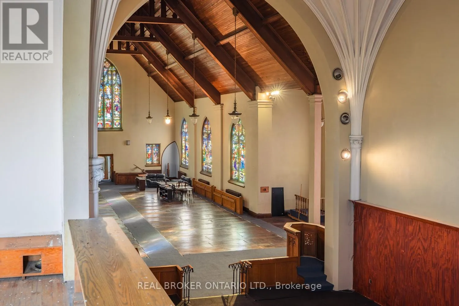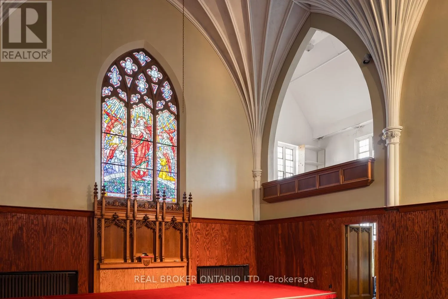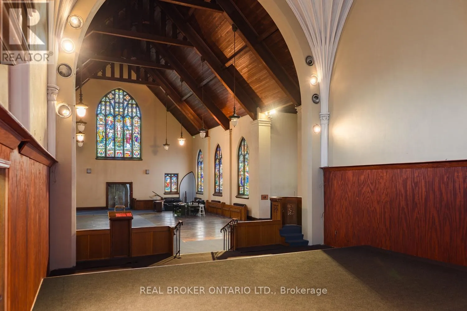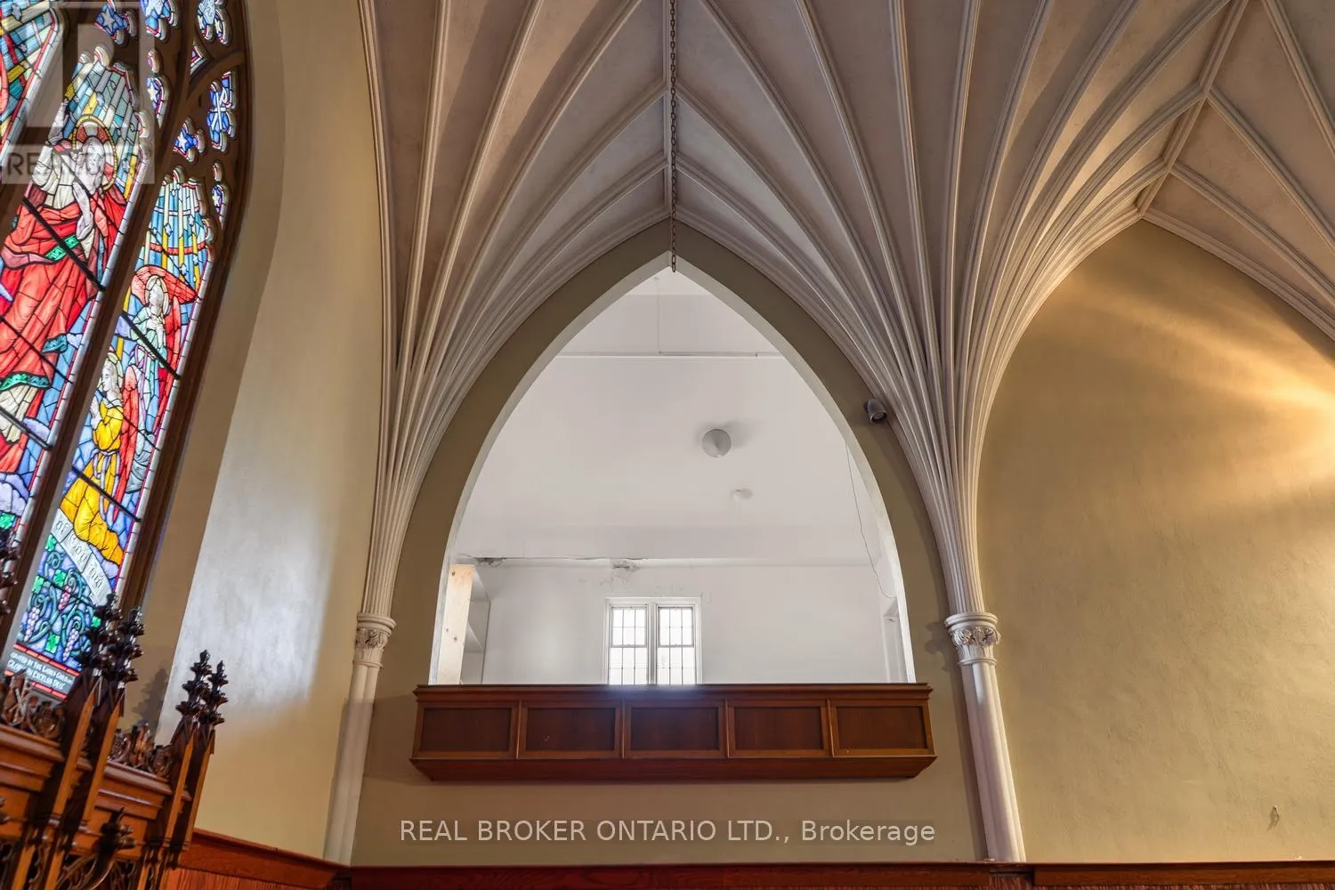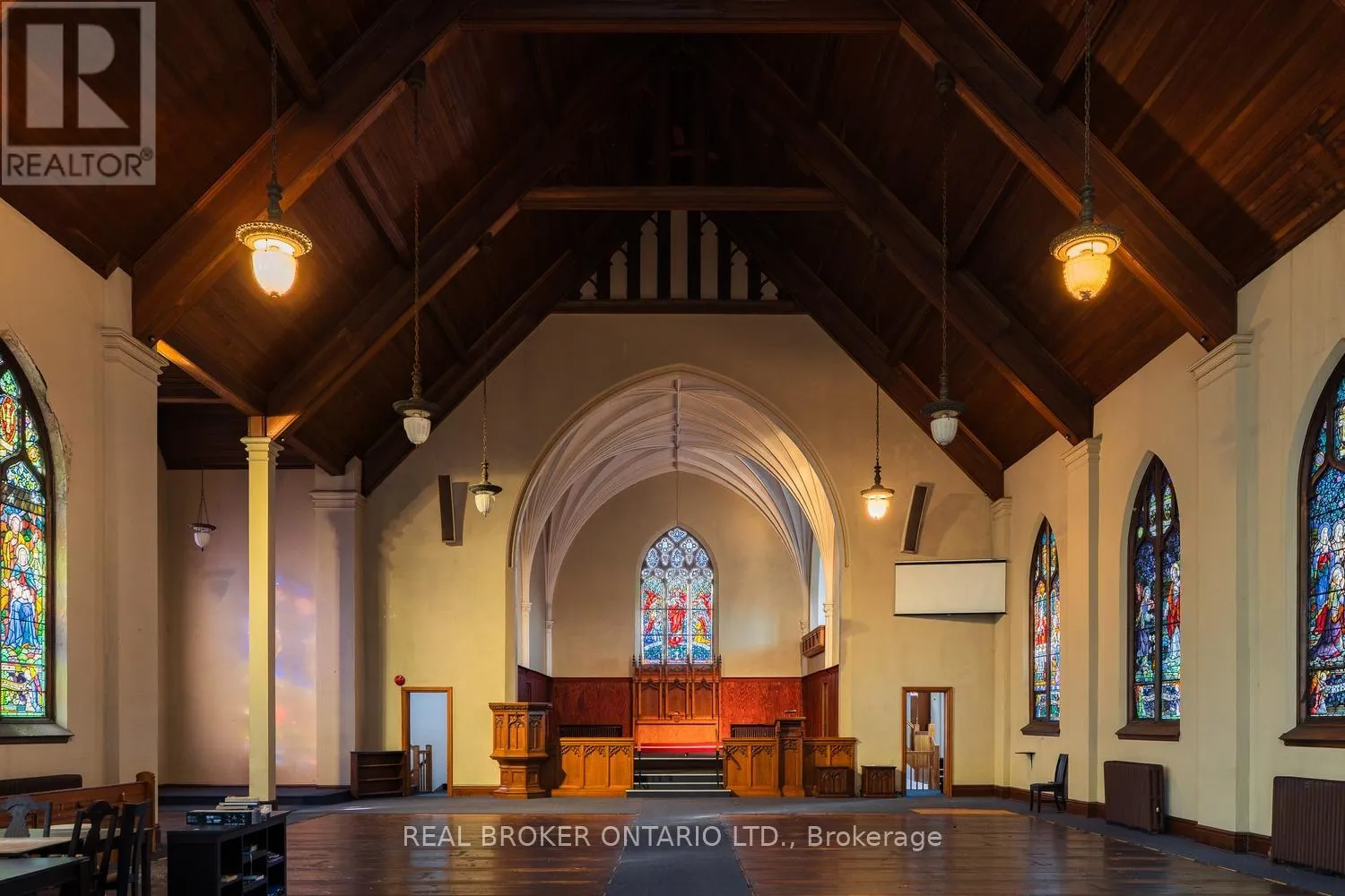 Cross Streets: Grosvenor Ave S. ** Directions: Corner of King St E & Grosvenor Ave S. An extraordinary piece of Hamilton's architectural heritage is now available in the heart of the city. This church is ready to be reimagined into an amazing primary residence, or could be divided into multiple apartments. It could make for an amazing events venue, community hub, creative space, or be restored to a place of worship. There are so many possibilities! From soaring stained-glass windows that bathe the interior in multi-coloured light to dramatic exposed wood beams, the sense of scale, character, and craftsmanship is unmistakable. Positioned prominently on a tri-corner lot directly on the King St arterial road, the property commands attention and street presence. This is your rare chance to acquire a landmark building with history, visibility, and upside. (id:27476)