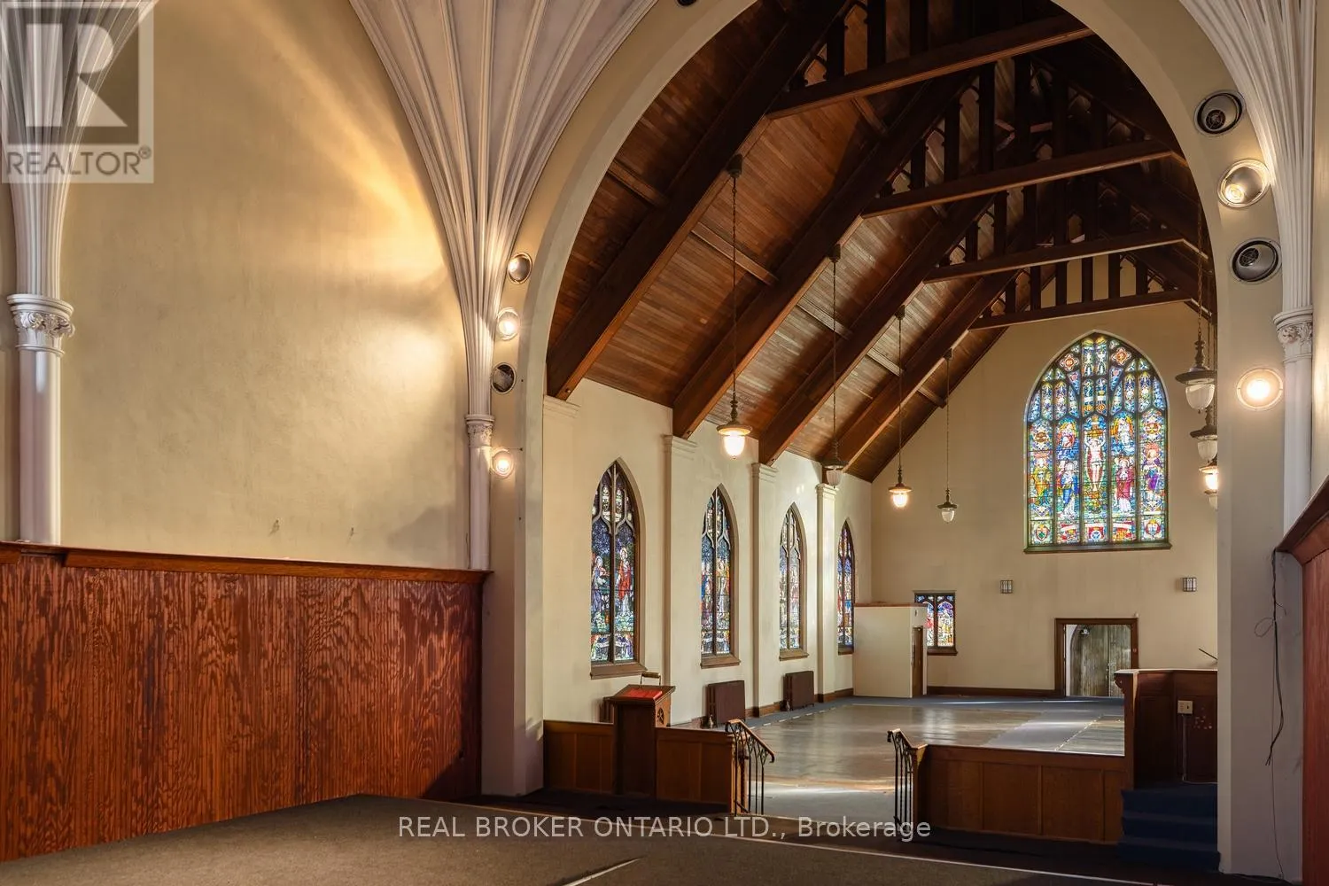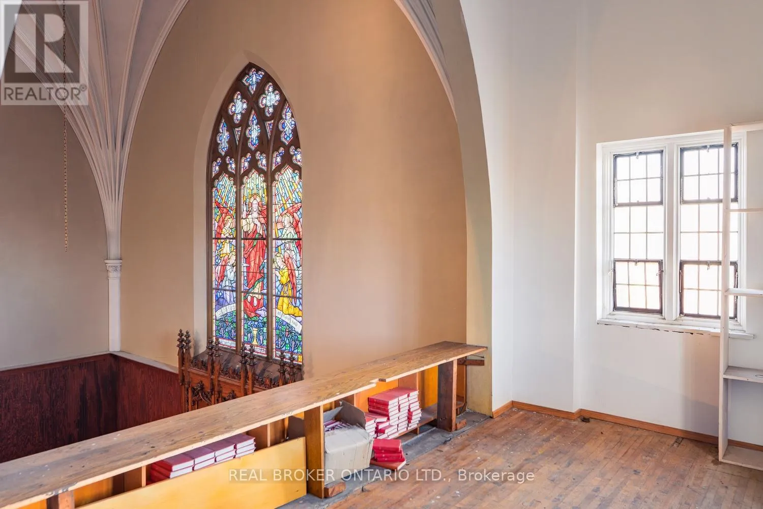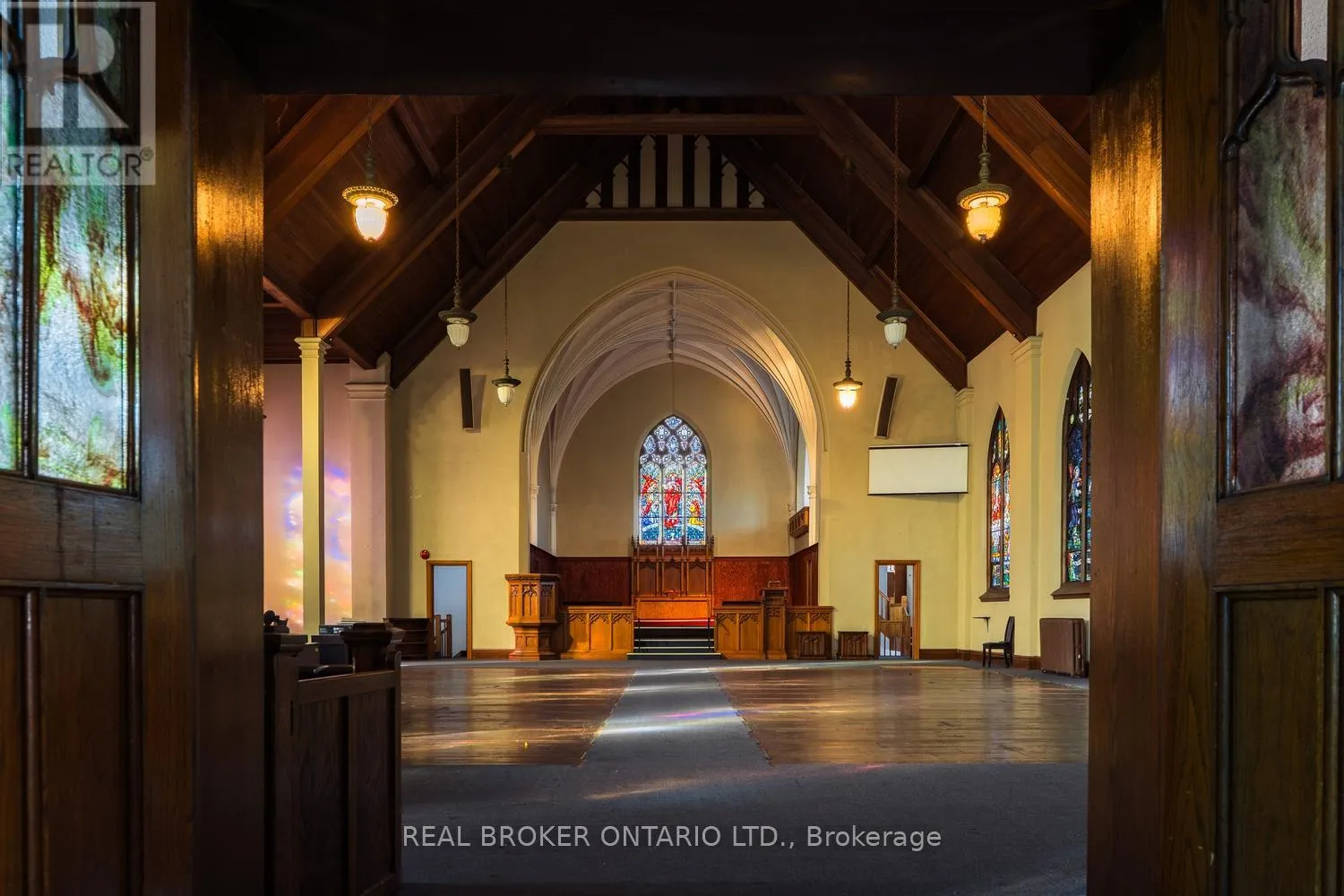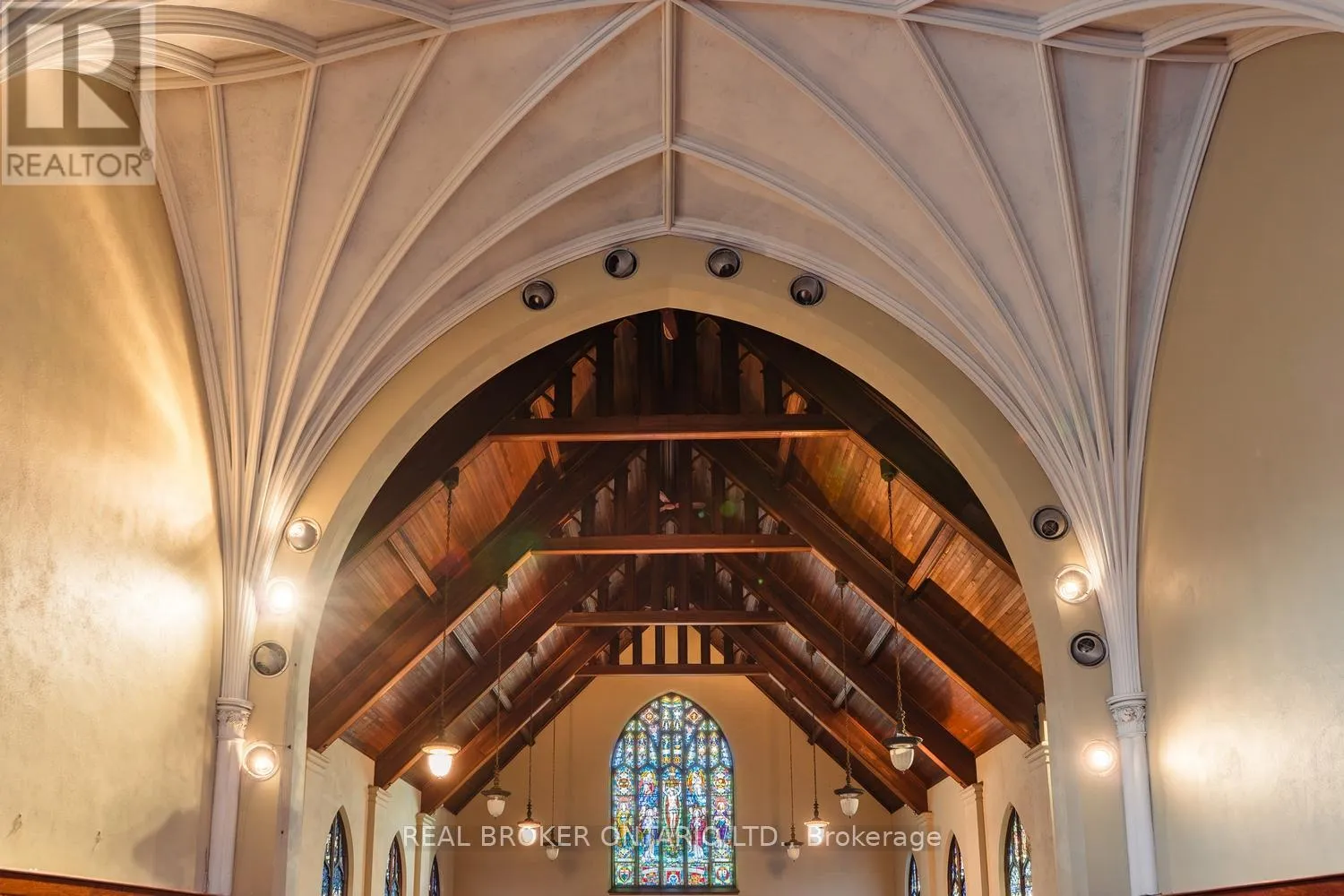 Cross Streets: Grosvenor Ave S. ** Directions: Corner of King St E & Grosvenor Ave S. An extraordinary piece of Hamilton's architectural heritage is now available in the heart of the city. This church is ready to be reimagined into an amazing primary residence, or could be divided into multiple apartments. It could make for an amazing events venue, community hub, creative space, or be restored to a place of worship. There are so many possibilities! From soaring stained-glass windows that bathe the interior in multi-coloured light to dramatic exposed wood beams, the sense of scale, character, and craftsmanship is unmistakable. Positioned prominently on a tri-corner lot directly on the King St arterial road, the property commands attention and street presence. This is your rare chance to acquire a landmark building with history, visibility, and upside. (id:27476)