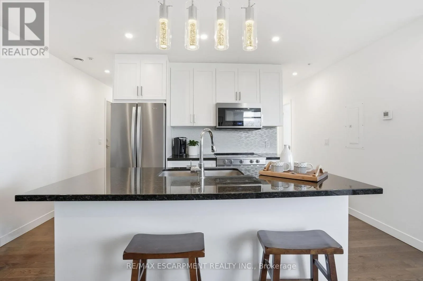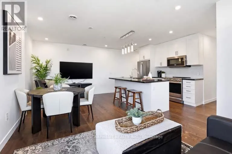 Cross Streets: WENTWORTH ST. ** Directions: HWY 8 to WENTWORTH STREET S TO CHARLTON AVE. Welcome to 937 square feet of corner-unit perfection, where south-facing panoramic views deliver both golden morning light and glowing evening skies. This 2-bedroom, 2 full bathroom residence strikes the perfect balance of sophistication and calm. It's just minutes from downtown Hamilton, yet tucked into peaceful surroundings near trails and green space. Step out onto the oversized balcony and take it all in. Inside, the open-concept layout is wrapped in oversized windows and flooded with natural light. The kitchen features sleek finishes, stainless steel appliances, an under-mount sink and a generous-sized breakfast bar. The primary suite is generous and private, complete with a walk-in closet, ensuite and enough space for a home office or reading nook. The second bedroom is a true bedroom - not a den - with a full closet and large windows showcasing those stunning south-facing views. Both full bathrooms are thoughtfully upgraded with modern vanities, full mirrors and smart storage. Extras include: in-suite laundry, a full-size locker and an underground parking space. Residents enjoy premium amenities including a fully equipped gym, party room, visitor parking and access to the impressive rooftop terrace. Location? Exceptional. Minutes to the 403, LINC, St. Joseph's Hospital, McMaster University, the GO Station, and the vibrant restaurants and cafés of James Street South. A rare opportunity to own a corner unit with views that truly never get old, at a price point that still makes sense. RSA. (id:27476)