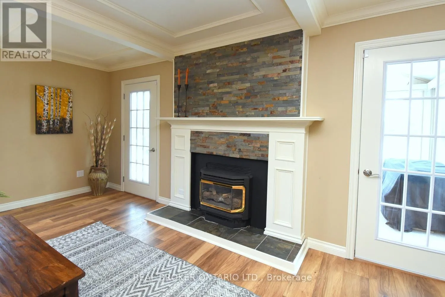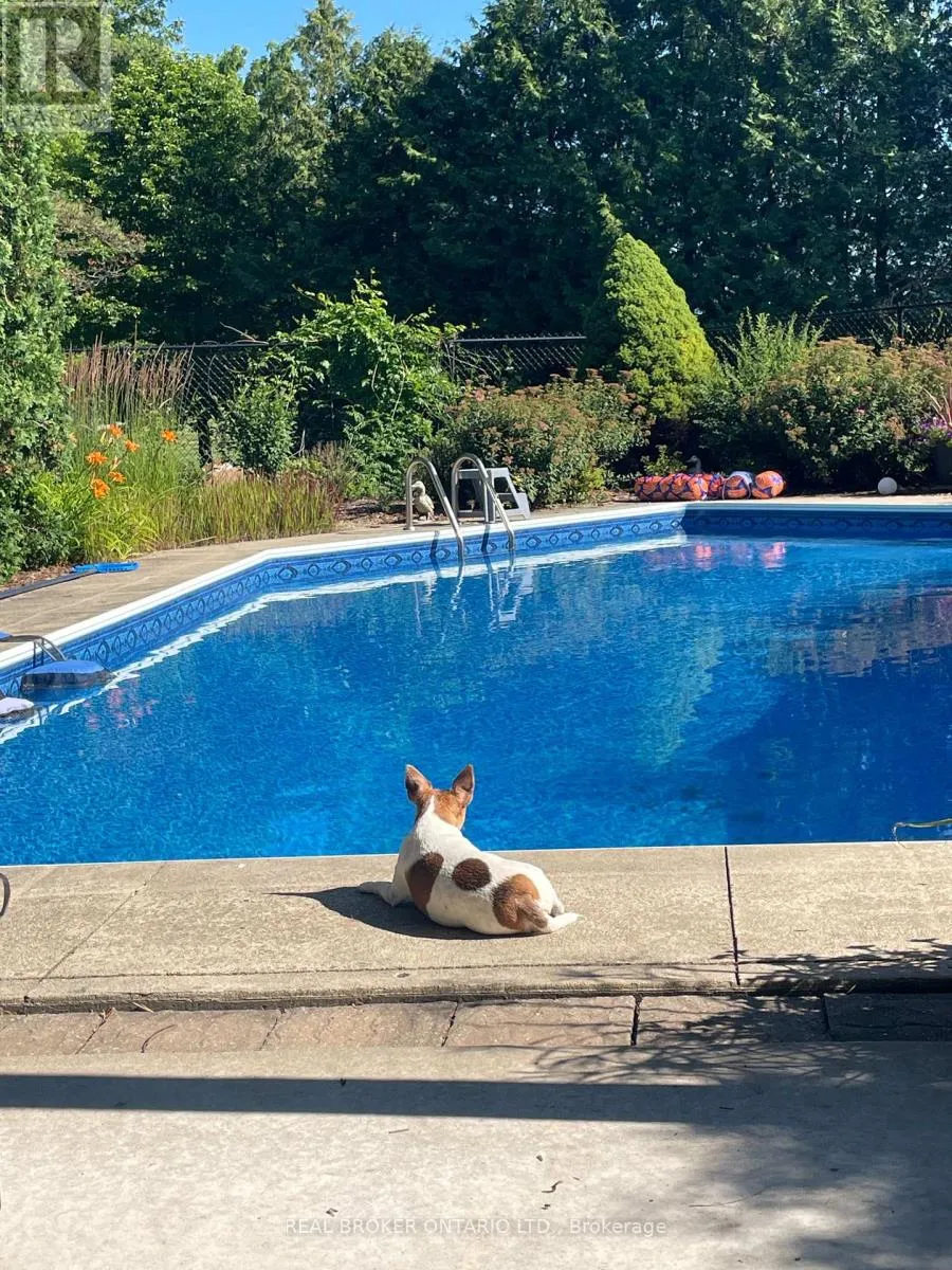 Cross Streets: between Field Rd and Lynden rd. ** Directions: 403 to Hwy 52 north , west on Powerline. Lovely 3-bedroom home with 2 full baths and 2 powder rooms set on a private, expansive 1.5-acre treed country lot, surrounded by nature at every turn. Large picture windows throughout flood the home with natural light and offer peaceful views from nearly every room. The spacious primary suite features a fireplace, 3-piece ensuite, and walk-in closet with convenient laundry. A second bedroom offers its own 3-piece ensuite and walk-in closet, while the third bedroom provides flexible space for family, guests, or home office use. The open main floor offers generous living space, including a powder room and private office. The large country kitchen features abundant cabinetry, bonus pantry /coffee service area, and dinette with French doors leading to a multi-level deck. The sunken great room with vaulted ceilings, stone feature wall, and gas fireplace creates a warm gathering space with a walkout to the private yard. A formal living room with coffered ceiling and gas fireplace and a large, three-season sunroom add additional living and entertaining options. Inside entry from the double garage adds everyday convenience. The spacious, fully finished , partial basement provides additional living space with carpeted floors, a 2-piece bath, a hobby/bedroom area and second laundry rough-in in utility room. The utility room has laundry rough in . Step outside to a private backyard oasis featuring an in-ground pool, beautifully landscaped grounds, and a solid wood gazebo with metal roof for shaded enjoyment. This home is tastefully refreshed in neutral tones and move-in ready. RSA. (id:27476)