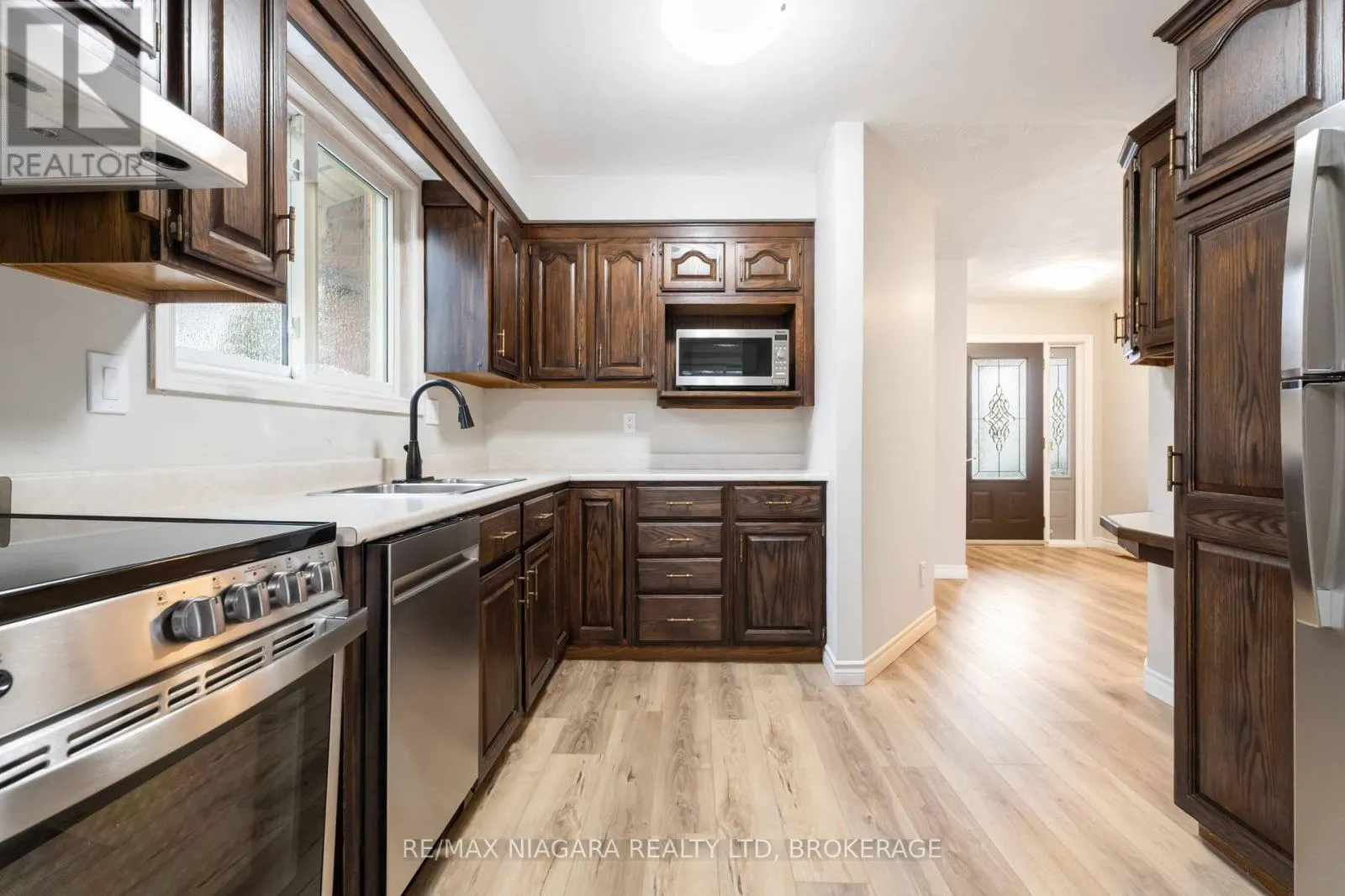 Cross Streets: UPPER WENTWORTH ST. ** Directions: UPPER WENTWORTH ST - LIMERIDGE RD E - DONEGEL PLACE. Welcome Home! This beautifully updated brick home offers timeless curb appeal and a warm, inviting interior, perfectly suited for modern living. From the moment you arrive, you'll appreciate the classic exterior, attached garage, and welcoming covered entry. Inside, the main level features a bright and spacious with fresh neutral paint, stylish flooring, and abundant natural light. The living and dining areas flow seamlessly, creating an ideal space for entertaining or everyday comfort. Large windows and a sliding patio door connect the living space to the backyard, bringing the outdoors in. The kitchen has rich wood cabinetry, ample storage, durable countertops, and all new stainless steel appliances. A functional layout makes meal prep a breeze while maintaining a warm, traditional feel. Upstairs, you'll find comfortable bedrooms with carpeting and generous closet space. The bathroom showcases a modern vanity, sleek fixtures, and a clean, contemporary design. The finished lower level adds valuable living space-perfect for a family room, home office, gym, or media area. Additional storage and a dedicated laundry space enhance the home's practicality. Move-in ready and thoughtfully updated, this home offers space, comfort, and versatility in a classic brick package. A fantastic opportunity for buyers looking for a well-maintained home with modern updates and room to grow. (id:27476)