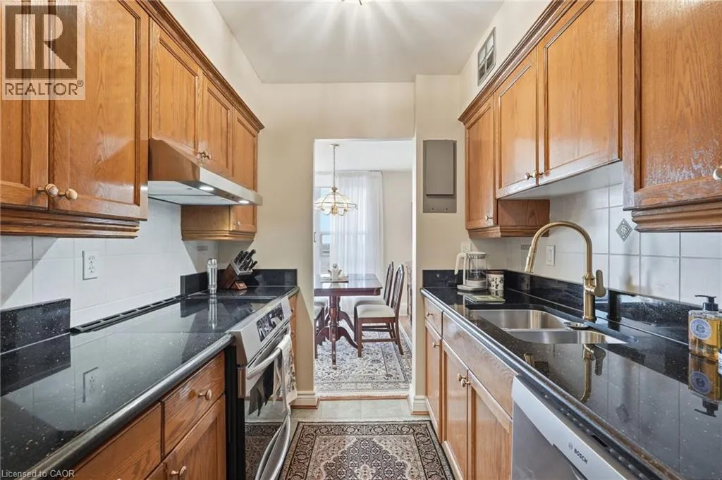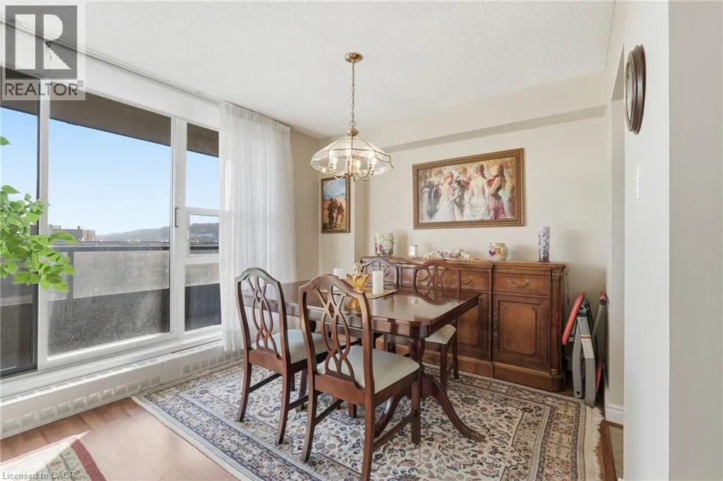 Main & Whitney Welcome to this beautifully updated 3-bedroom, 2-bathroom corner unit condo offering an exceptional blend of space, comfort, and modern upgrades in a serene, highly sought-after neighbourhood. Bathed in natural light from huge windows that wrap around the unit, this home showcases peaceful views of surrounding greenery while creating a bright and airy atmosphere throughout. The spacious layout flows effortlessly, leading to a big open balcony thatâs perfect for enjoying your morning coffee, entertaining guests, or simply relaxing outdoors. The kitchen is equipped with newer appliances and opens seamlessly into the living and dining areas, making it ideal for both everyday living and hosting. Both bathrooms have been tastefully renovated with contemporary finishes, while extensive upgrades provide added peace of mind, including new plumbing throughout, new hallway doors and modern handles, upgraded lighting fixtures, and all electrical baseboard heaters professionally sandblasted, baked, and refinished. The window framing has also been redone, adding a crisp, polished touch to the interior. This corner unit includes one underground parking space for year-round convenience. Perfectly located just steps from McMaster University and close to Dundas, vibrant restaurants, charming shops, public transit, and scenic trails, this move-in-ready condo offers the ideal balance of urban accessibility and tranquil living. (id:27476)