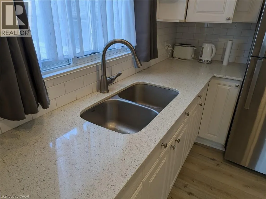West on Limeridge Rd E from Upper Wellington A lovely updated bungalow in the family-friendly Greeningdon neighbourhood on central Hamilton Mountain, close to schools, recreation, shopping and Linc access. Move-in ready and perfect for first-time buyers or downsizers, the home features an eat-In kitchen with quartz counters and classic white subway tile backsplash, new vinyl flooring, and an updated modern four-piece bath. Enjoy the large private deck right off the back door, perfect for barbecue and outdoor entertaining! The unfinished basement provides an additional 600 sq ft of storage or utility space, and the detached garage offers sheltered parking or potential for a workshop with two driveway spots as well. The large corner lot may allow some opportunity for redevelopment with a larger single-family home, Additional Dwelling Unit (ADU), or severance - buyers to do own due diligence with respect to any future development plans. Come and see this great opportunity today! (id:27476)