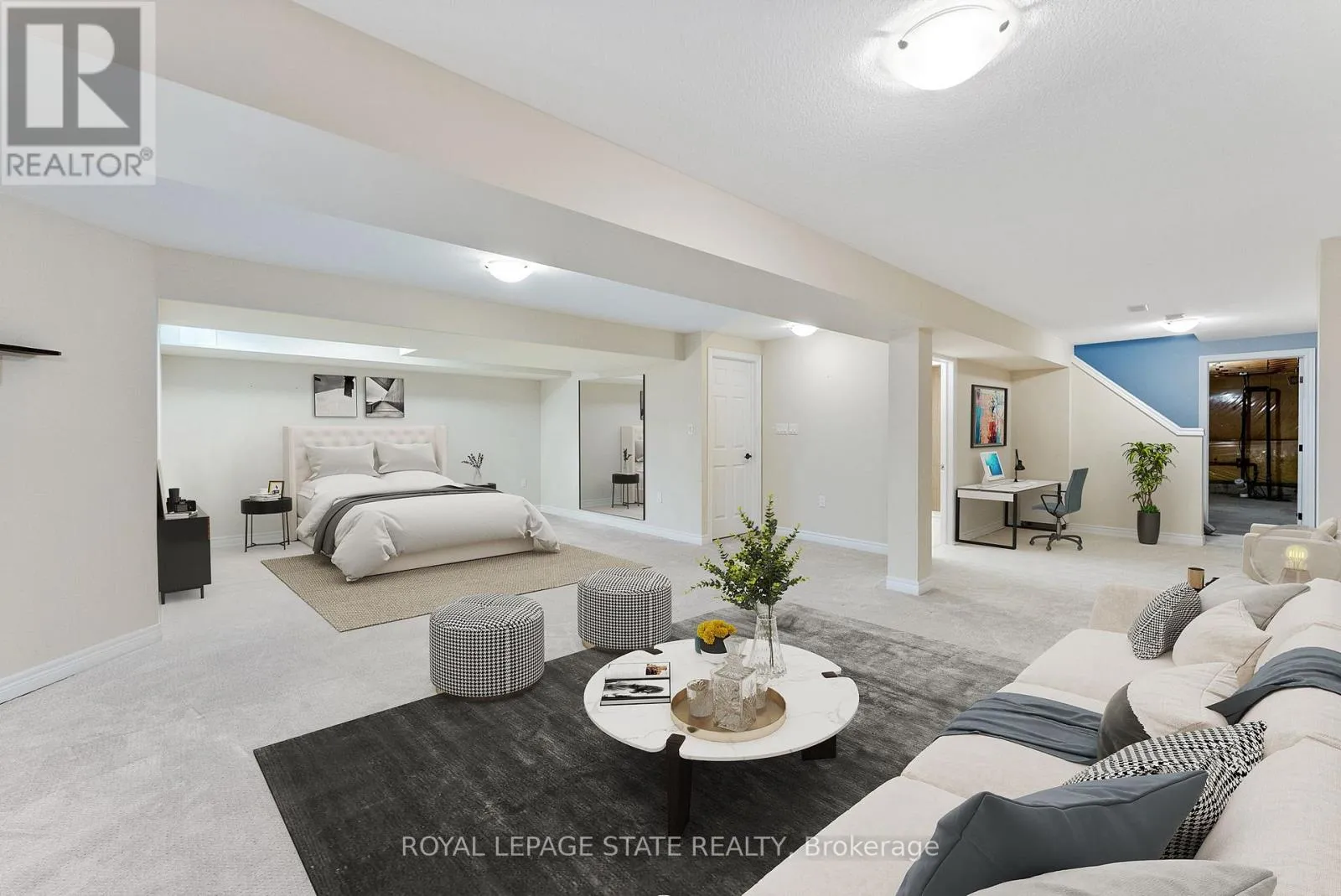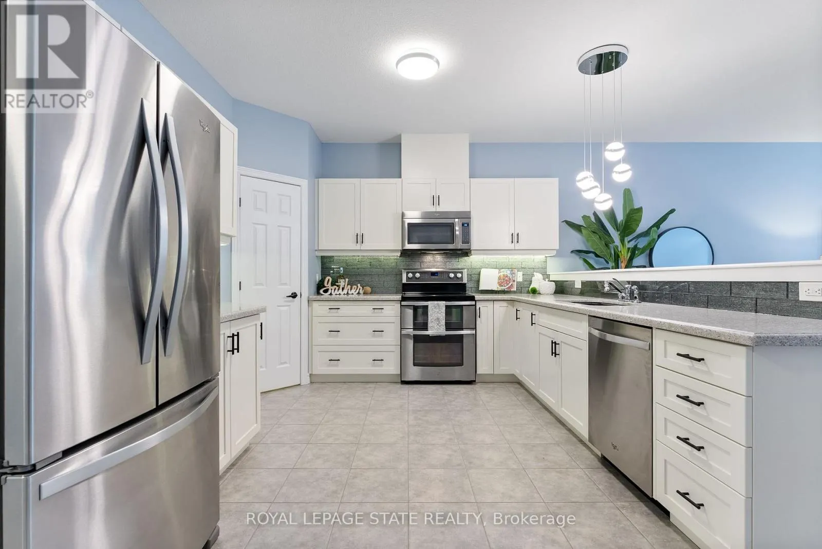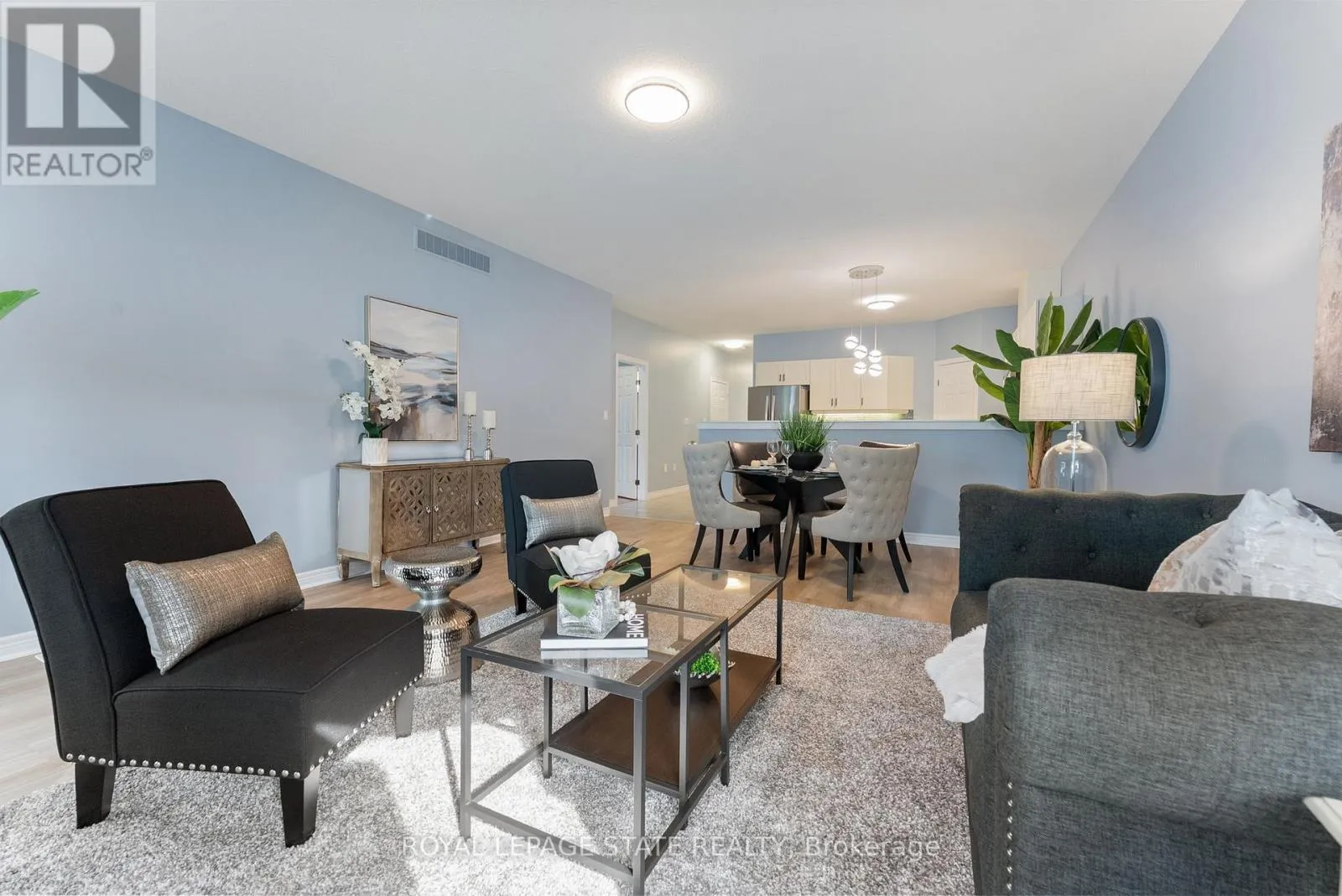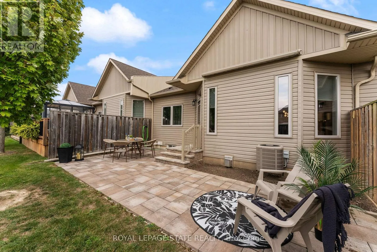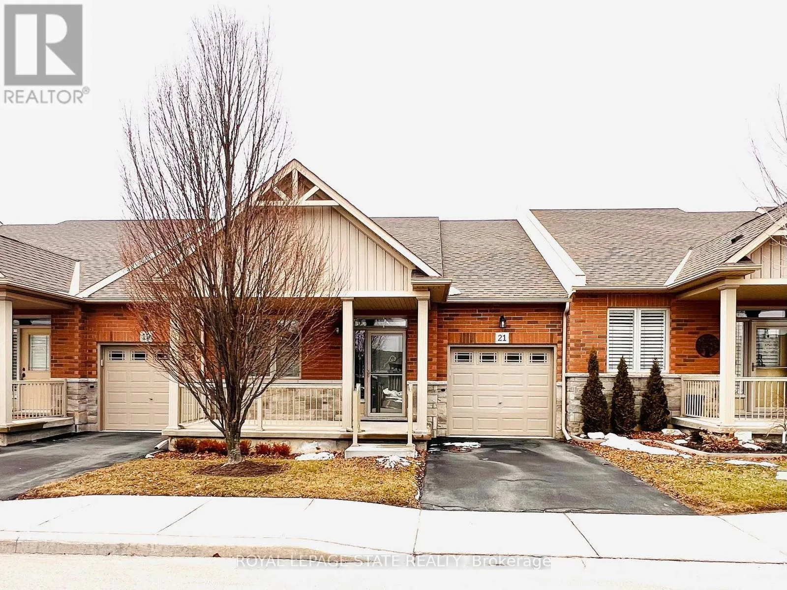 Cross Streets: Fall Fair Way and Hwy 56. ** Directions: Fall Fair Way to Finton. Welcome to 21 Finton Lane in the desirable "Binbrook Heights" community, an adult-lifestyle bungalow townhome offering comfort, convenience, and low-maintenance living. This rare layout features 2 bedrooms on the main floor with the option of a third in the finished lower level, along with 3 full bathrooms. The main level boasts a bright, open-concept design with a gourmet kitchen complete with granite countertops, stylish backsplash, corner pantry, and ample cabinetry for storage. The spacious family and dining room feature laminate flooring and direct access to your private backyard retreat. The spacious primary bedroom includes laminate flooring, a large walk-in closet, and a private 3-piece ensuite. A second bedroom and additional 3-piece bath complete this level, making one-floor living effortless. A newly installed chairlift provides easy access to the lower level, where you'll find a cozy gas fireplace, den/flex space that could serve as a third bedroom, another 3-piece bathroom, and plenty of storage. Step outside to your private, low-maintenance backyard oasis, featuring stone pavers and an awning-perfect for entertaining or simply relaxing. An attached single-car garage and private driveway add everyday convenience. Ideally located close to shopping, dining, and amenities, this home offers a perfect blend of lifestyle and practicality. (id:27476)