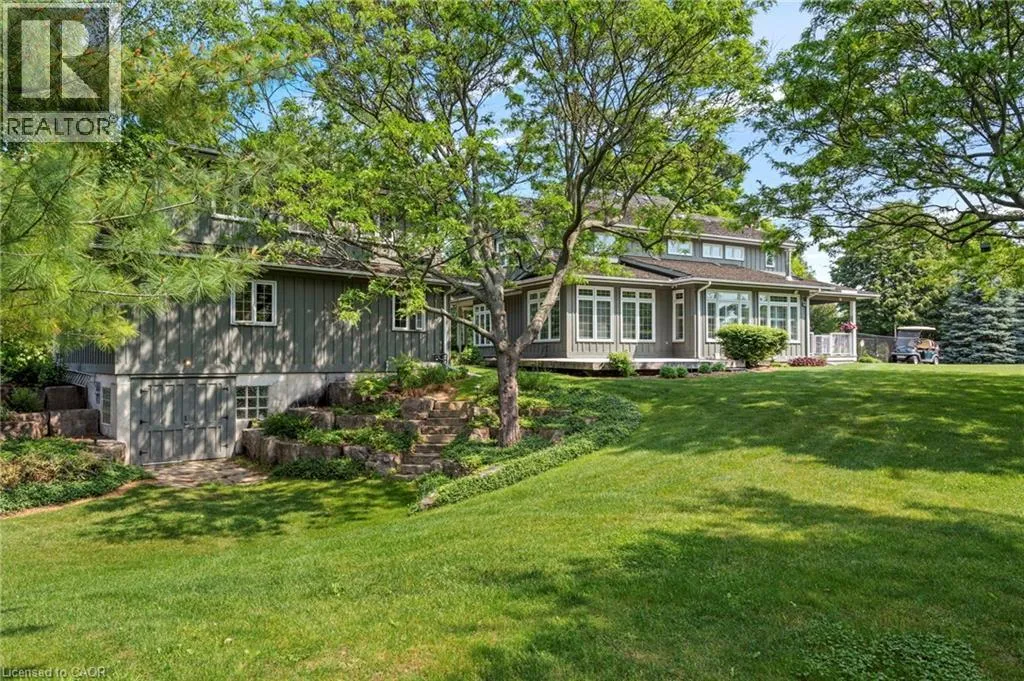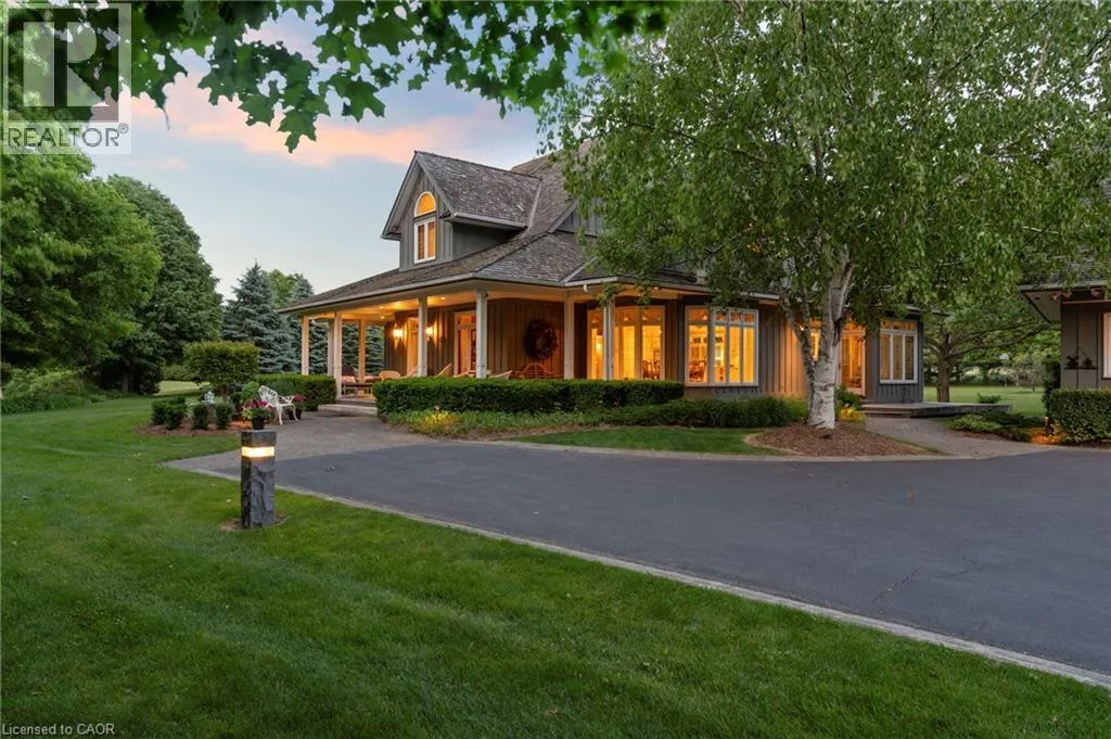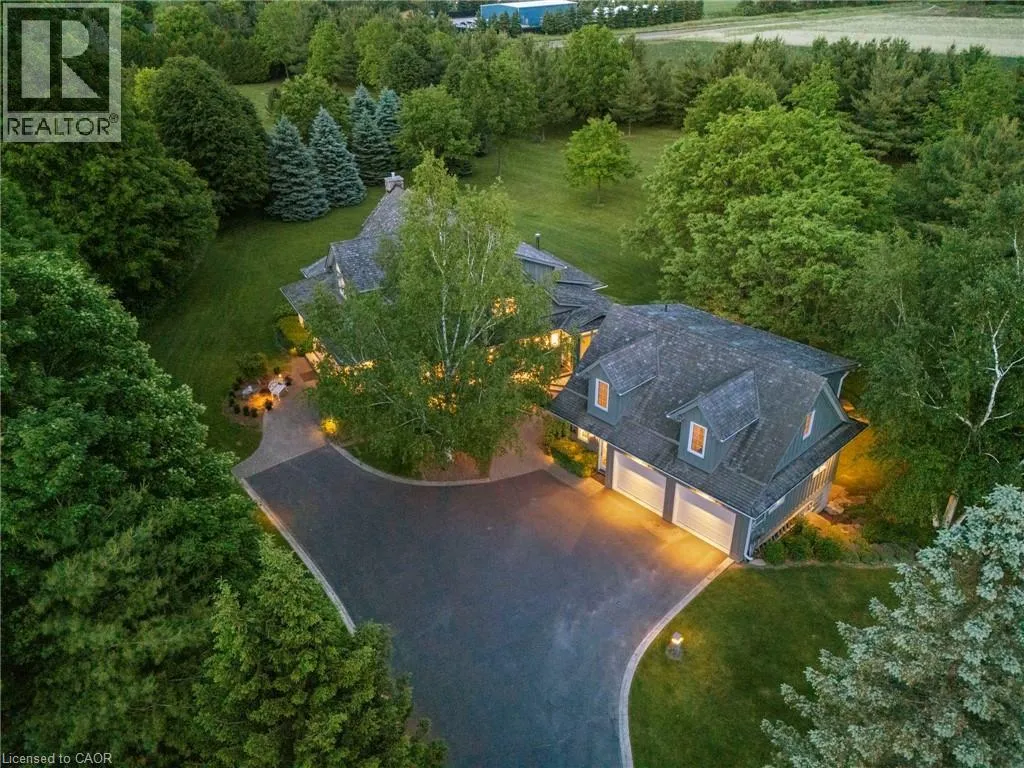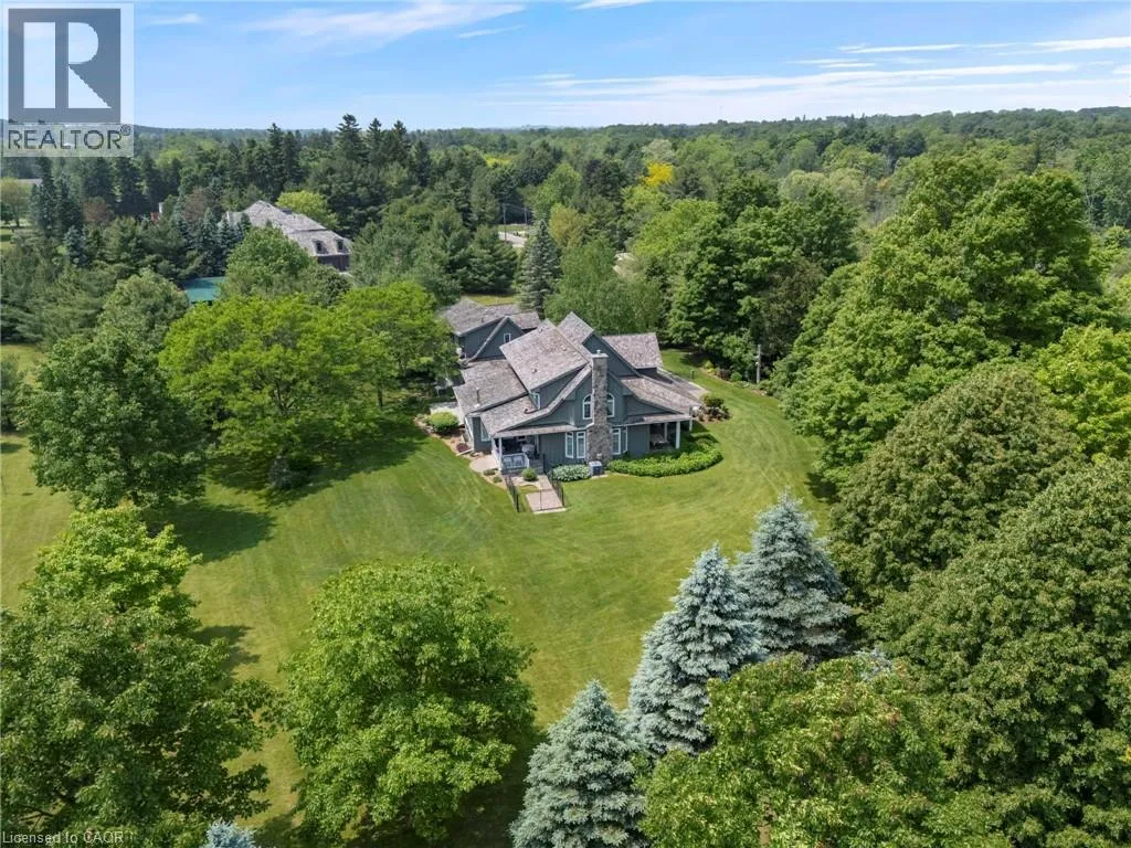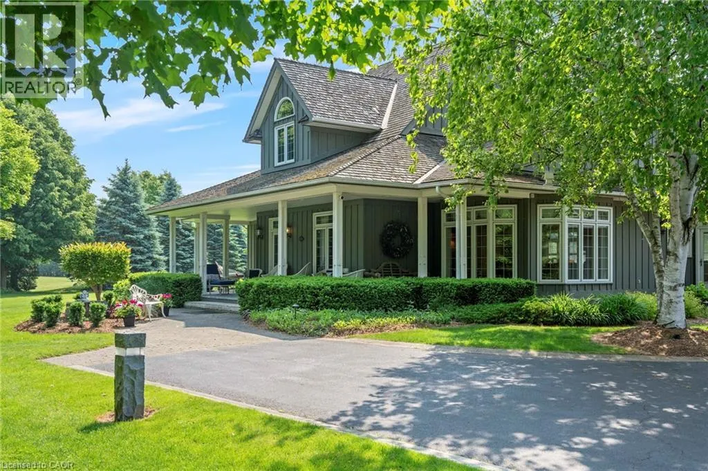 Carlisle Rd to Progreston Welcome to your private country retreat on nearly 4 acres in the heart of Carlisle. From the moment you arrive, this property leaves a lasting impression with its winding driveway, lush natural surroundings, and timeless centre-hall design. Nestled on a quiet hill and surrounded by mature trees, this custom-built home offers an exceptional blend of craftsmanship, quality, and classic charm. The inviting front and covered side porches provide peaceful spaces to relax and take in the views. Inside, the home showcases maple hardwood flooring and a bright, open-concept layout designed for modern living. The kitchen is equipped with high-end stainless steel appliances, quartz countertops, and a large central island that flows seamlessly into the dining and living areas, perfect for both entertaining and everyday comfort. Just off the kitchen, a sunroom offers a serene spot to enjoy morning coffee while overlooking the greenery. The family room exudes warmth with its inviting fireplace and direct walkout to the backyard. Upstairs, the primary suite is a true retreat. Designed with spa-like comfort in mind, this space features a spacious layout, walk-in closets, and a luxurious en-suite bathroom complete with a glass shower, soaker tub, double vanity, and heated floors. The fully finished basement offers generous additional living space and ample storage, making it perfectly suited for a variety of needs. A standout feature of this property is the workshop, ideal for storage, projects, or equipment. Another highlight is the spacious, fully finished apartment above the double garage with a separate entrance, offering incredible potential for guests, in-laws, or rental income. This is a rare opportunity to own a truly versatile property in one of Carlisleâs most picturesque locations. With premium finishes, thoughtful design, and expansive indoor and outdoor living spaces, this home delivers a lifestyle thatâs increasingly hard to come by. (id:27476)