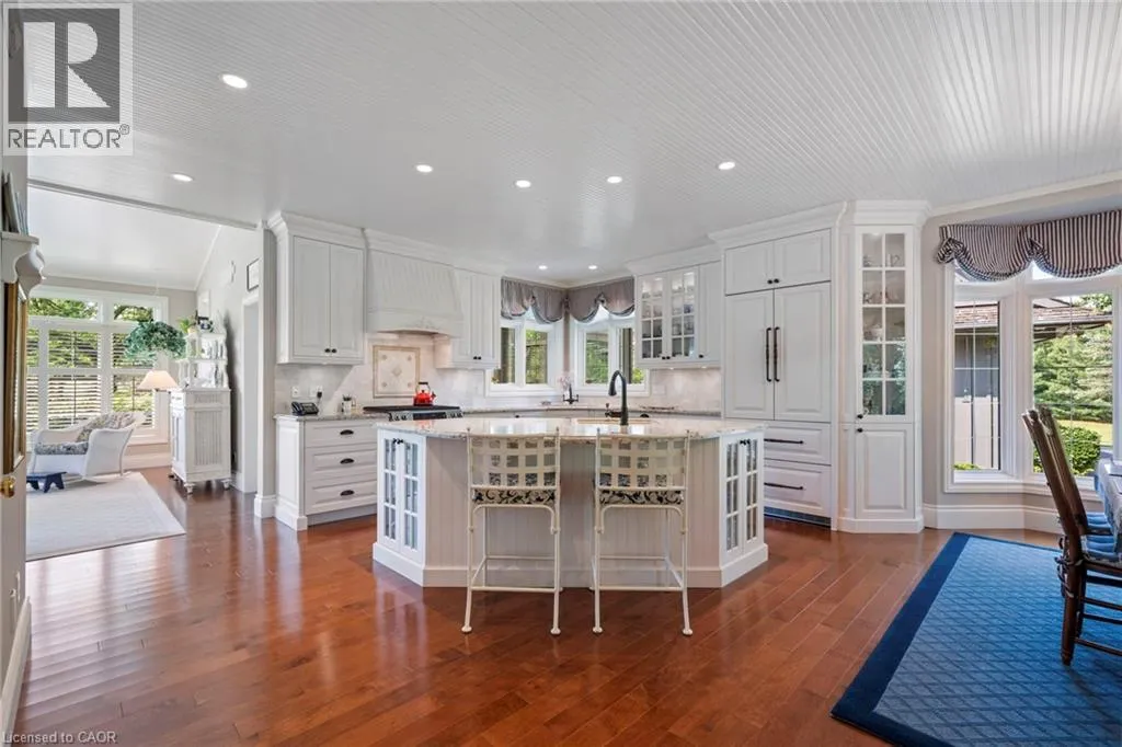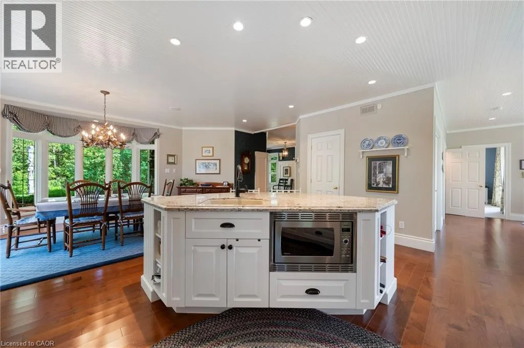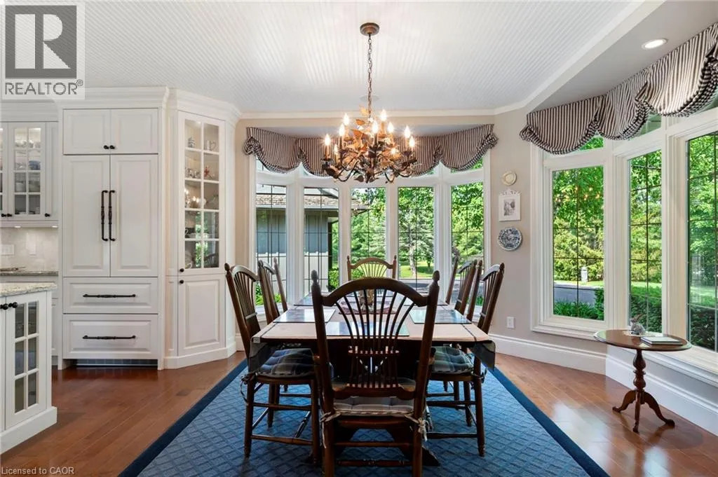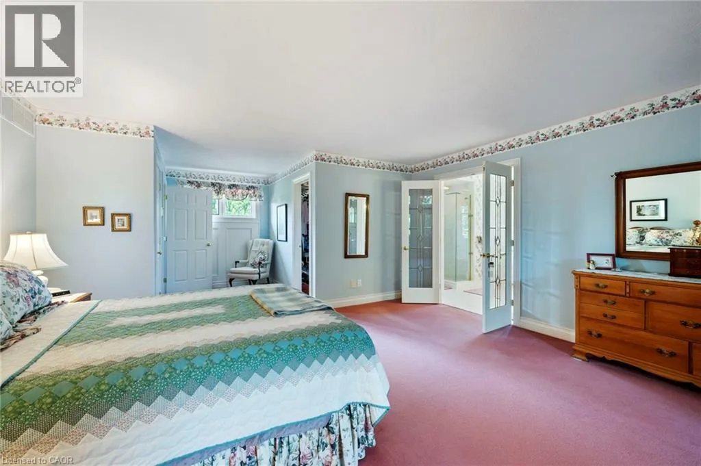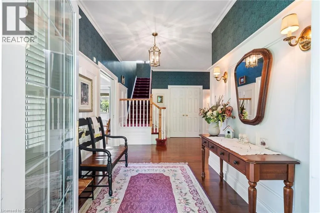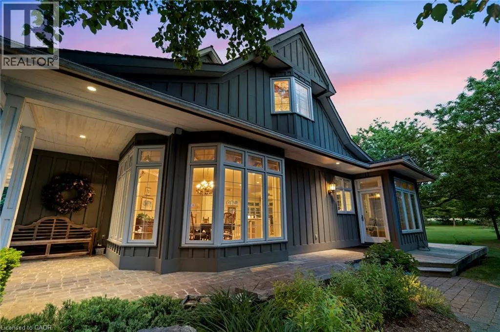 Carlisle Rd to Progreston Welcome to your private country retreat on nearly 4 acres in the heart of Carlisle. From the moment you arrive, this property leaves a lasting impression with its winding driveway, lush natural surroundings, and timeless centre-hall design. Nestled on a quiet hill and surrounded by mature trees, this custom-built home offers an exceptional blend of craftsmanship, quality, and classic charm. The inviting front and covered side porches provide peaceful spaces to relax and take in the views. Inside, the home showcases maple hardwood flooring and a bright, open-concept layout designed for modern living. The kitchen is equipped with high-end stainless steel appliances, quartz countertops, and a large central island that flows seamlessly into the dining and living areas, perfect for both entertaining and everyday comfort. Just off the kitchen, a sunroom offers a serene spot to enjoy morning coffee while overlooking the greenery. The family room exudes warmth with its inviting fireplace and direct walkout to the backyard. Upstairs, the primary suite is a true retreat. Designed with spa-like comfort in mind, this space features a spacious layout, walk-in closets, and a luxurious en-suite bathroom complete with a glass shower, soaker tub, double vanity, and heated floors. The fully finished basement offers generous additional living space and ample storage, making it perfectly suited for a variety of needs. A standout feature of this property is the workshop, ideal for storage, projects, or equipment. Another highlight is the spacious, fully finished apartment above the double garage with a separate entrance, offering incredible potential for guests, in-laws, or rental income. This is a rare opportunity to own a truly versatile property in one of Carlisleâs most picturesque locations. With premium finishes, thoughtful design, and expansive indoor and outdoor living spaces, this home delivers a lifestyle thatâs increasingly hard to come by. (id:27476)