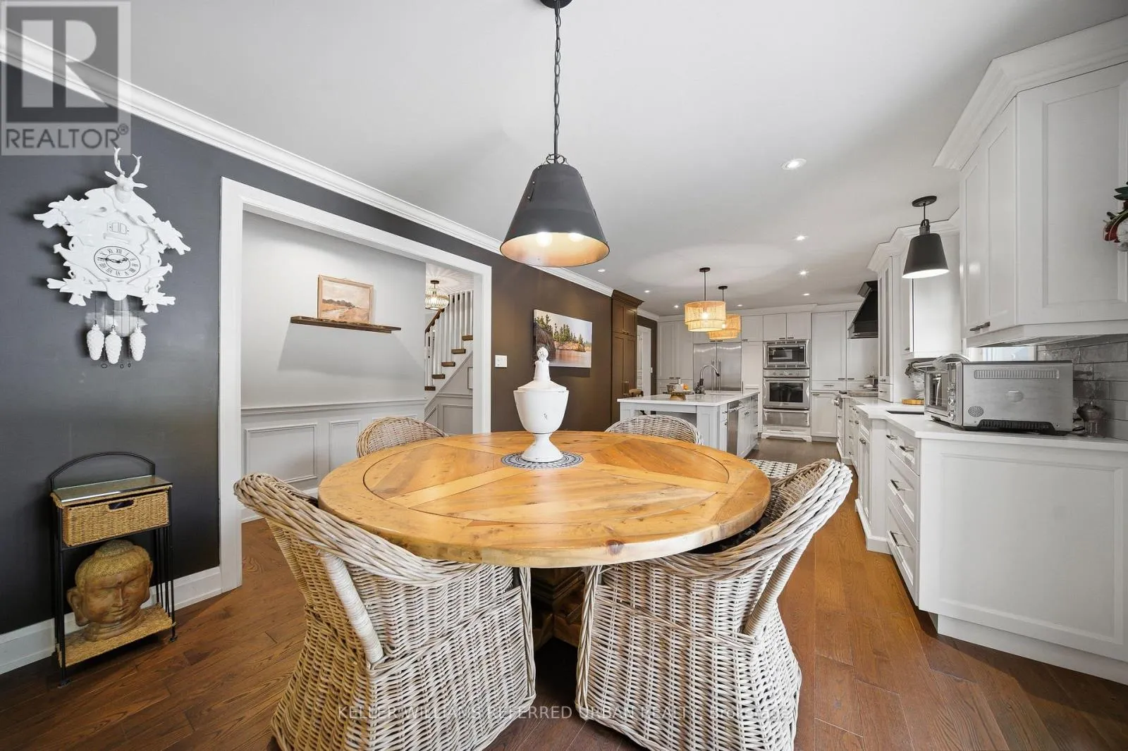 Wilson Street West and Hwy 2. Welcome to 57 McGregor Crescent, nestled on a quiet cul-de-sac in one of Ancaster's most sought-after, family-friendly neighborhoods. This beautifully updated two-storey home offers 2066 SF above grade with 3 spacious bedrooms, 5 bathrooms, a fully finished basement, and parking for six vehicles (double garage plus four-car driveway). Backing onto mature trees and just steps to local walking trails, this property delivers exceptional privacy and a true sense of retreat while remaining close to top-rated schools and major commuter routes.The heart of the home is a chef-inspired kitchen featuring custom cabinetry, designer range hood, premium appliances, a 6-burner gas stove, and a large quartz island with integrated prep sink and ample seating - perfect for gathering and entertaining. The kitchen flows seamlessly into the inviting family room with a cozy gas fireplace and tranquil backyard views. Upstairs, all three bedrooms offer their own private ensuites, including a luxurious primary suite complete with a freestanding soaker tub and heated floors. Step outside to your fully treed, square lot with 100% privacy and unwind in the outdoor Master SPA Hot-tub(2023).With designer lighting, heated bathroom flooring and refined finishes throughout, this is elegant, timeless living in the heart of Ancaster.Within a short drive of 57 McGregor Crescent you have public, Catholic, and secondary schools serving families in the Ancaster area - including Ancaster High, Rousseau Public School, St. Ann Catholic Elementary, and Bishop Tonnos Catholic Secondary. Major routes like Highway 403, Highway 6 / Governors Road, and Dundas Street make commuting to Hamilton and nearby cities easy. (id:27476)