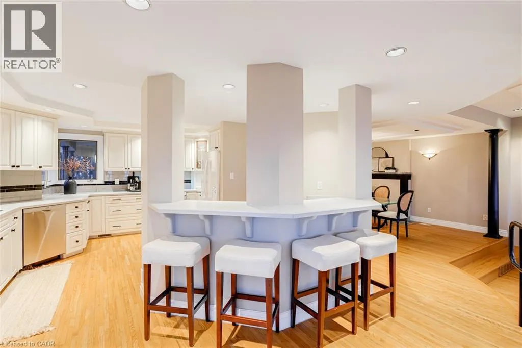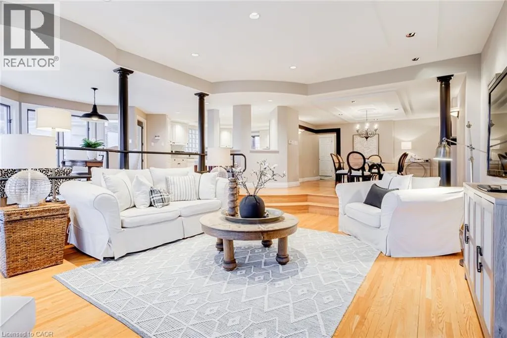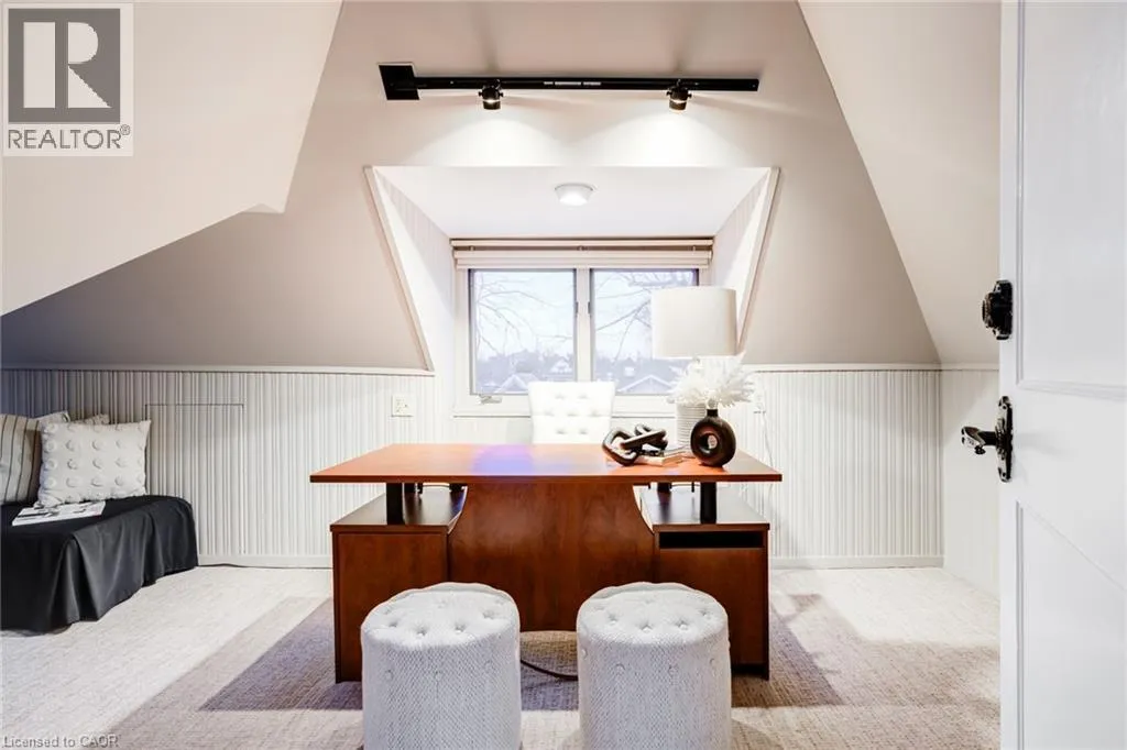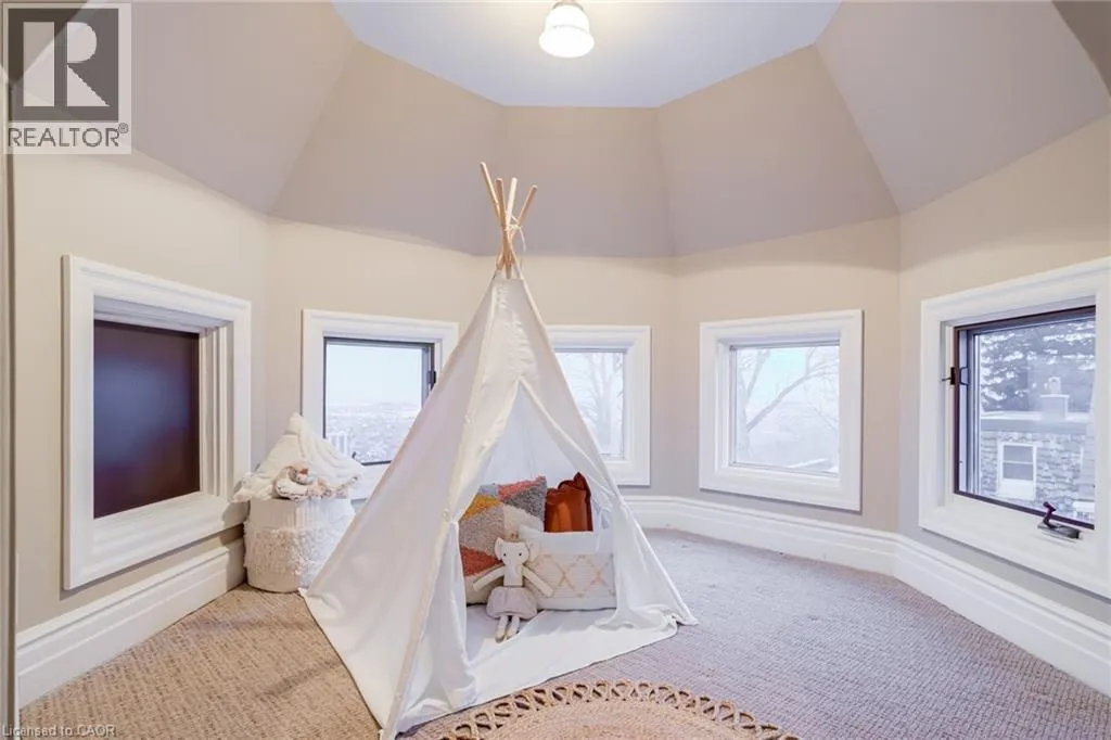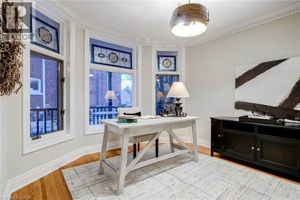 Concession St to Belwood Ave, right on Mountain Park Ave Timeless character meets one of Hamiltonâs most breathtaking views. Perched along the Niagara Escarpment, this iconic residence captures panoramic vistas of the Hamilton skyline, Lake Ontario, and even Toronto in the distanceâtransforming every sunrise, sunset, and city light into a daily masterpiece. Originally built in 1907 by Canadian playwright and actor Horatio George Summers, this generational family home seamlessly blends historic charm with thoughtful modern updates across approx. 3,300 square feet of living space. Designed for unforgettable entertaining, the open-concept main level features floor-to-ceiling windows that flood the home with natural light, highlighting rich hardwood floors and framing spectacular views. A spacious kitchen with breakfast bar anchors the space, effortlessly connecting multiple dining areas and a sunken living room that invites you to gather and unwind. A private front office overlooking the porch, stylish powder room, and updated laundry room with inside access to the double garage complete the main floor. The second and third levels offer five bedrooms and three full bathrooms, providing ideal flexibility for families, guests, or work-from-home living. The primary suite is a true retreat, featuring a barrel ceiling, wood-burning fireplace, walk-in closet, and beautifully renovated 5-piece ensuite. Step onto your private 500 sq. ft. balcony and take in 180 degrees of uninterrupted city views with your morning coffee. The third level adds more character with skylights, a full bath, additional bedroom, office space, and a distinctive turret-style sitting area perfect for reading or a creative play space. Outside, a multi-tiered backyard carved into the Escarpment showcases layered gardens, a four-tier entertaining deck, extended outdoor living space, and a spiral staircase to the upper balcony. Just steps to Juravinski Hospital, Concession Street, the Escarpment stairs, and Rail Trail. A piece of Hamiltonâs history, elevated. (id:27476)