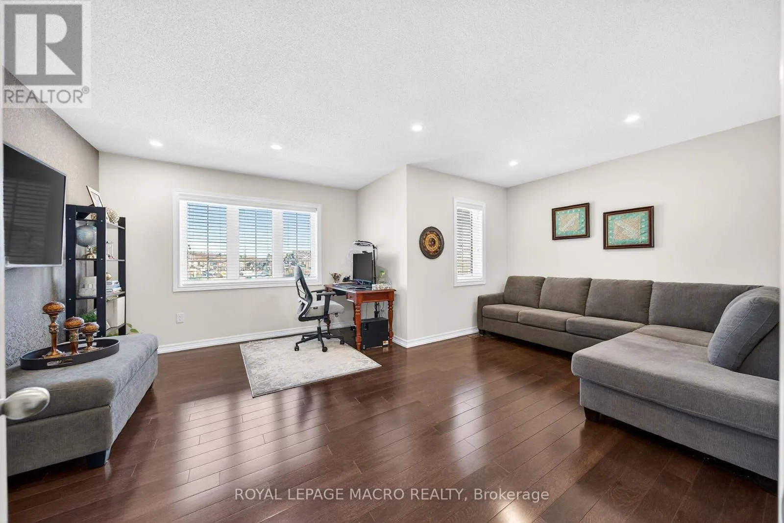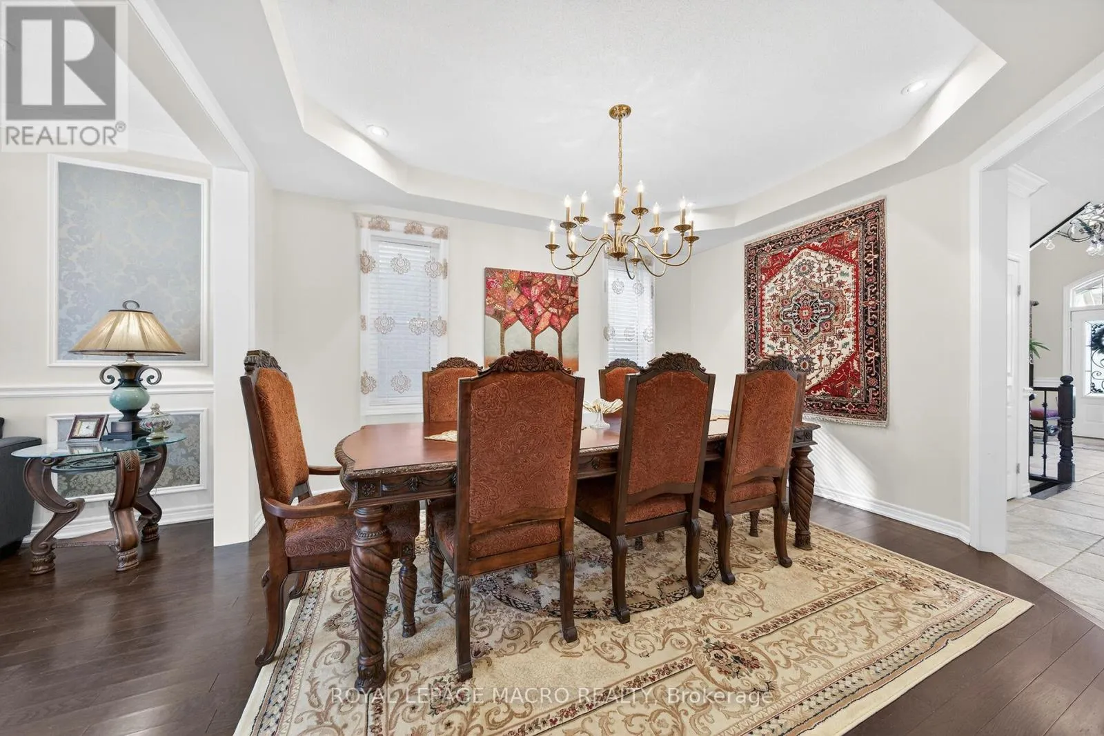 Cross Streets: Raymond Road. ** Directions: Raymond Road to Robertson Rd, Left on Grandell Dr. It's love at first sight! Welcome to this majestic, meticulously maintained home in the highly desirable Meadowlands of Ancaster. Proudly cared for by the original owners, this beautiful residence offers over 2,940 sq. ft. of above-grade living space and is situated on a quiet, family-friendly street. From the stately curb appeal to the stunning exterior finishes, this home makes a lasting impression. Step inside to a grand entryway leading to spacious principal rooms with soaring ceilings that create a bright, airy, and calming atmosphere. The carpet-free main floor features engineered hardwood flooring, a cozy gas fireplace, and an ideal layout including a formal living room, dining room, and family room. The bright and spacious eat-in kitchen is designed for both everyday living and entertaining, offering granite countertops, a built-in pantry, breakfast bar, and ample cabinetry. Upstairs, retreat to the generously sized primary bedroom complete with sun-filled windows, a walk-in closet, and a spacious ensuite bath. Three additional well-appointed bedrooms and a four-piece bathroom complete the second level-perfect for growing families. The full, unfinished basement with high ceilings provides a blank canvas ready for your personal touch and future expansion, offering incredible potential to customize to your needs. Enjoy the outdoors in the low-maintenance backyard featuring exposed aggregate concrete, with matching exposed aggregate driveway enhancing the home's curb appeal. A truly exceptional home in a prime location-seeing is believing. (id:27476)