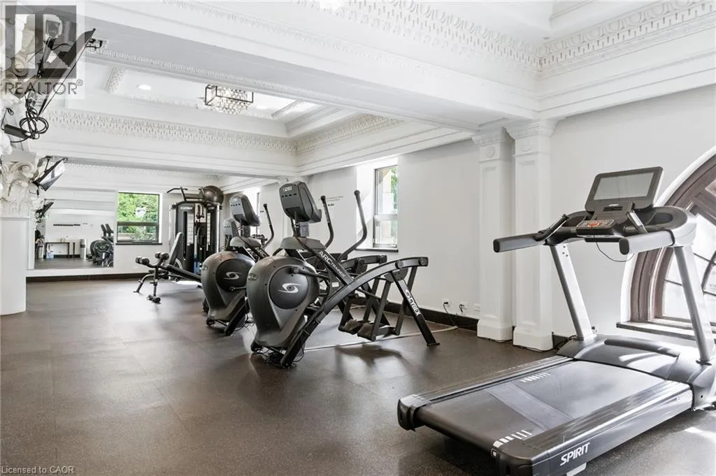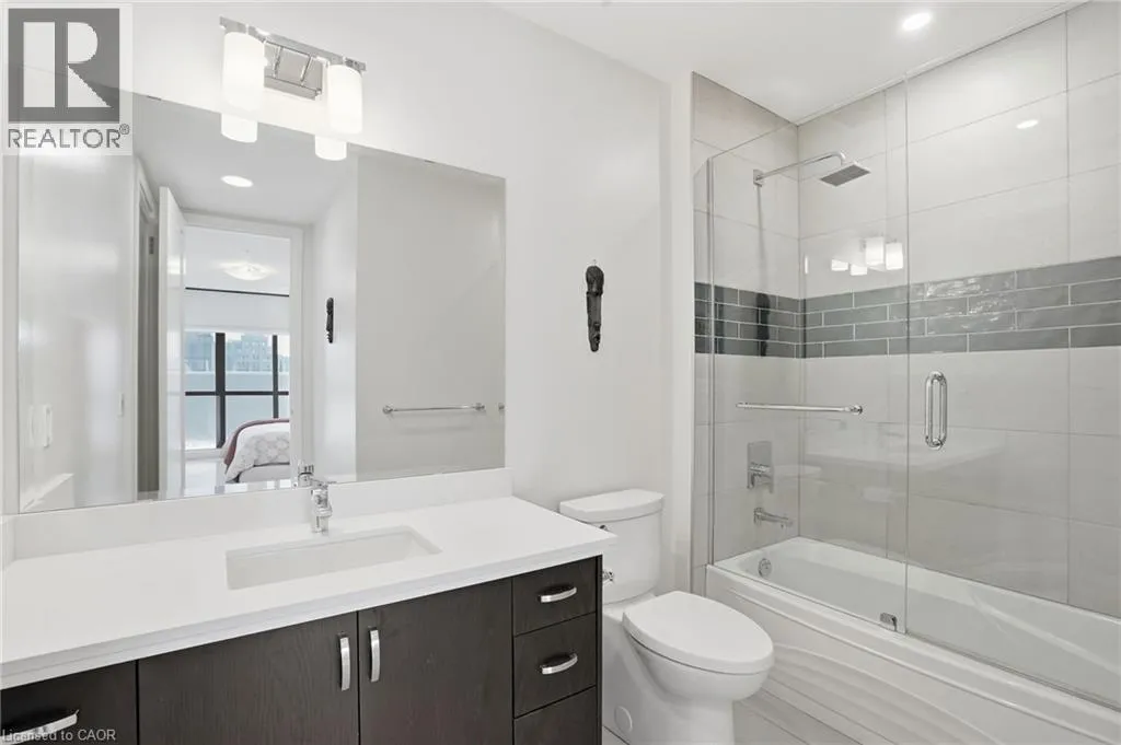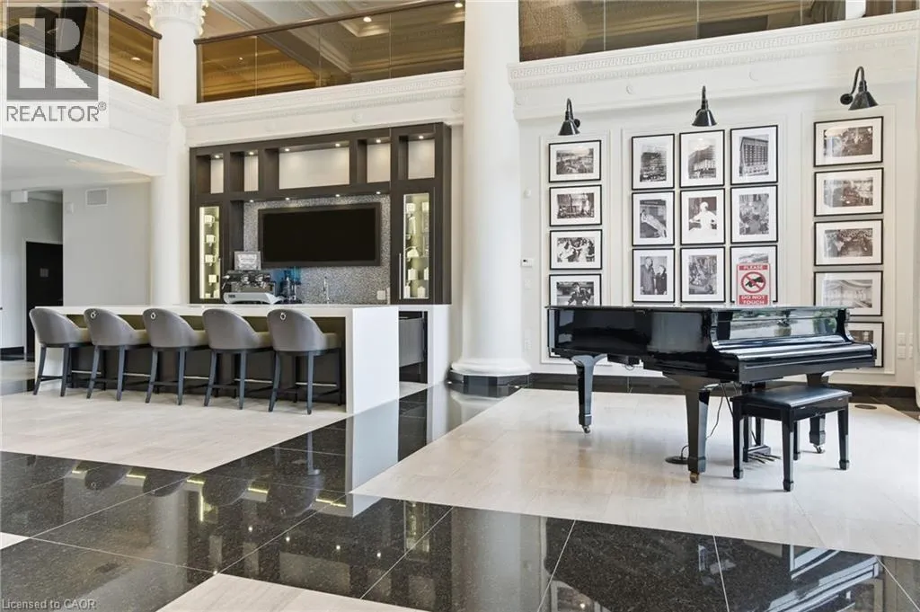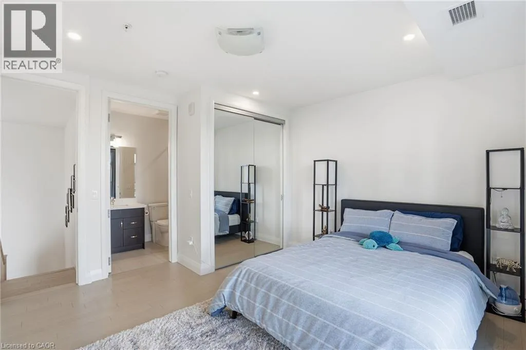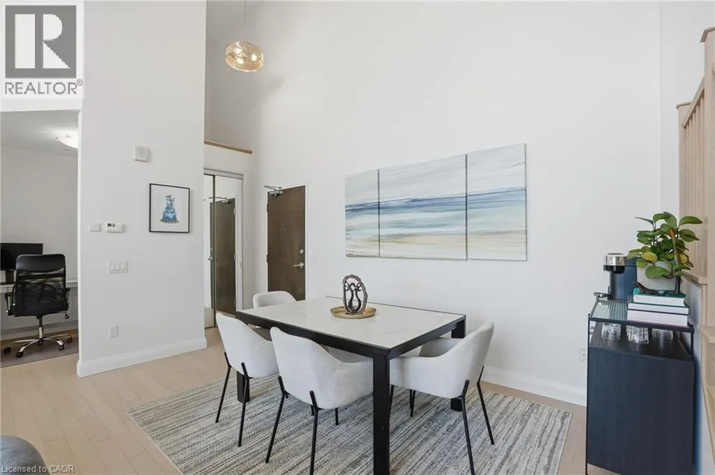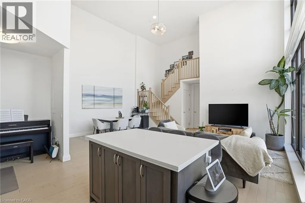 Catharine St & John St next to Gore Park Step into elevated city living in this rare two-storey 2-bedroom, 2-bathroom, plus den lower penthouse at the iconic Residences of Royal Connaught. This 1,267 sq ft west-facing suite features dramatic 18-foot ceilings, expansive floor-to-ceiling windows, and breathtaking, unobstructed views of the Escarpment, Gore Park, and Hamilton Harbour. The main level offers a bright open-concept living space with a den, laundry, and a spacious primary bedroom complete with walk-in closet and ensuite privileges, delivering true one-floor convenience. Upstairs, the second bedroom boasts its own 4-piece ensuite, ideal for guests or family. Thoughtful upgrades include quartz countertops, under-cabinet lighting, engineered hardwood floors, and custom motorized blinds. Enjoy your private balcony, ample storage throughout, and access to premium amenities including a rooftop terrace with fireplace and BBQs, party and media rooms, and a fully equipped gym. Starbucks is conveniently located between the two lobbies, just an elevator ride away. Unbeatable location steps to the GO Station, James Street North, King William Street, the Art Gallery of Hamilton, the Farmersâ Market, and more. Includes 1 underground parking and a storage locker located right next to the unit, with rental of a second parking spot available. Luxe, location, and lifestyle all in one. (id:27476)