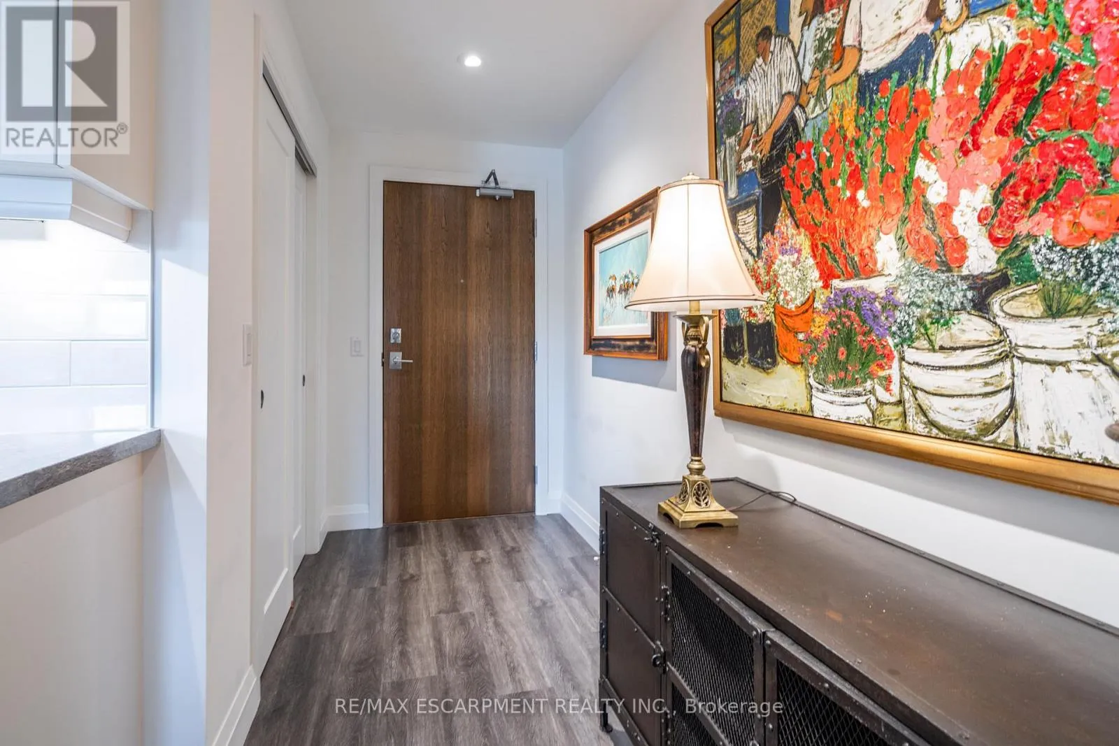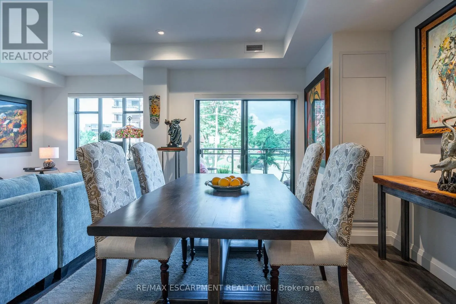 Cross Streets: Dundas St W. ** Directions: Dundas St W to Hamilton St S. Experience upscale living at 213-30 Hamilton Street South, a sophisticated two-bedroom, two-bathroom, 1,170 square foot corner residence in the prestigious The View Condominium, in downtown Waterdown. This contemporary building offers exceptional amenities-concierge service, a state-of-the-art fitness center, stylish party room, pet washing station, rooftop terrace, and lush garden. Inside, floor-to-ceiling windows frame sweeping views and flood the open-concept living, dining, and kitchen spaces with natural light. The kitchen features a large island, premium appliances, and elegant finishes. Step onto your private balcony to savor morning coffee or take in breathtaking sunsets. The primary suite impresses with two walls of windows and a serene ambiance, complemented by a spa-inspired ensuite. The second bedroom is perfect for guests or a refined home office. In-suite laundry, underground parking, and a storage locker complete the offering. Stroll to boutiques, fine dining, cafés, and markets, with quick access to major highways. Luxury, location, and lifestyle-perfectly combined. RSA. (id:27476)