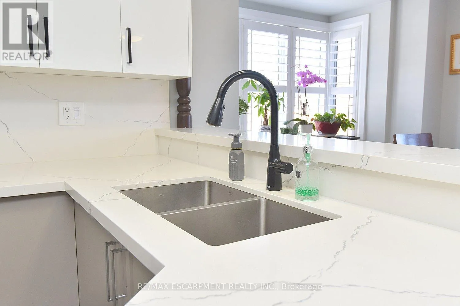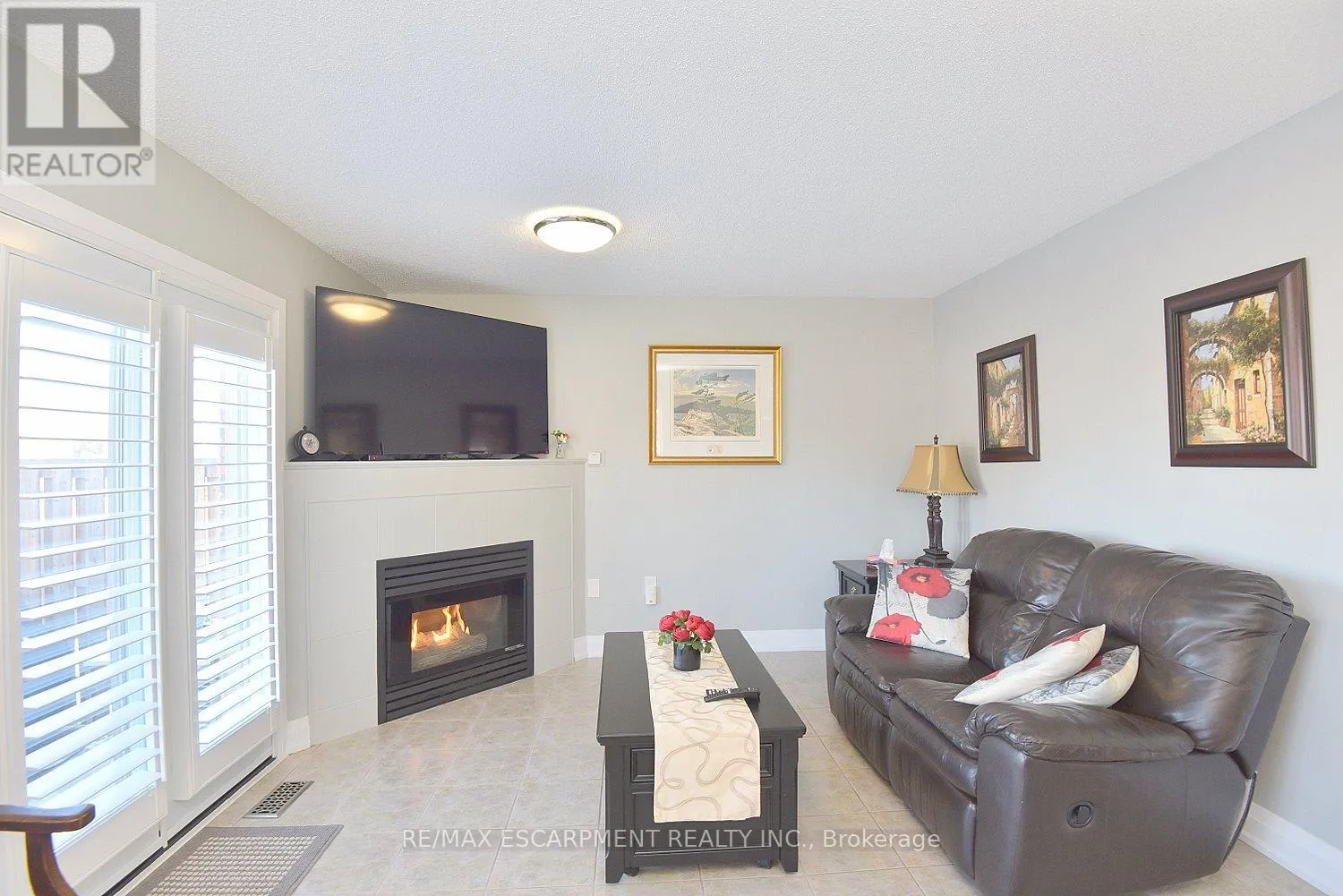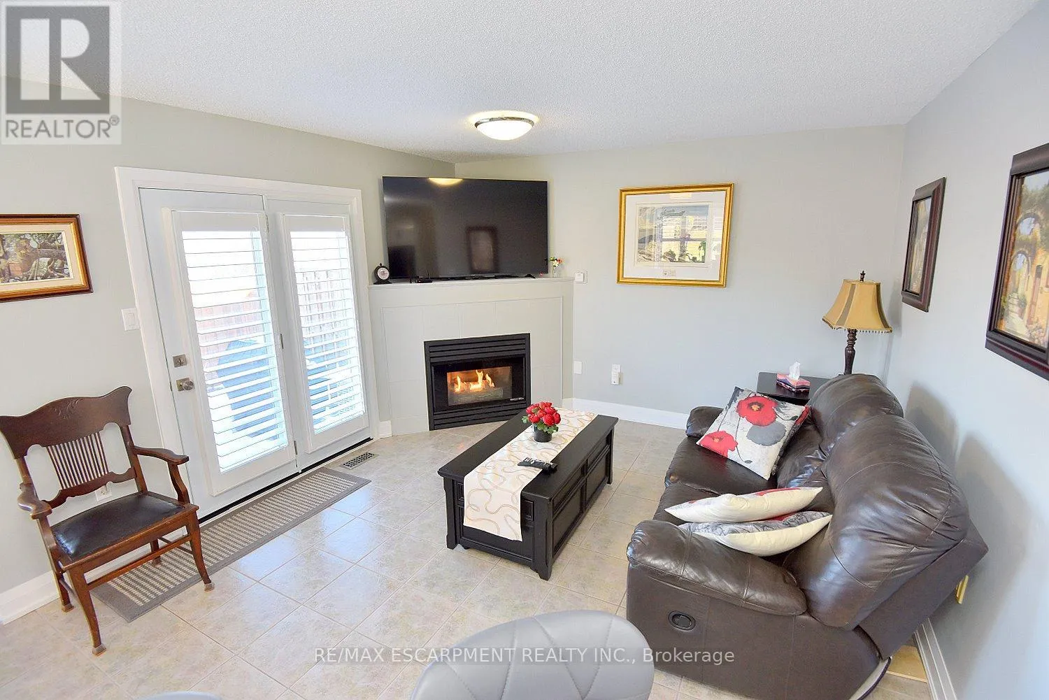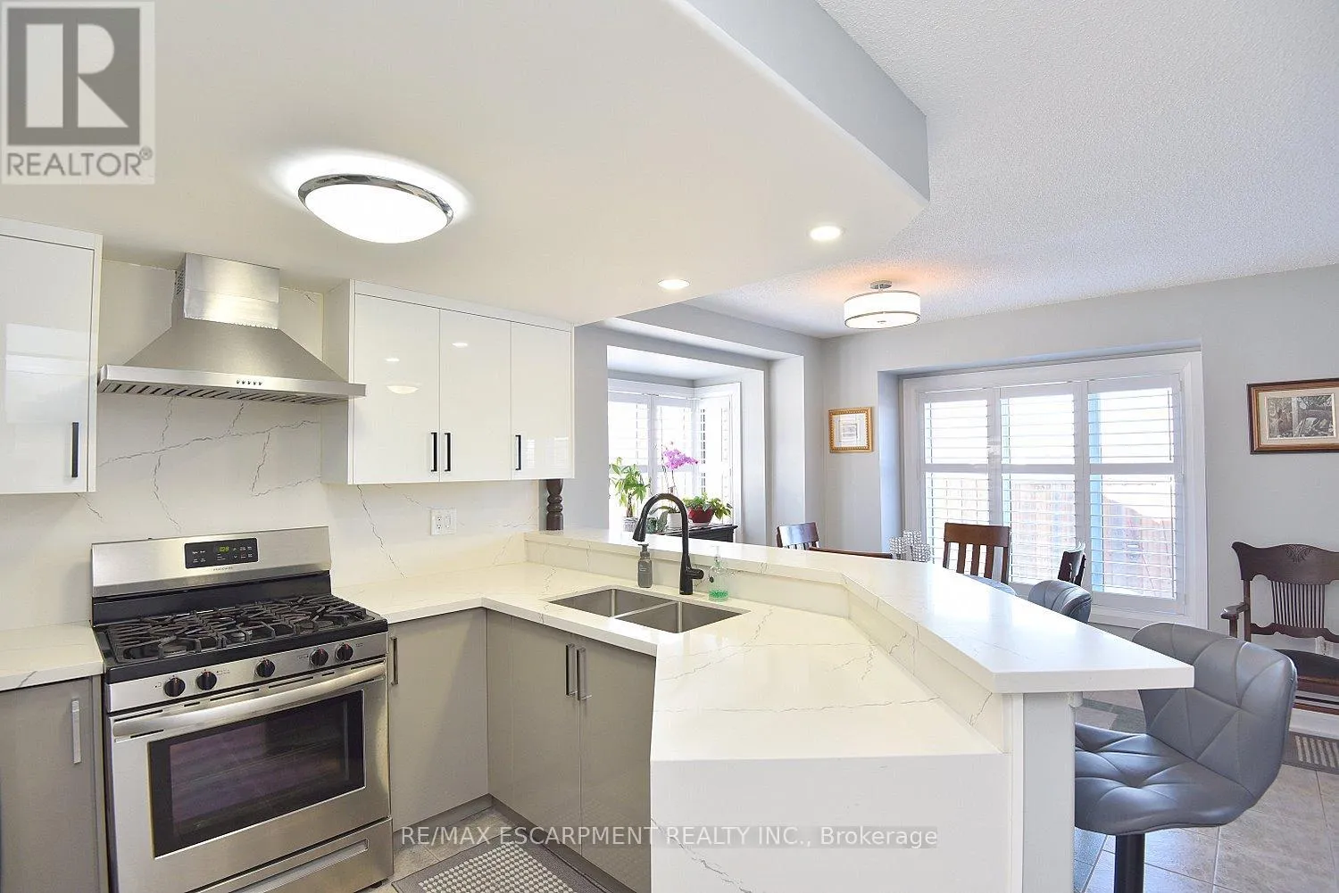 Cross Streets: KingéGreenhill. ** Directions: King St E at Greenhill. Immaculate and bright, open-concept 3 Bedroom end unit townhome in desirable Bayberry Village. Ideally located within the complex with open space and visitor parking to one side offering a park-like setting. The main level is perfect for entertaining thanks to the open layout combining the kitchen, dining, and living room which features a corner gas fireplace and terrace doors leading to the private patio. The renovated kitchen boasts modern white upper and grey lower cabinetry with hinged corner cabinets, quartz countertop with waterfall edge and backsplash, undermount sink, breakfast bar and chimney-style range hood. The handy powder room has also been updated with a quartz countertop vanity. The upper level has laminate flooring throughout and all bedrooms enjoy ample natural light. The large primary bedroom suite enjoys a vaulted ceiling, walk-in closet and renovated 3-piece bath with a large shower with rainfall showerhead. The 4-piece main bath, also renewed, is shared by the 2 additional bedrooms. The lower level offers a large rec room, laundry room and utility room with loads of storage. Features include California shutters, upgraded baseboards, white painted spindles, Decora light switches, inside entry to garage, plywood subfloors and is virtually carpet-free (only on stairs). The fridge, gas range, dishwasher and Samsung laundry pair are all included. This small quiet enclave of 43 townhomes is conveniently located across from St. Joseph's Healthcare King Campus, close to Eastgate Square, Queenston Rd. & Centennial Parkway shopping and restaurants. Steps to public transit, and with excellent highway access to the Red Hill Valley Parkway and QEW and a short drive to the new Confederation GO station for commuters. Welcome Home! (id:27476)