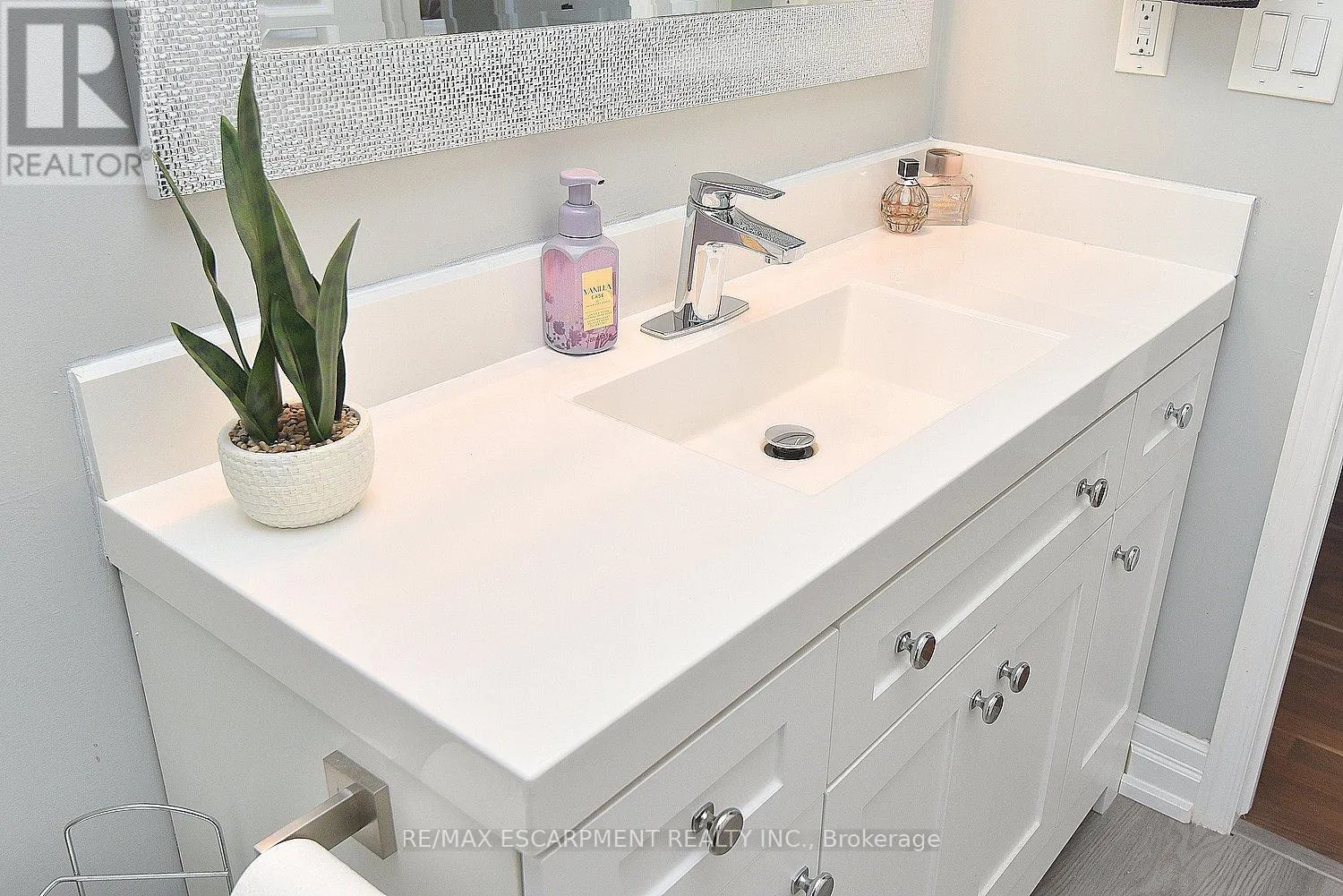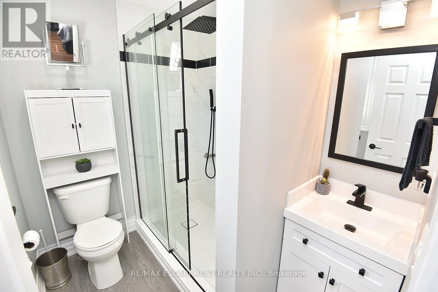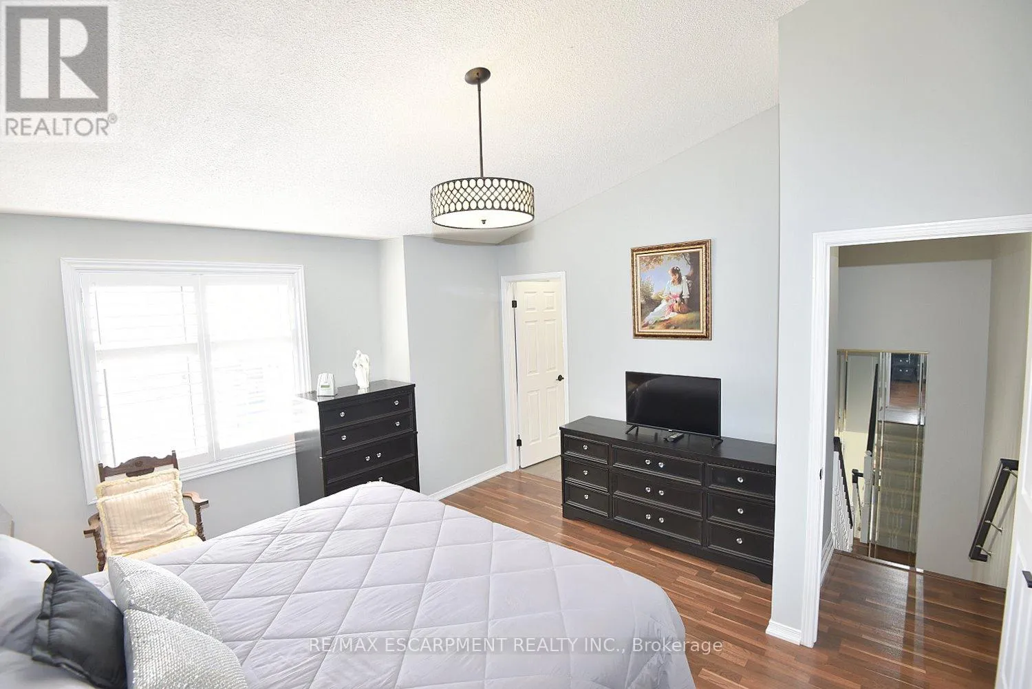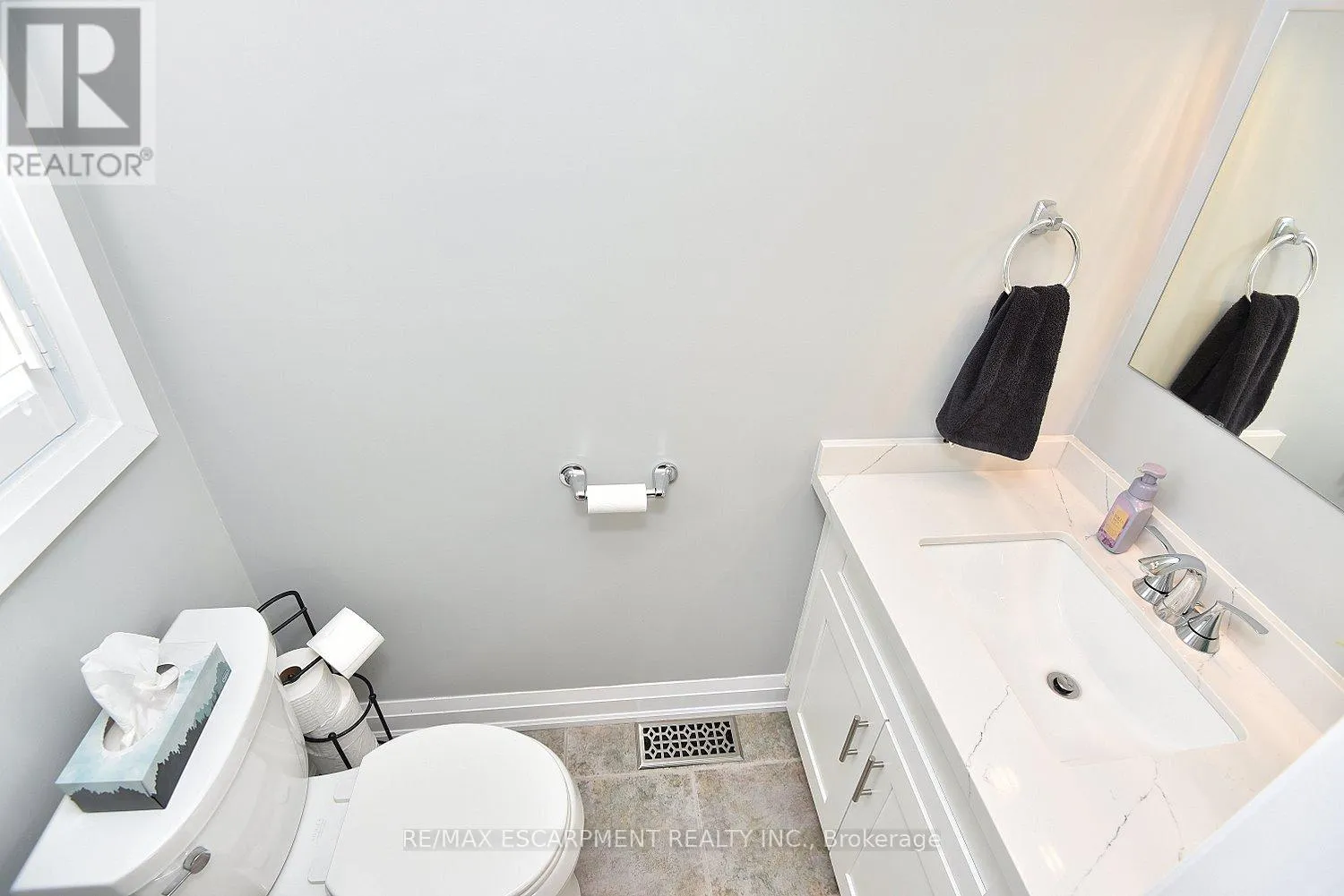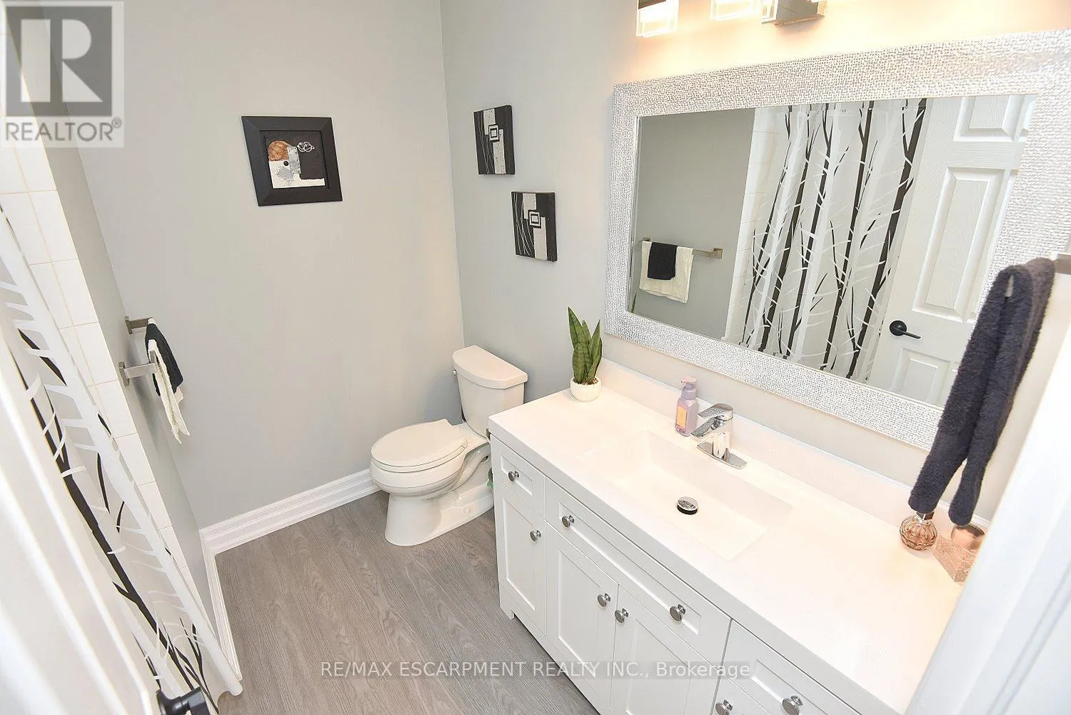 Cross Streets: KingéGreenhill. ** Directions: King St E at Greenhill. Immaculate and bright, open-concept 3 Bedroom end unit townhome in desirable Bayberry Village. Ideally located within the complex with open space and visitor parking to one side offering a park-like setting. The main level is perfect for entertaining thanks to the open layout combining the kitchen, dining, and living room which features a corner gas fireplace and terrace doors leading to the private patio. The renovated kitchen boasts modern white upper and grey lower cabinetry with hinged corner cabinets, quartz countertop with waterfall edge and backsplash, undermount sink, breakfast bar and chimney-style range hood. The handy powder room has also been updated with a quartz countertop vanity. The upper level has laminate flooring throughout and all bedrooms enjoy ample natural light. The large primary bedroom suite enjoys a vaulted ceiling, walk-in closet and renovated 3-piece bath with a large shower with rainfall showerhead. The 4-piece main bath, also renewed, is shared by the 2 additional bedrooms. The lower level offers a large rec room, laundry room and utility room with loads of storage. Features include California shutters, upgraded baseboards, white painted spindles, Decora light switches, inside entry to garage, plywood subfloors and is virtually carpet-free (only on stairs). The fridge, gas range, dishwasher and Samsung laundry pair are all included. This small quiet enclave of 43 townhomes is conveniently located across from St. Joseph's Healthcare King Campus, close to Eastgate Square, Queenston Rd. & Centennial Parkway shopping and restaurants. Steps to public transit, and with excellent highway access to the Red Hill Valley Parkway and QEW and a short drive to the new Confederation GO station for commuters. Welcome Home! (id:27476)