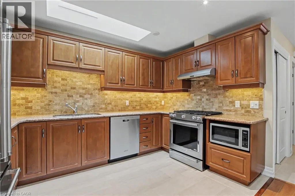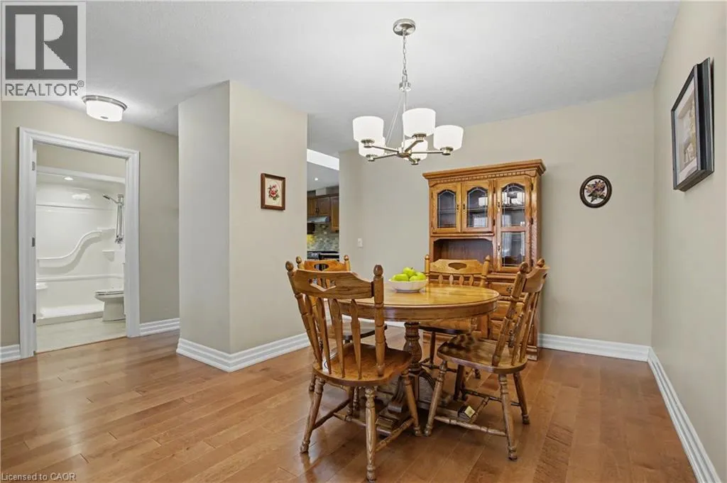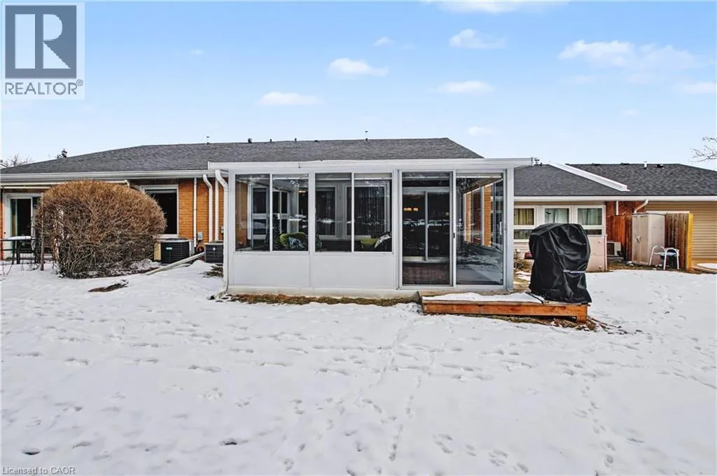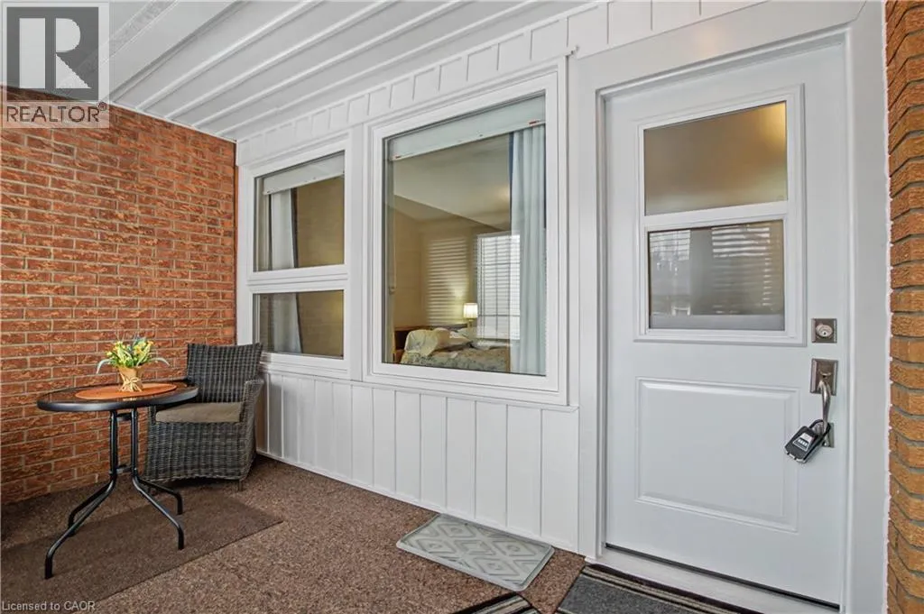 South East corner of Garth Street & Rymal Road West Step into carefree elegance at St. Elizabeth Village, a gated 55 plus community where independent living means more time for the things you love and none of the upkeep. This charming one level bungalow offers 1,150 square feet of thoughtful design with a garage, two sun filled bedrooms and one bathroom with a walk in shower. Gleaming engineered hardwood flows throughout the home and two enclosed sun rooms at the front and back expand living space, perfect for morning coffee, gardening projects, or a cozy reading nook flooded with light. The kitchen is a chef friendly delight with two skylights, a gas stove, granite counters and abundant cabinetry for effortless organization. Skylights and large windows keep the interior bright and welcoming while creating seamless sightlines from the kitchen into the living and dining areas for easy entertaining. Beyond your front door the Village is a vibrant hub of activity and convenience with a heated indoor pool, well equipped gym, saunas, hot tub and a golf simulator for friendly competition. Creative passions find a home in the woodworking and hobby shops. On site services make daily life simple with a medical clinic, cafe, pharmacy, hair salon and massage clinic, plus public transit for nearby errands and outings. Enjoy a warm, social community where maintenance free living meets comfort, style and endless possibilities. Schedule a visit and imagine the life you can create here. CONDO Fees Incl: Property taxes, water, and all exterior maintenance. (id:27476)