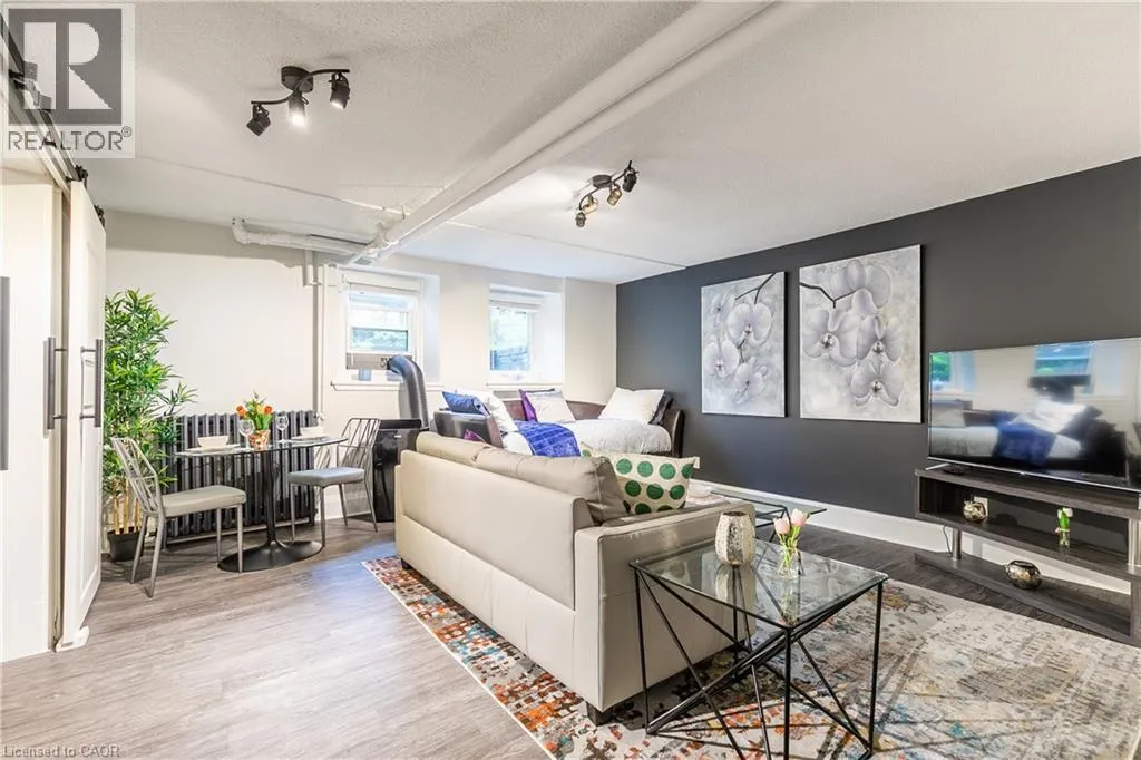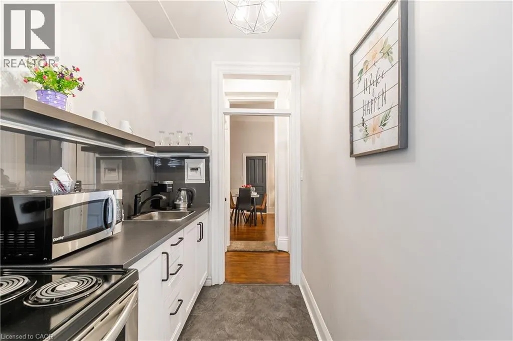 Left off James St S to Duke St Prime Medical & Residential Investment | Durand, Hamilton Turnkey medical-residential income property in the prestigious Durand neighbourhood of Hamilton â purpose-built for healthcare and upscale urban living. This fully renovated (2019) 9,927 SF three-storey building features a ground-floor medical/health clinic (approx. 2,363 SF) currently leased to a high-end operator, with flexibility for the tenant to relocate through sublease if desired, presenting an opportunity for a dentist, medical specialist, or plastic surgeon. The space includes a former surgical suite previously used by a plastic surgeon. Above the commercial space are 10 luxury residential units â 2 bachelor, 6 one-bedroom, and 2 two-bedroom suites totaling approximately 7,203 SF of premium rental space. Situated on a 0.205-acre lot with 49.75 ft frontage and 12+1 on-site parking, the property features 12' vaulted ceilings, new fire shutters, and common laundry with industrial machines. No heritage designation. Zoned E-L with Downtown Mixed-Use Official Plan designation permitting medical, professional, multiple residential, student housing, and retirement uses â with strong value-add potential including future conversion of commercial space to additional residential units (subject to approvals). CMHC financing eligible. Located blocks away from St. Joes Hospital, near Mohawk College, McMaster, Augusta Street Restaurants, TD Coliseum â an unmatched location for medical tenants and urban residents alike. Stable income with exceptional long-term upside. All information believed to be accurate but not guaranteed. Buyers to conduct regarding zoning, permitted uses, measurements, financials, and development potential. (id:27476)