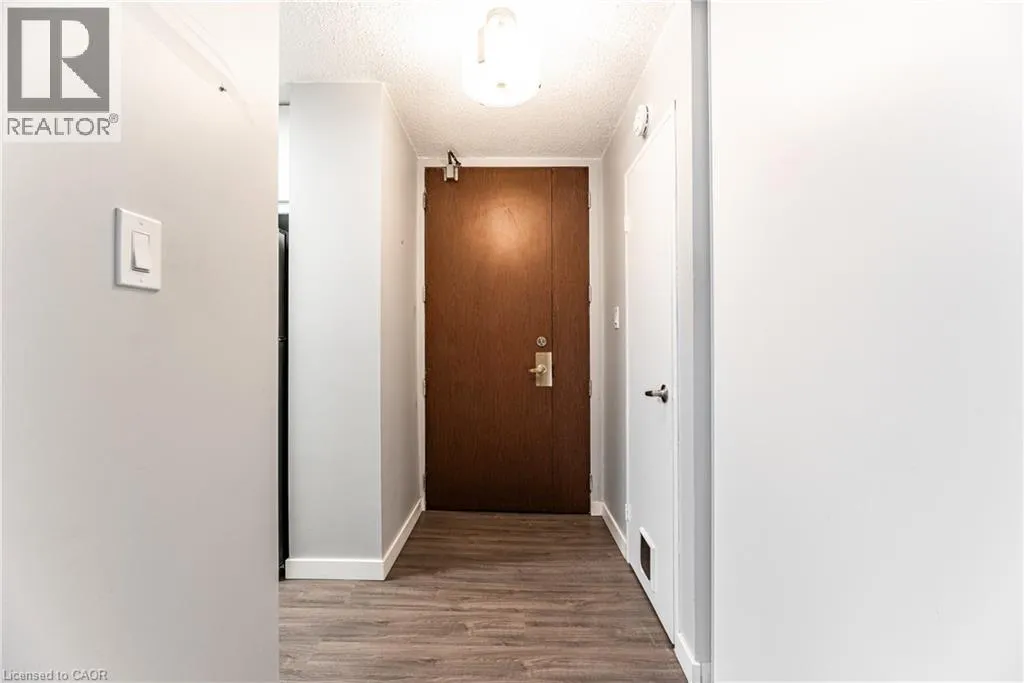 Jackson St. W between Hess St and Queen St. S Welcome to sought-after Village Hill at 222 Jackson St W, a well-maintained and secure building ideally located just steps to the downtown core, vibrant Hess village, shopping, highways, and public transit. This beautifully updated 2-bedroom, 2-bathroom suite is filled with natural light from large windows and features laminate flooring throughout, a modern kitchen with stainless steel appliances and quartz countertops, and updated bathrooms including a sleek glass shower. Underground parking and a locker are included, and residents enjoy excellent building amenities such as an exercise room, sauna, party room, and visitor parking. April 1st possession available- don't miss this exceptional opportunity. (id:27476)