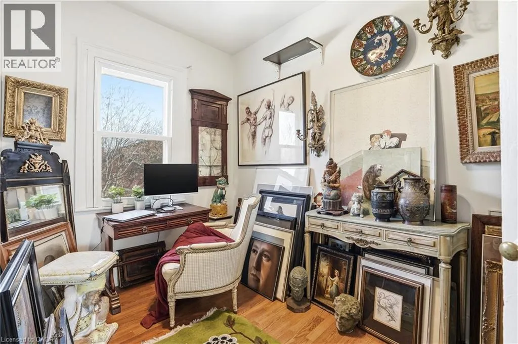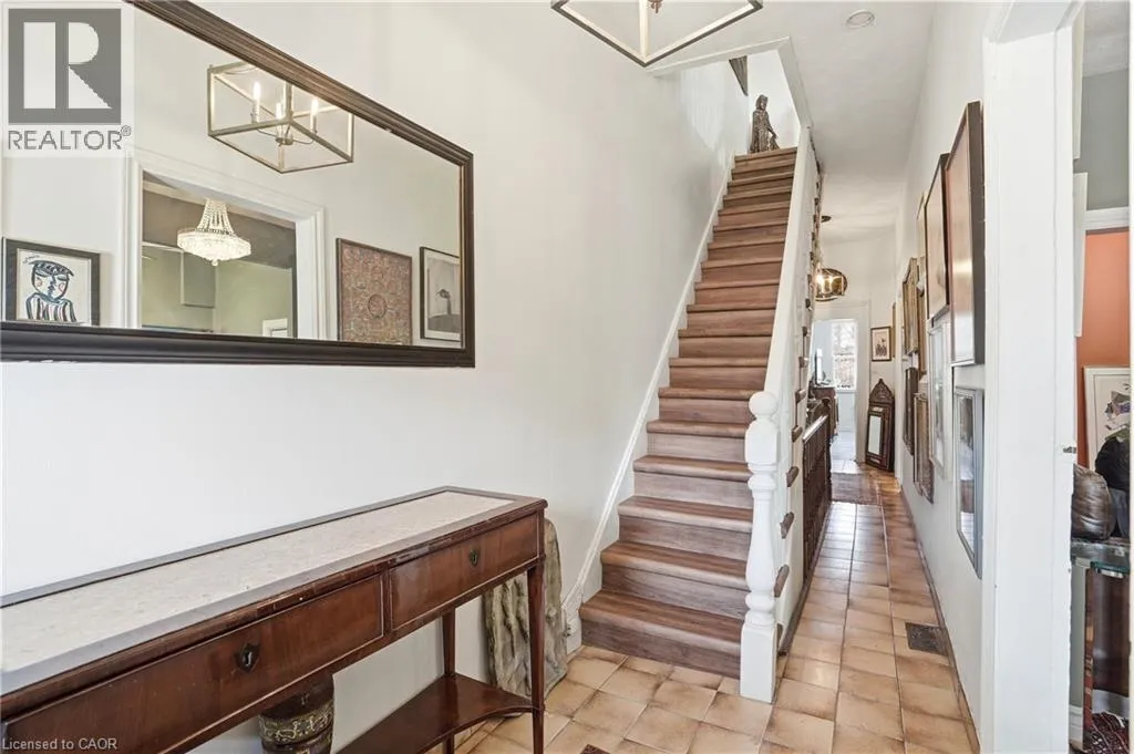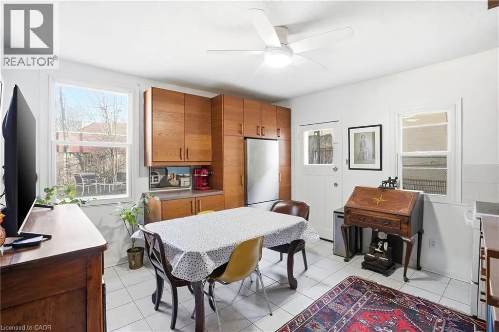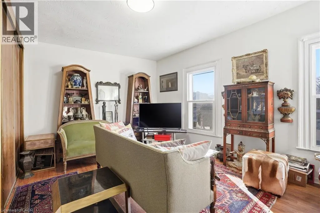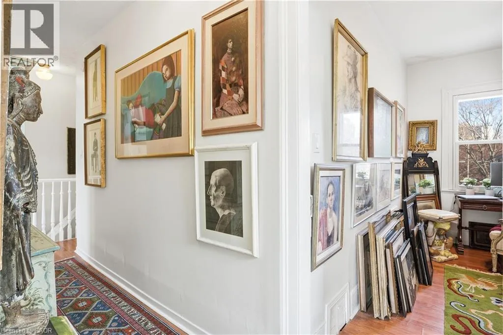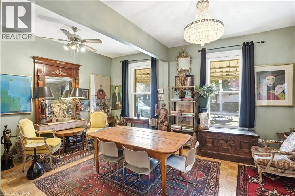 North of Cannon St W, one block west of James St N A rare opportunity to own a spacious registered detached home in the heart of downtown Hamilton, offering 4 bedrooms, 2 full bathrooms, & over 1,500 sq ft above grade living space. The bright eat-in kitchen provides plenty of room for daily living, while the oversized living and dining areas impress with soaring 10-foot ceilings, abundant natural light, & original parquet flooring adding warmth and character. A freshly painted interior enhances the airy feel, & newly finished wood stairs throughout keeps maintenance simple. Step outside to a level backyard with ample space for entertaining, gardening, or relaxing in your own private outdoor setting. Upstairs, 9-foot ceilings continue the sense of openness across four well-proportioned bedrooms & a full 4-piece bath, offering flexibility for families, guests, or a home office. The partially finished lower level features a cozy rec room, another 4-piece bathroom, along with additional storage & over 350 sq ft of unfinished space ready to customize to your needs. Solid all-brick construction, currently sided for added insulation, speaks to the homeâs durability & long-term value. Ideally located just minutes from Bayfront Park, Pier 4 Park, Jackson Square, the waterfront trails, & West Harbour GO, this property offers walkability, convenience, & easy highway access for commuters. With generous square footage, timeless character, & a location that continues to grow in demand, this is an opportunity you wonât want to miss. (id:27476)