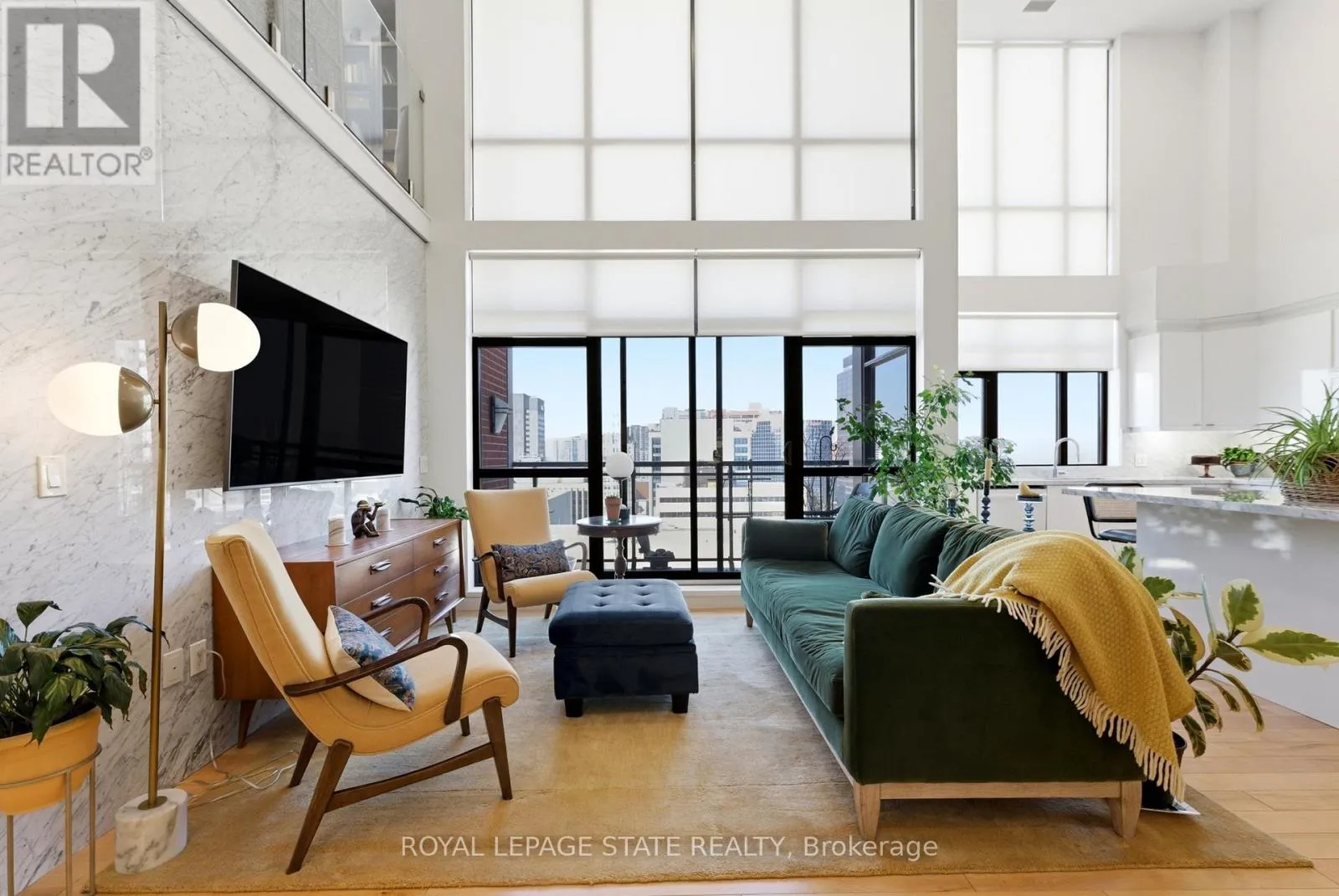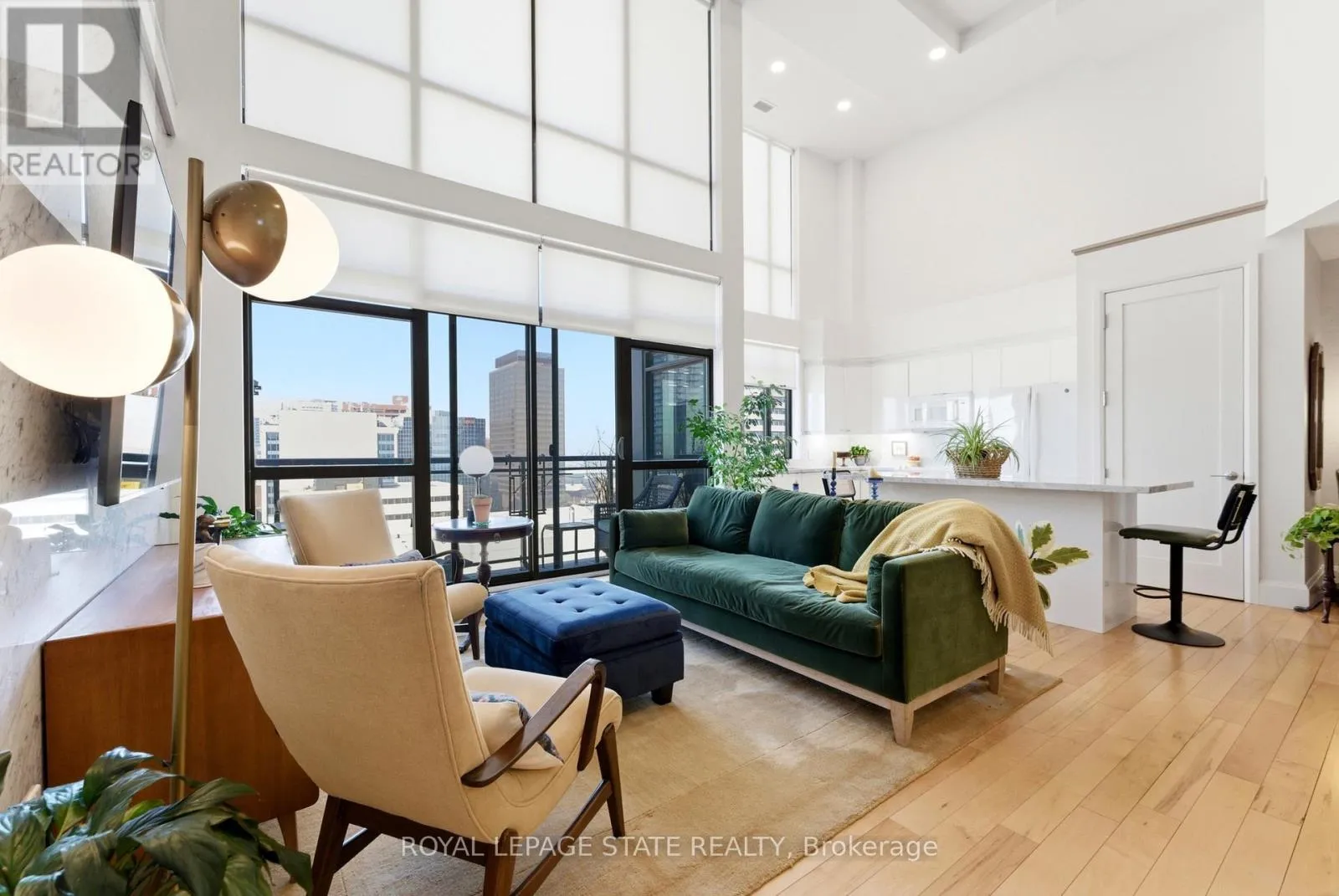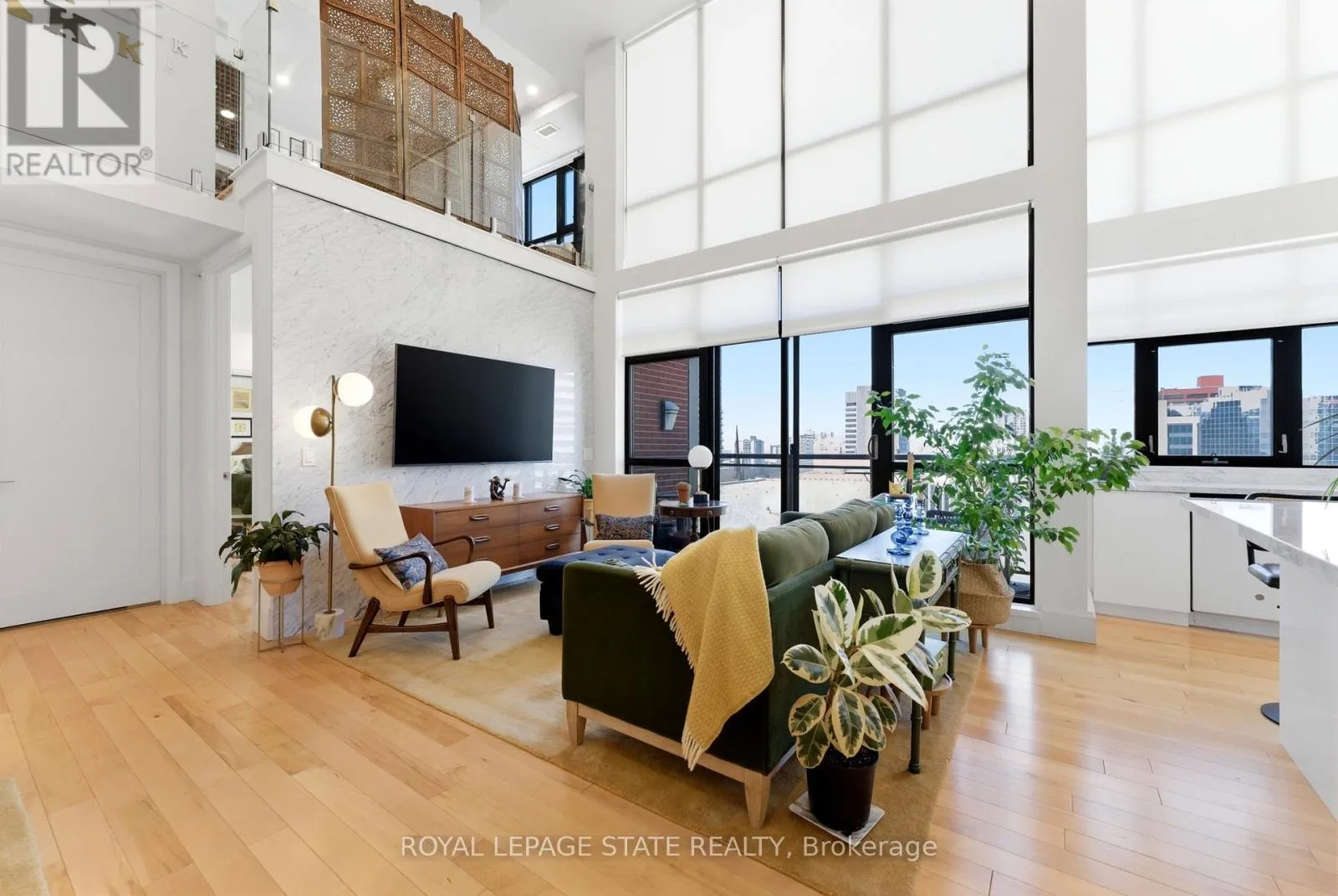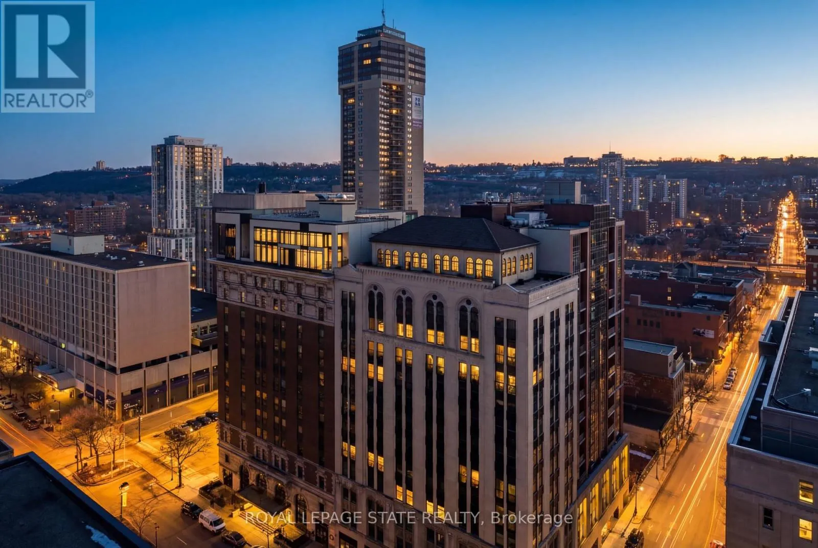 King and John Welcome to penthouse living in the heart of downtown Hamilton. Bright and spacious with 18-foot ceilings and floor to ceiling windows that flood the space with natural light and showcase spectacular city views. The open concept main living area leads to a private balcony where you can take in the skyline and the energy of the city below. The unique loft style bedroom overlooks the living space and features its own ensuite. Located in a safe secure building residents also enjoy a well-equipped fitness centre and media party room. Underground parking and a private locker right next door to the unit provide added convenience. Step outside and you are in the centre of it all. Walking distance to shopping restaurants cafes and the vibrant culture of James Street North. Close to public transit and the GO Station for easy commuting. Stylish urban penthouse living in one of Hamiltons most dynamic neighbourhoods. (id:27476)