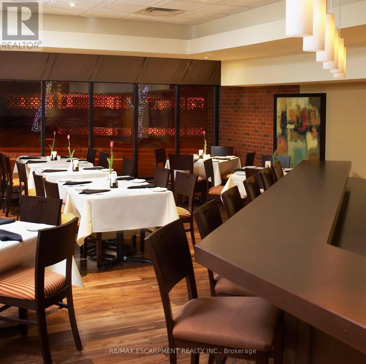 Main Street West and HWY 403 Great opportunity to lease a restaurant within a busy Hamilton hotel. The restaurant is located in the Visitors Inn hotel in West Hamilton and includes hotel catering and room service. Conveniently located near McMaster University and Innovation Park. It is fully operational with furnishings and equipment included in the lease. The lease is Gross(all utilities and TMI included) (id:27476)