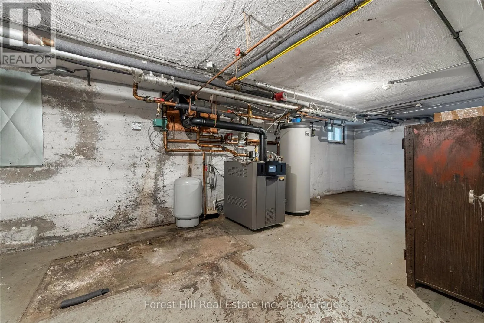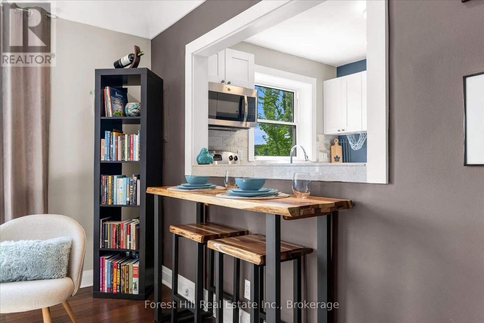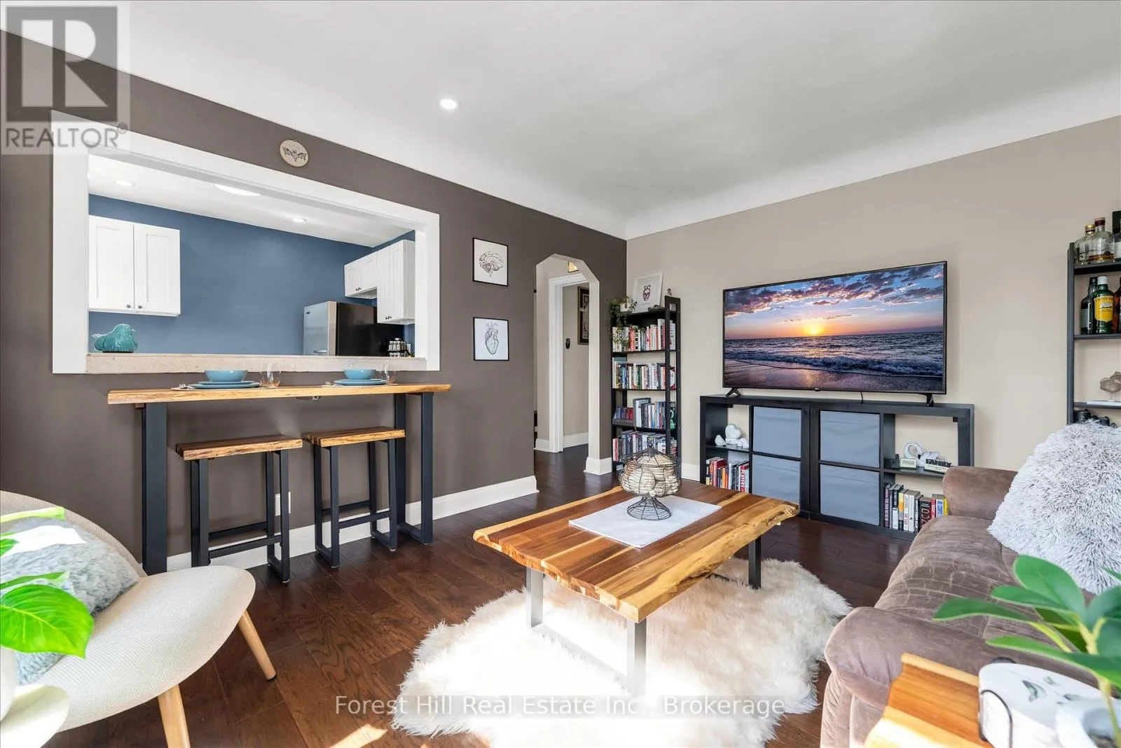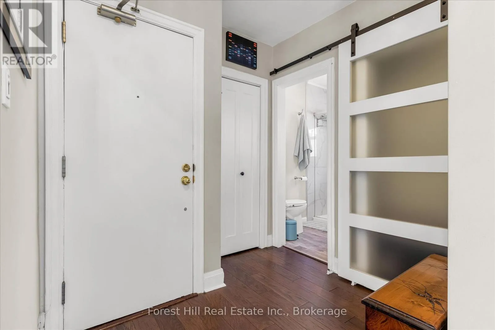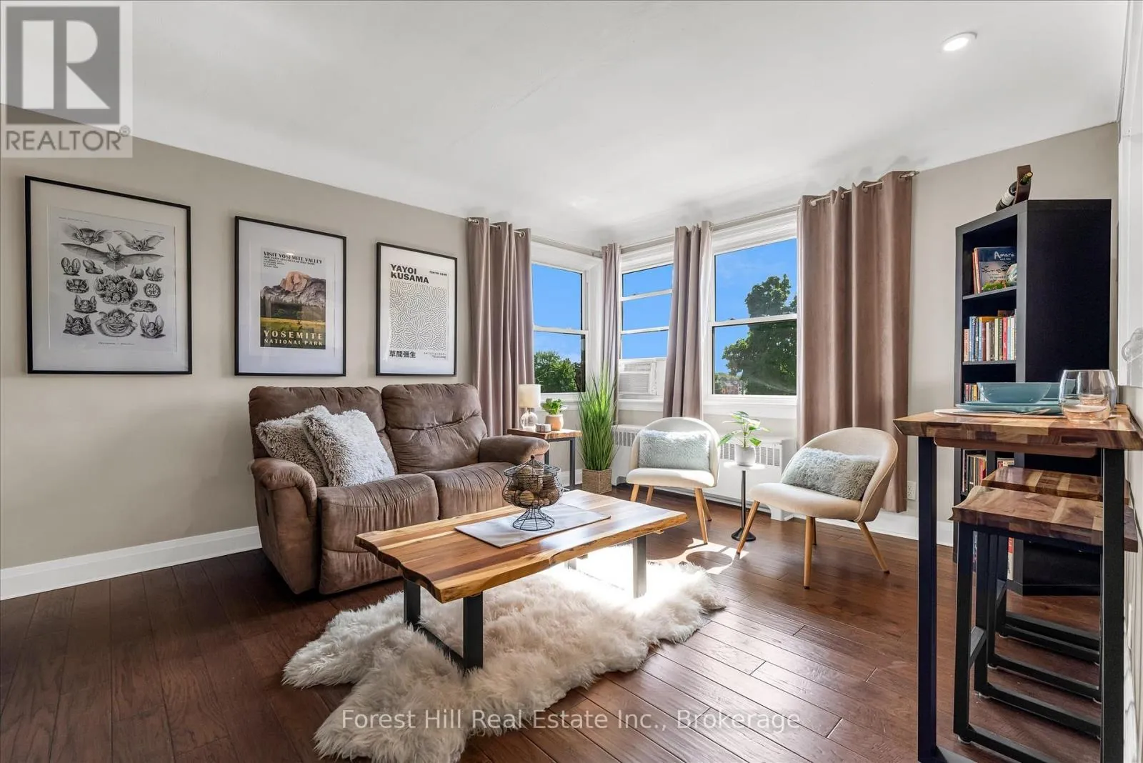 Main St. W & Stroud Rd. This beautifully renovated co-op apartment blends style and substance. Wide-plank hickory-look engineered hardwood flows throughout. A large kitchen opening brightens the space with natural light and offers great sight-lines. The bathroom is modern with updated plumbing, a window, porcelain tile, and a spacious shower. A sliding barn-style door adds character and privacy to the generous bedroom. The kitchen boasts solid maple shaker cabinets, stainless steel appliances, and dimmable LED pot lights. Smart storage solutions include a foyer closet with built-in bench. Unit has upgraded electrical (panel, wiring, switches, lights), and underfloor soundproofing. Close to McMaster Hospital, cafés, restaurants, transit (80m to bus stop to downtown and 150m to bus stop to Dundas), and highways. Monthly fee: $400 (includes property taxes, heat, water, building insurance).This quiet, adult-only, non-smoking co-operative community promotes pride of ownership. Units must be owner-occupied, ensuring a stable and respectful environment. Potential buyer(s) must be approved by the Board. (id:27476)