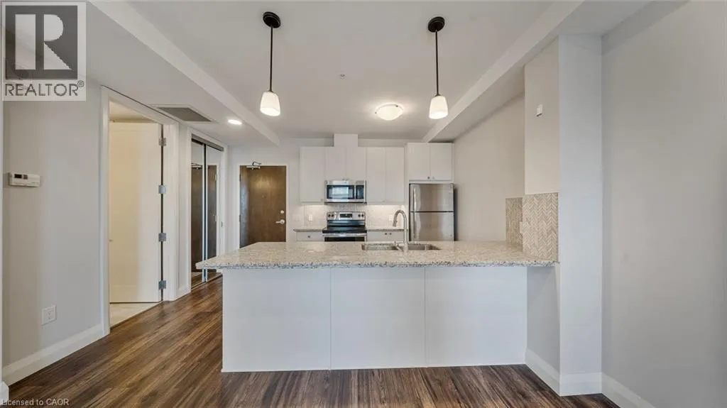 King Street East, between Catherine Street & John Street Welcome to this stylish 1-bedroom, 1-bath condo located in one of downtown Hamiltonâs sought-after modern buildings with historic charm. Step into a bright, open-concept space featuring a contemporary kitchen with stainless steel appliances and granite countertops, perfect for modern urban living. You will enjoy in suite laundry as well as closet space offering convenience and storage. The building offers impressive amenities including a fully equipped fitness gym, rooftop terrace with stunning city views, media room, and party room â ideal for entertaining or relaxing after a busy day. Enjoy the convenience of downtown living, just steps from parks, Starbucks, the GO Station, and many wonderful restaurants. Experience everything Hamiltonâs vibrant core has to offer right at your doorstep. Perfect for professionals, first-time buyers, or investors â this condo combines style, comfort, and location in one incredible package. (id:27476)