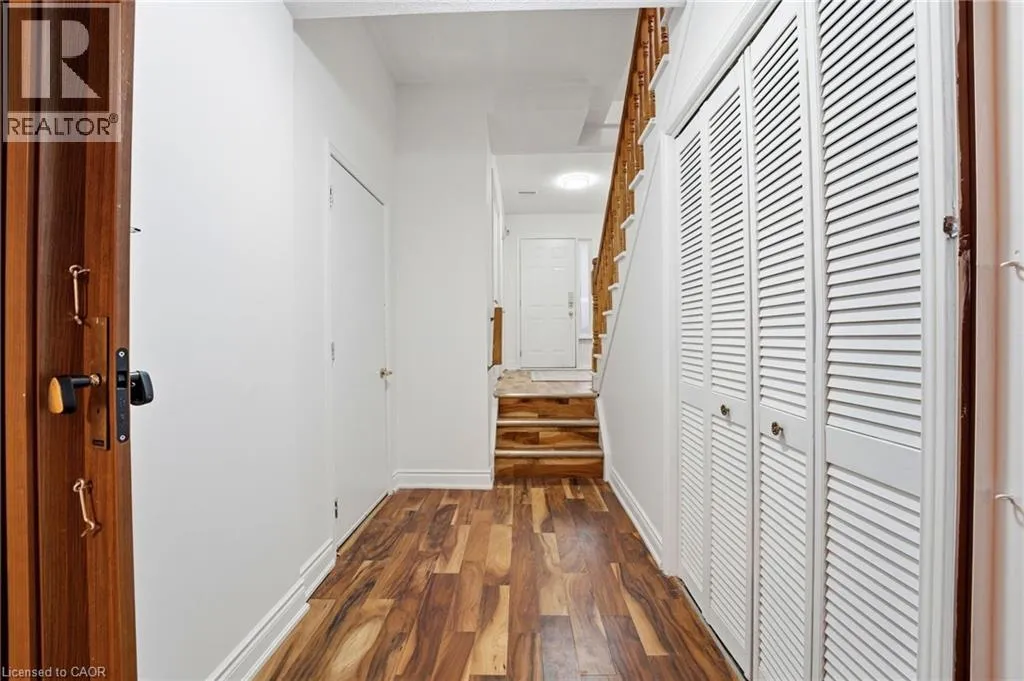 This rare, fully detached home is nestled in a private townhouse complex, offering independence and low-maintenance living. Surrounded by windows & bathed in natural light, this home showcases stunning escarpment views and spacious living with 1,900 sq. ft., 3+1 bedroom home & 1.5 bathrooms. Recent renovations (2026) include a modern 4-piece bathroom. Bathroom & 2 pc. Bath, some new laminate flooring, freshly painted, renovated kitchen with quartz counters and backsplash. Windows 2015-2016, Gas Furnace 2018, Central Air, 2016, Hot Water heater owned 2025, Enjoy open concept living with high ceilings in the living room and a separate dining area for entertaining in style & escarpment views from your kitchen balcony. The primary bedroom features a huge walk-in closet with ensuite privileges & the large main floor flex area offers incredible opportunity. This incredible West Hamilton location is just minutes to Ancaster, Dundas and McMaster. Nothing to do but move in and enjoy. (id:27476)
