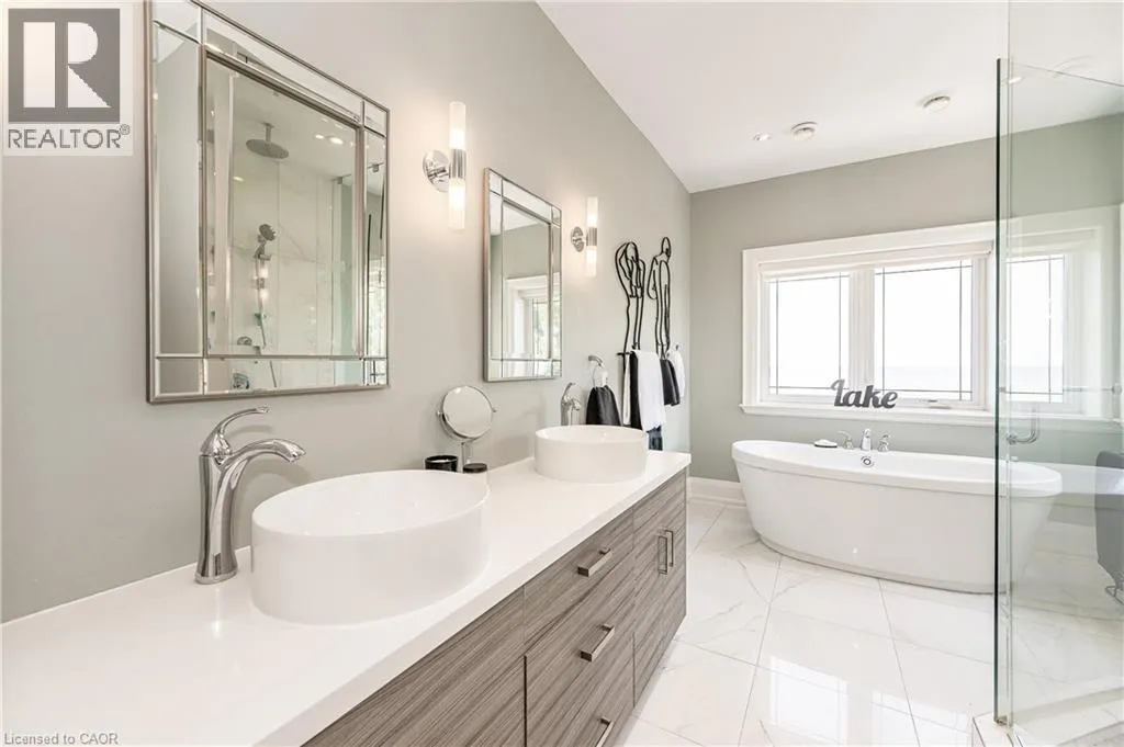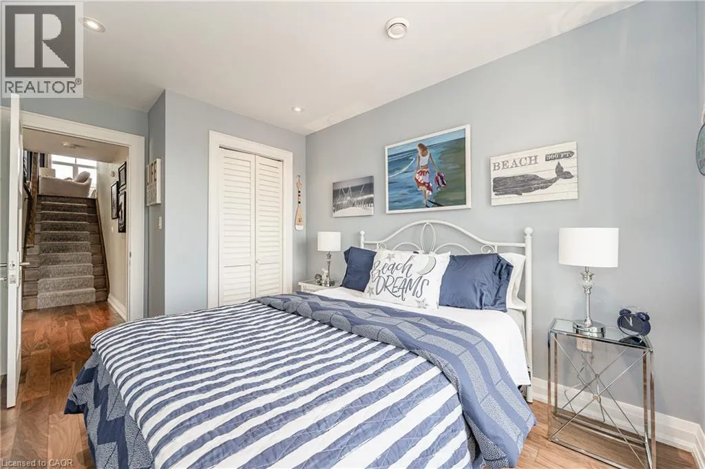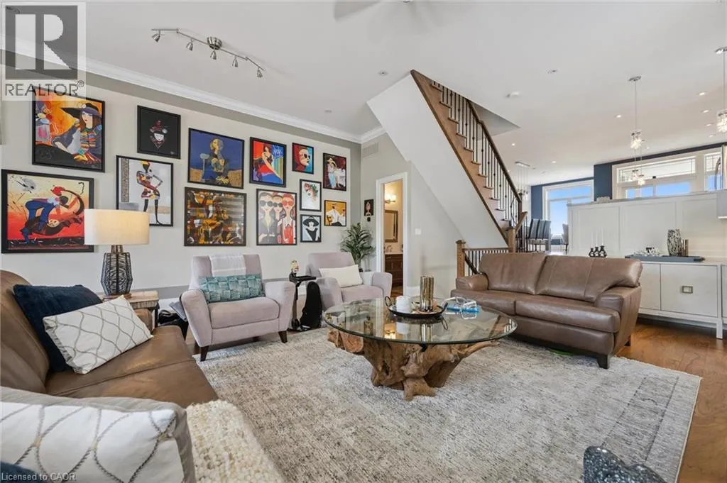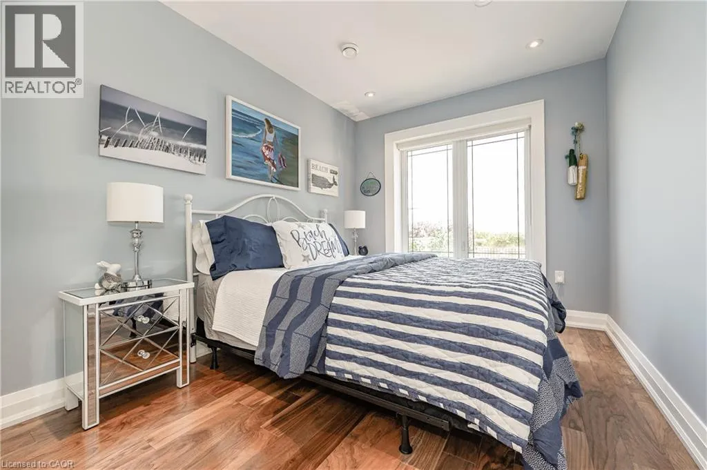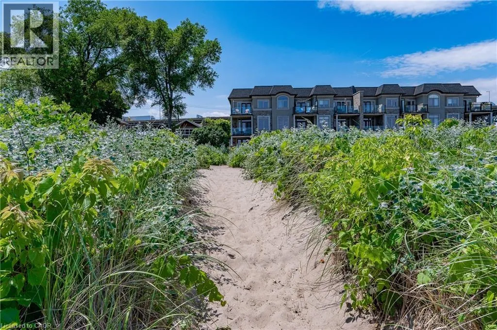 Between Eastport Drive & Van Wagners Beach Road Experience waterfront living in this beautifully appointed 3-bed, 4-bath executive freehold townhome, over 3000 sq ft of thoughtfully designed living space. As a desirable end unit, it provides additional privacy, more windows for natural light, direct backyard access, and the convenience of a full two-car driveway. Enjoy stunning east-facing lake views and breathtaking sunrises from multiple vantage points, including three oversized terraces. The open-concept layout features soaring ceilings and a spacious, upgraded kitchen with an expansive island and premium stainless steel appliances, ideal for entertaining. Designed with comfort and durability in mind, this home includes 8â reinforced concrete construction through the centre for added sound separation and structural integrity. Take in uninterrupted lake views from nearly every room and enjoy direct access to the waterfront lifestyleâlaunch your kayak from the garage, stroll the boardwalk, or cycle along the lake to Spencer Smith Park and beyond. Ideally located steps to the beach and just minutes from downtown Burlington, with quick access to Toronto and Niagara via major highways. A rare opportunity to enjoy low-maintenance luxury living by the water. (id:27476)