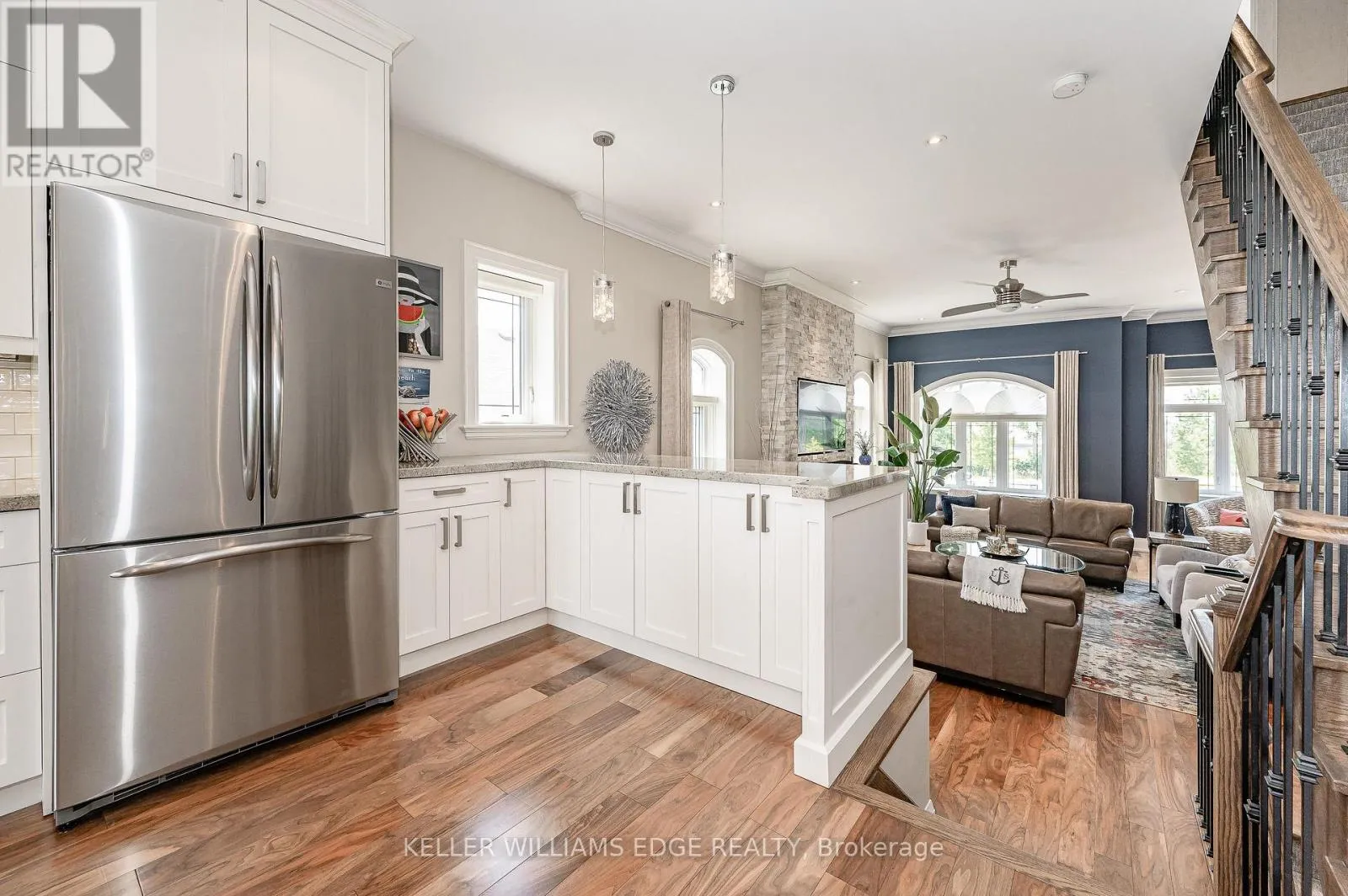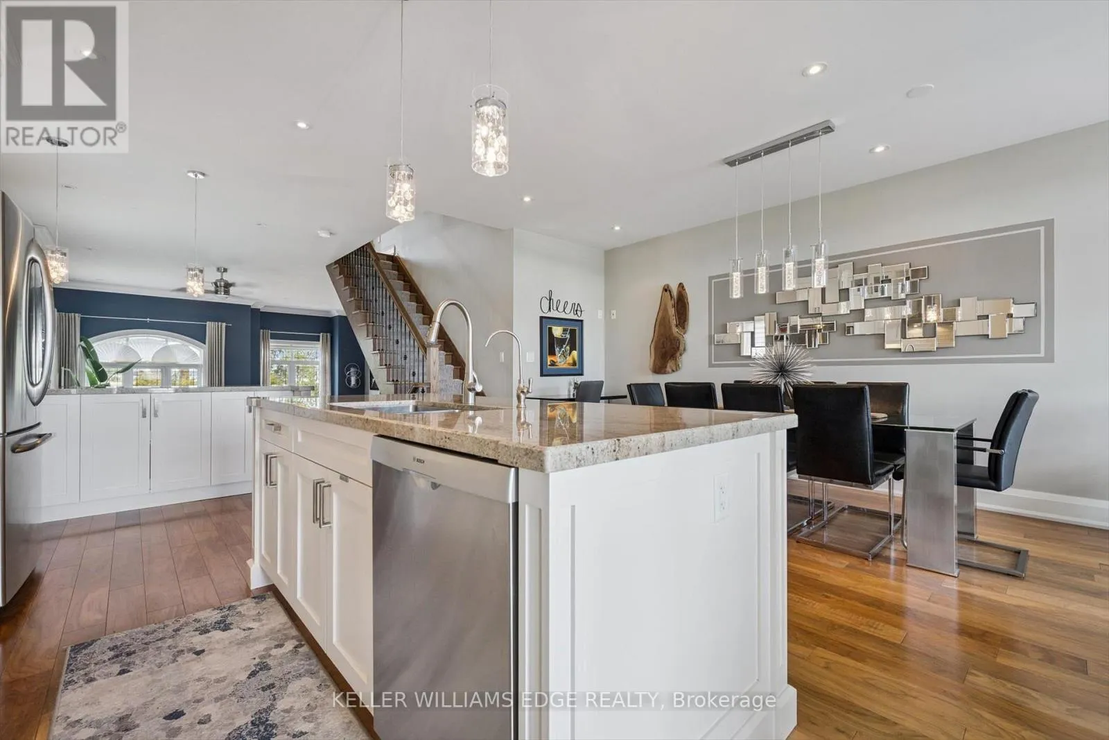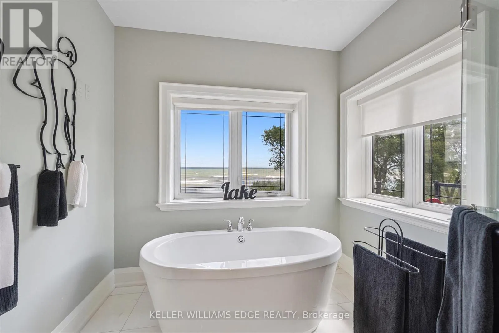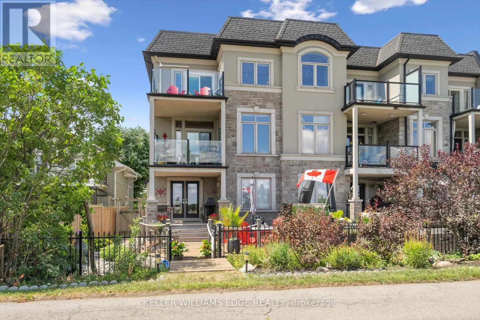 Cross Streets: Eastport Drive. ** Directions: Between Eastport Drive & Van Wagners Beach Road. Experience waterfront living in this beautifully appointed 3-bed, 4-bath executive freehold townhome, over 3000 sq ft of thoughtfully designed living space. As a desirable end unit, it provides additional privacy, more windows for natural light, direct backyard access, and the convenience of a full two-car driveway. Enjoy stunning east-facing lake views and breathtaking sunrises from multiple vantage points, including three oversized terraces. The open-concept layout features soaring ceilings and a spacious, upgraded kitchen with an expansive island and premium stainless steel appliances, ideal for entertaining. Designed with comfort and durability in mind, this home includes 8" reinforced concrete construction through the centre for added sound separation and structural integrity. Take in uninterrupted lake views from nearly every room and enjoy direct access to the waterfront lifestyle-launch your kayak from the garage, stroll the boardwalk, or cycle along the lake to Spencer Smith Park and beyond. Ideally located steps to the beach and just minutes from downtown Burlington, with quick access to Toronto and Niagara via major highways. A rare opportunity to enjoy low-maintenance luxury living by the water. (id:27476)