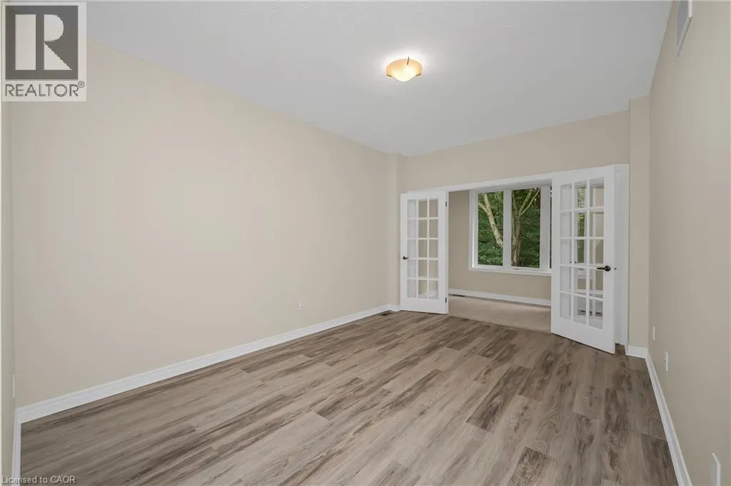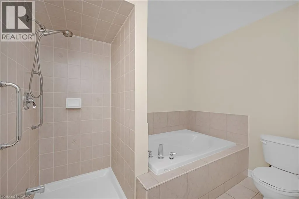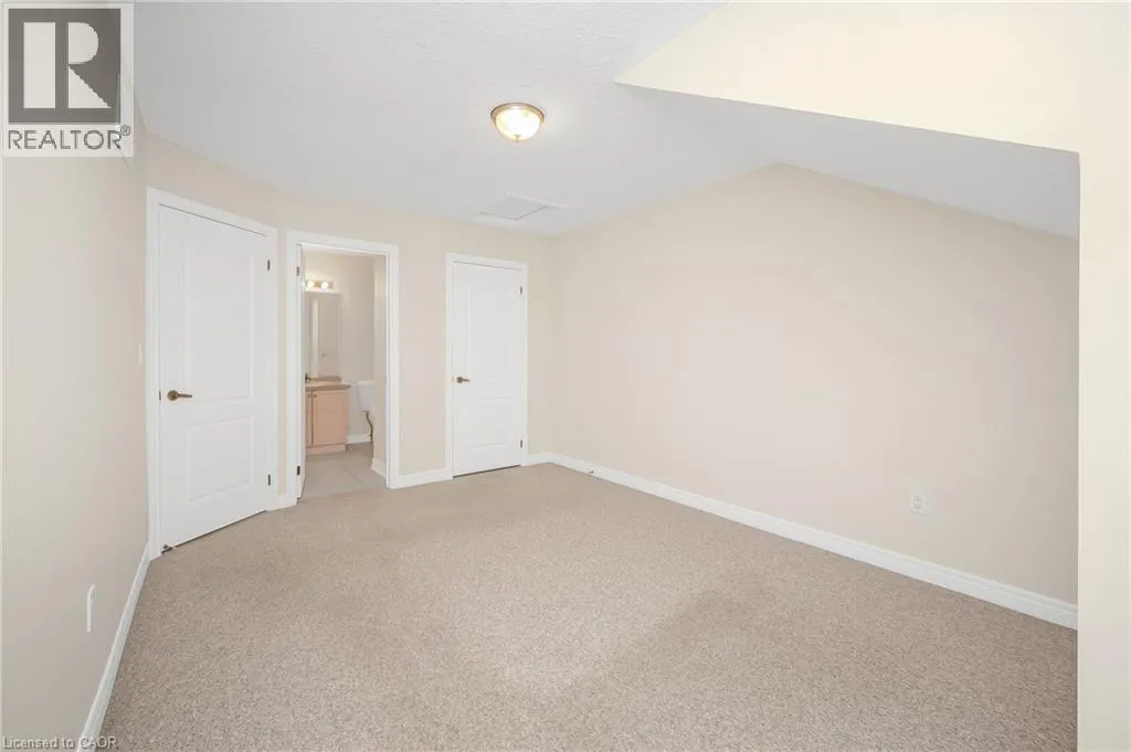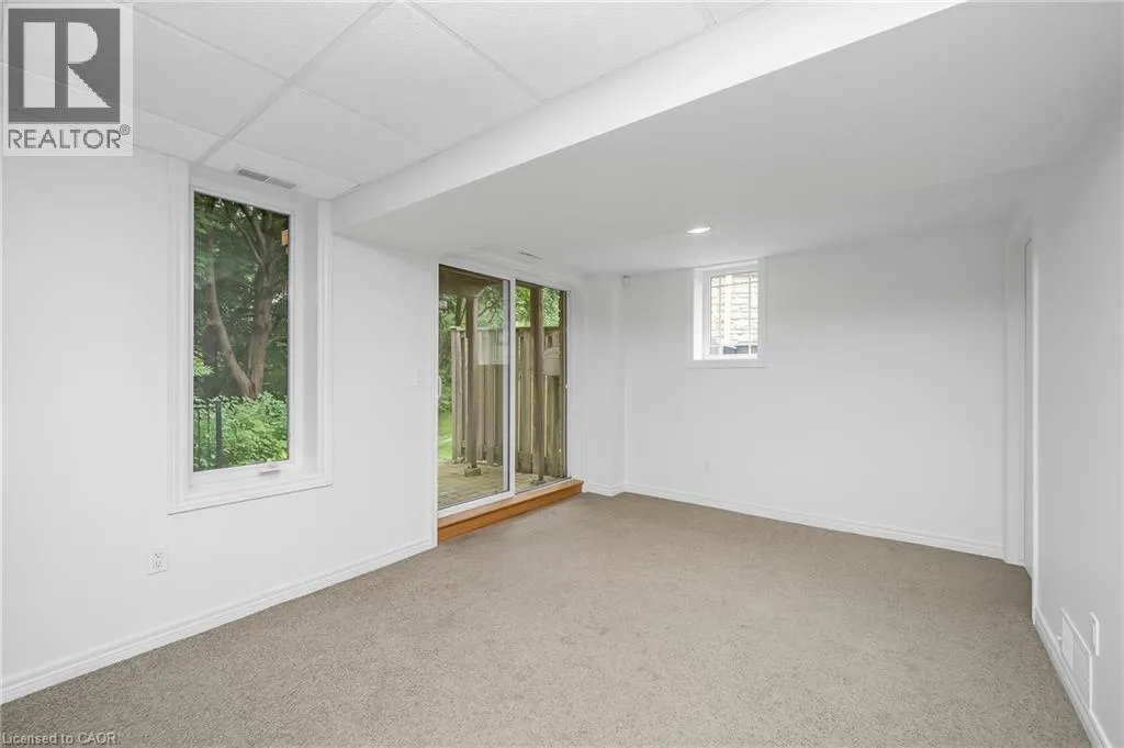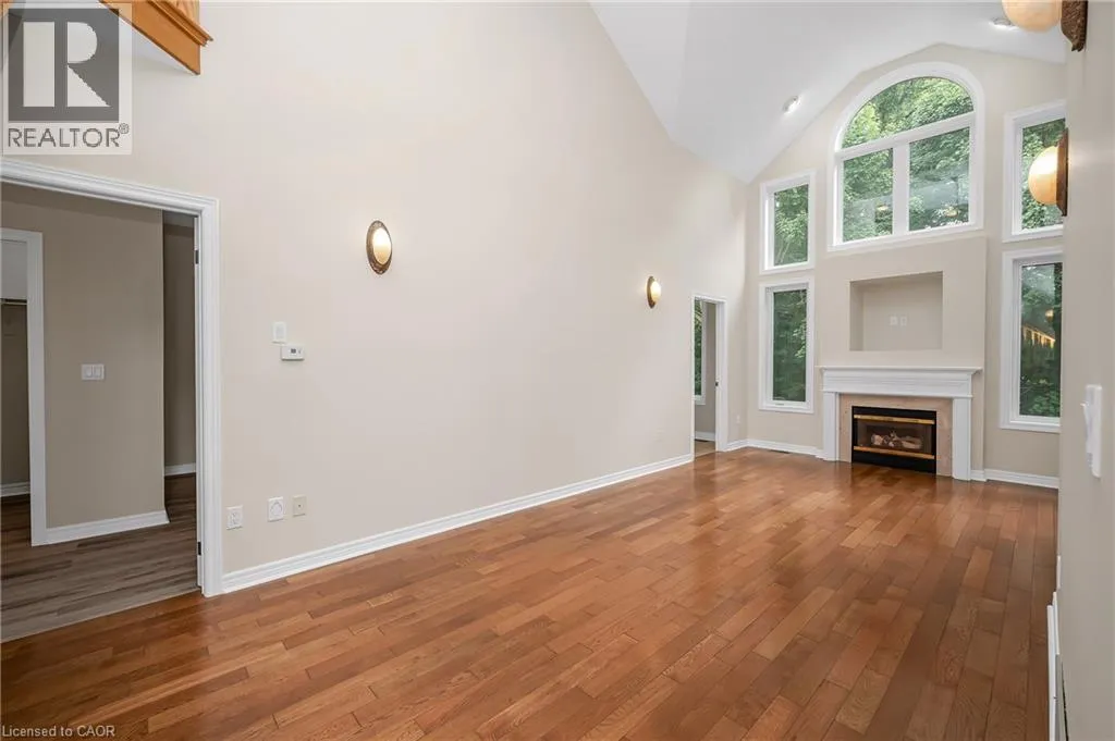 Tranquility to past Valridge. Enter into Wesleyan property on left hand side Desirable End-unit, 2 Car Garage bungaloft. Backing onto a serene ravine with breathtaking views, a double car garage and driveway and a fully finished walk out basement. Located in Ancasterâs desirable Castle Ridge enclave in Parkview Heights neighbourhood. With 3200 sq ft of finished living space. This home is bright, spacious and move-in-ready. Freshly painted throughout, updated flooring, newly stained oak staircase and beautifully maintained by the original owner. There are 3 spacious bedrooms, with a Main floor Primary Retreat and 4 bathrooms. Spacious kitchen and dining area with sliding patio door to the private deck. The unit is Bright and airy with tons of windows all featuring beautiful views and allowing natural light to pour in. Living/dining rm with gas fireplace, towering cathedral ceilings, and a Stunning 2 story wall of windows overlooking green space. The massive, main level, primary suite has an additional sitting space (or office /den area), a walk-in closet and ensuite bath with walk-in shower and soaker tub. The main level offers laundry, inside access to garage, additional bath and a separate family room that could be used as another bedroom, home office or den. Loft area upstairs offers its own private suite - bedroom, 4-piece bath, & family room area. The fully finished walk out basement comes with a kitchenette, full bathroom, extra bedroom, storage areas and a large rec room with tons of windows. Sliding doors offers a separate entrance and access to the lower patio that backs onto green space. Truly a must see. Backing onto the ravine with no rear neighbours, tons parking, 2 Car Garage, double driveway and views that will take your breath away. Must be seen to be appreciated. This home will not disappoint. RSA. (id:27476)