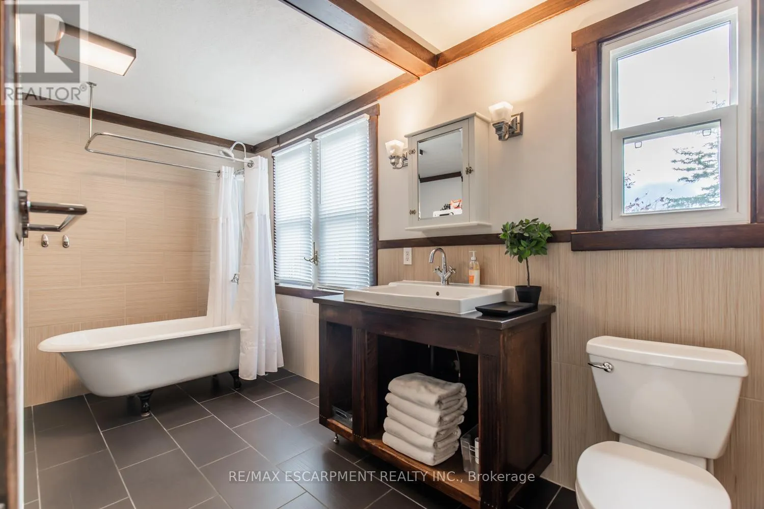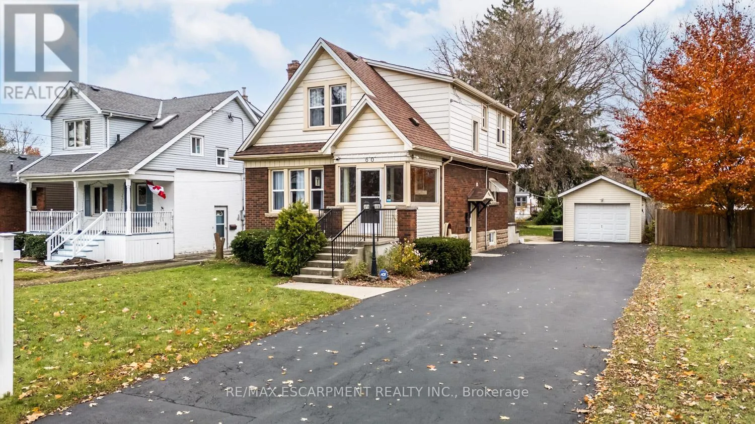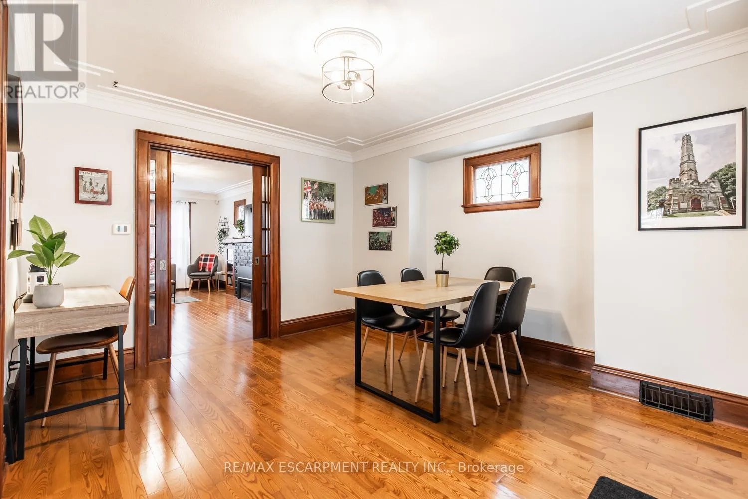 Hwy 8 or King St E. Charming 3-Bed, 2-Bath Stoney Creek Home with In-Law Suite! This bright and open main floor boasts a cozy living room with a fireplace, a kitchen featuring stainless steel appliances, and a spacious dining room with double doors leading to the back deck. Upstairs offers three generously sized bedrooms, a large 4-piece bathroom with laundry, and access to a quaint private balcony. A separate walk-out basement entrance leads to the in-law suite, complete with its own living area, bedroom, kitchen, and washer/dryer. Situated on a large 45 x 239.50 ft lot with a private deck, shed, and a detached garage! This home is close to Battlefield Park, downtown Stoney Creek, parks, shops, great schools, and offers easy highway access. (id:27476)