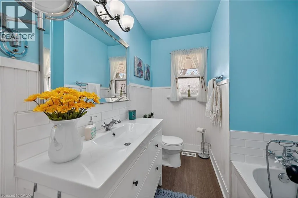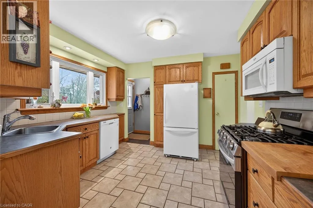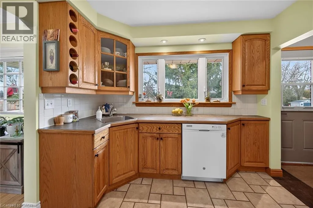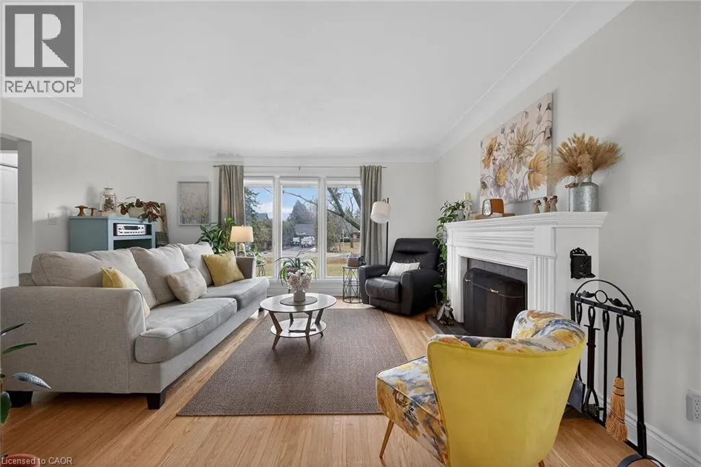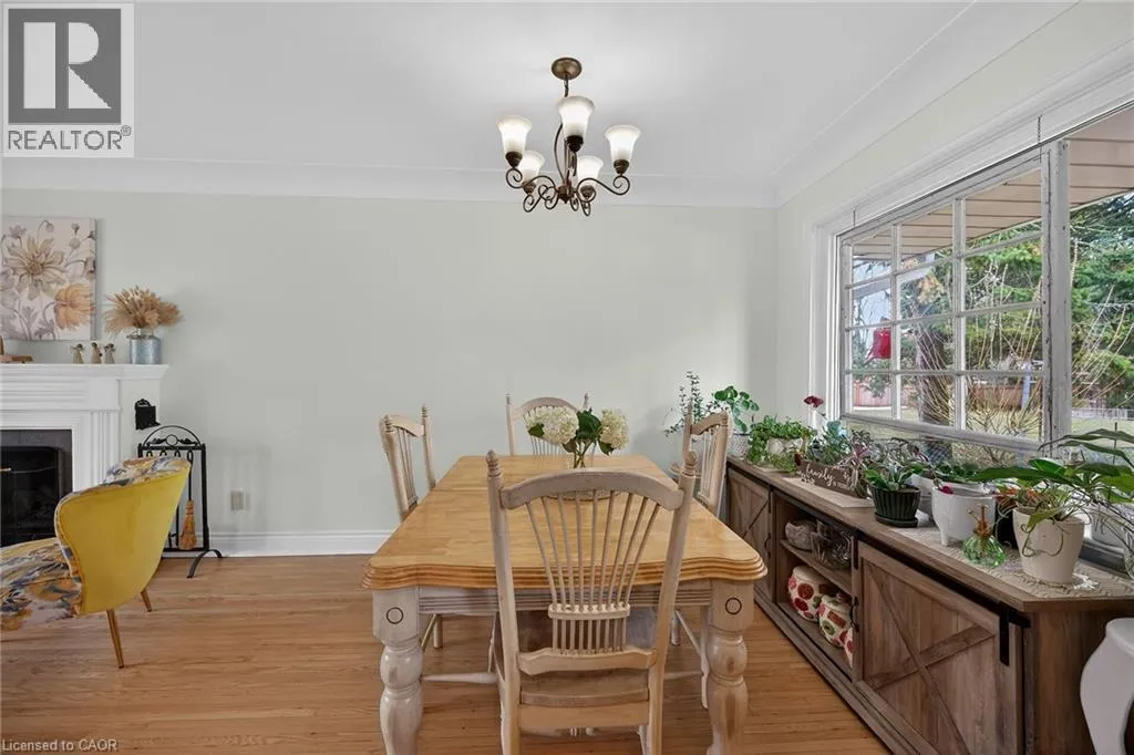 SOUTH ON UPPER JAMES EAST ON ALDERLEA, SOUTH ON SENECA A rare opportunity to own a beautifully maintained family home in a highly desirable location. Set on an expansive, parklike lot, this inviting residence offers the perfect balance of comfort, character, and everyday convenience--just minutes from local amenities and easy highway access for commuters. Inside, the home features 3+1 well-proportioned bedrooms and 2 full bathrooms. The sun-filled living room is anchored by a classic wood burning fireplace, creating a warm and welcoming atmosphere, while large windows allow natural light to flow throughout the main level. The fully finished basement extends the living space and includes a separate laundry room along with a character-rich wet bar--an ideal setting for hosting friends and family. A large garage with stairway access leads to an impressive loft, offering exceptional storage or exciting potential for future expansion. Step outside to enjoy the two-tiered, illuminated deck overlooking a sprawling backyard that needs to be seen to be appreciated. Whether relaxing, entertaining, or gardening, the outdoor space offers endless possibilities--complete with a mature raspberry bush that delivers fresh summer fruit year after year. (id:27476)