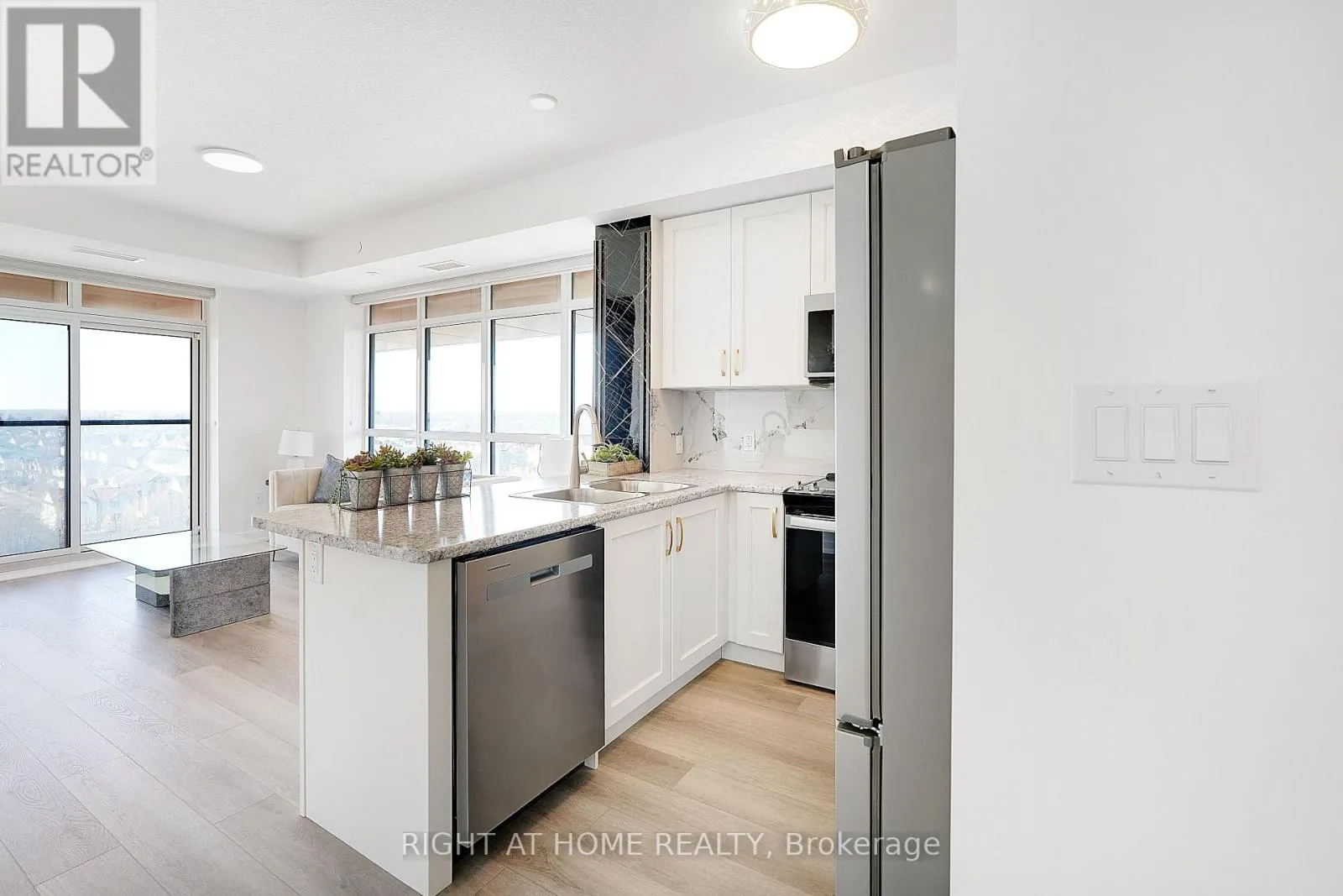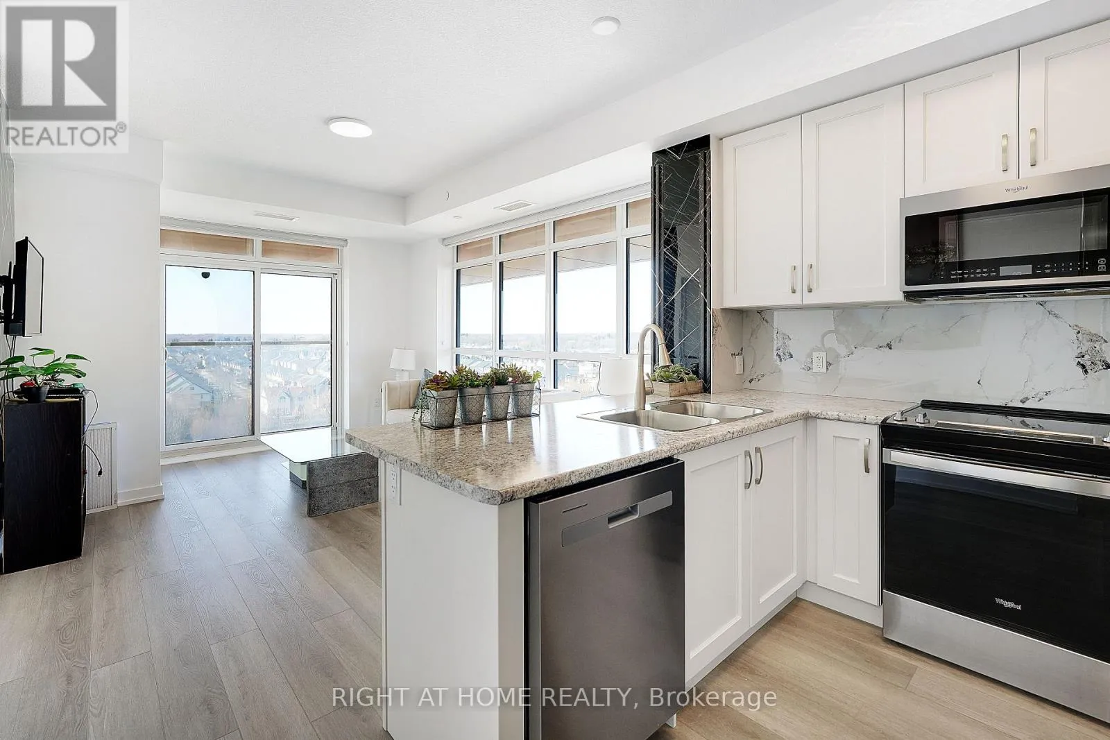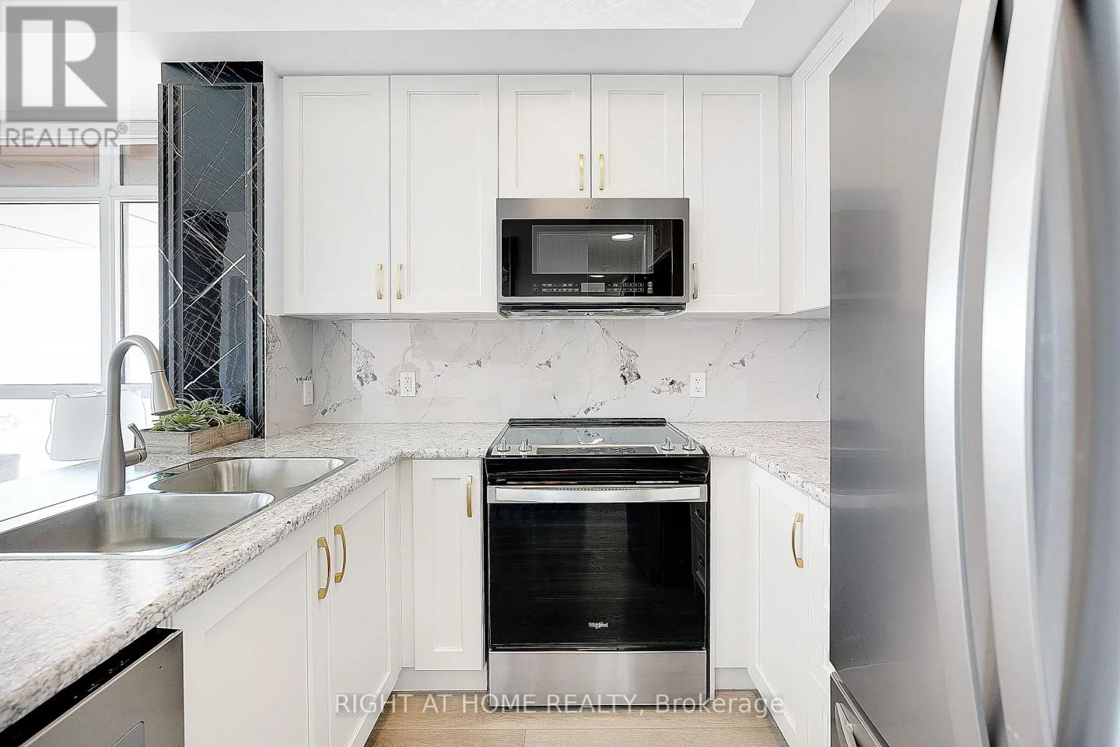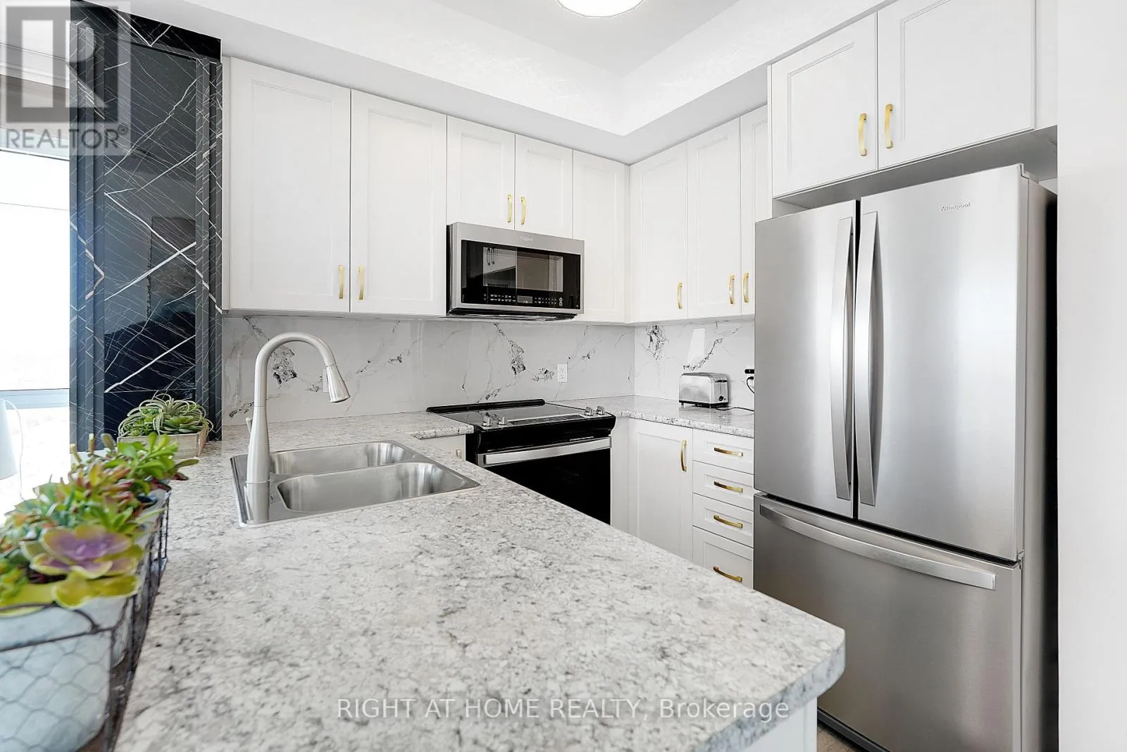 Cross Streets: Dundas St/ Riverwalk Dr. ** Directions: Dundas St/ Riverwalk Drive. Modern Trend Living condo with 9-ft ceilings and an open-concept layout. Features ceramic tile flooring and bright LED lighting throughout. The stylish kitchen offers custom cabinetry, designer faucet, and laminate countertops with a backsplash, while the bathrooms boast quartz countertops and spa-inspired premium fixtures. Enjoy a feature wall for your TV, a French balcony, and an owned locker for extra convenience. Pet-friendly in both living areas and bedrooms. This energy-efficient building includes geothermal heating/cooling, secure entry, 2 owned underground parking spaces, rooftop terrace, and professional management. Freshly painted and perfectly located near parks, shopping, restaurants, and major highways. (id:27476)