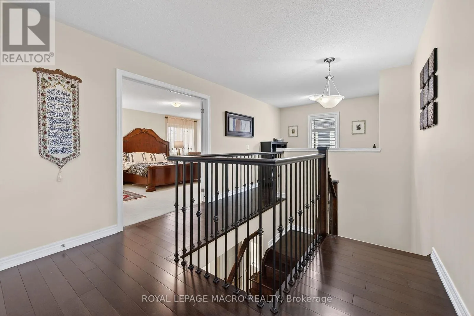 Cross Streets: Woodhouse. ** Directions: Raymond to Sutherland, turn right on Woodhouse Street/ Grandell Drive. Exceptional family home situated on a fabulous oversized lot! This stunning 4-bedroom, 3.5-bath two-storey home is located in a wonderful newer community, close to shopping, schools, and major highways. The spacious backyard offers endless possibilities and is large enough for a pool and outdoor entertaining. Step inside to a grand staircase with elegant wrought-iron spindles and impressive 9-foot ceilings throughout the main level. The beautifully designed kitchen features an eat-in area, upgraded cabinetry, pantry, breakfast bar, stylish backsplash, stainless steel appliances, ceramic flooring, and a walk-out to the backyard. The inviting living room showcases hardwood floors, a cozy gas fireplace, and large windows that fill the space with natural light. A formal separate dining room with porcelain tile flooring provides the perfect setting for entertaining. The main floor also includes a functional den/office, ideal for working from home. Upstairs, the spacious primary bedroom offers plush carpeting, his-and-hers walk-in closets, and a luxurious 5-piece ensuite with double sinks, a separate shower, and a relaxing soaker tub. Two of the additional bedrooms share a convenient Jack-and-Jill bathroom, while the fourth bedroom features its own walk-in closet and private 4-piece ensuite. A study nook on the second floor adds extra versatility for homework or workspace. The huge unfinished basement with high, clear ceilings provides excellent potential for future customization. Additional features include a humidifier and air exchanger. (id:27476)