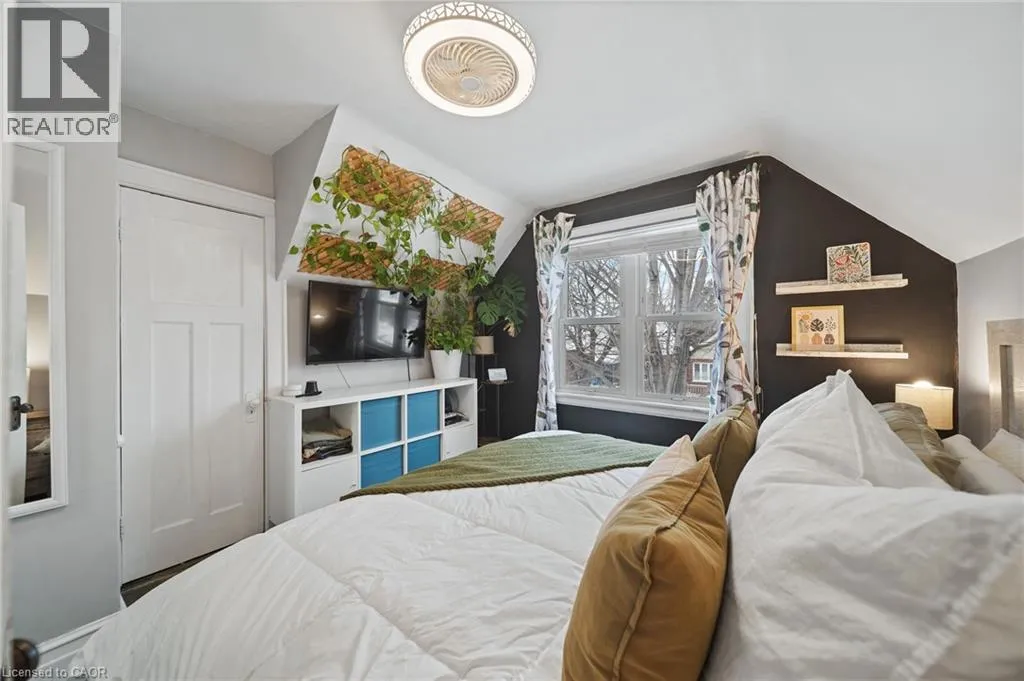 North onto Cope Street from Main Street E. Welcome to 22 Cope Street, a charming 1.5-storey brick home tucked into a quiet, central Hamilton neighbourhood with quick access to the Red Hill Valley Parkway for easy commuting across the city, the GTA, or Niagara. This warm and inviting home blends timeless character with thoughtful modern updates. The upper level features two spacious bedrooms with deep closets and a full newly updated bathroom. On the main floor, youâre welcomed from the covered front porch into bright living and dining spaces filled with original trim, a decorative brick fireplace, and an easy, functional layout. The kitchen offers stainless steel appliances, a stone backsplash, and butcher block counters, connecting seamlessly to a rear mudroom and a versatile additional main-floor room that works beautifully as a playroom, office, or third bedroom. Downstairs, the fully finished basement provides excellent bonus living space, laundry and storage, plus an added two-piece bath. Outside, the backyard is private and well cared for, featuring newer fencing, a concrete patio, and updated gates, perfect for relaxing, entertaining, or enjoying a bit of greenery in the city. Significant improvements have been completed throughout ownership, with over $25,000 in recent updates including sewer lining, back-flow protection, basement flooring and levelling, plumbing upgrades, a beautifully renovated bathroom, and more, offering peace of mind for the next homeowner. Located close to parks, trails, schools, and everyday amenities, 22 Cope Street is a wonderful opportunity to enjoy a move-in-ready home with character, comfort, and long-term value in the heart of Hamilton. (id:27476)