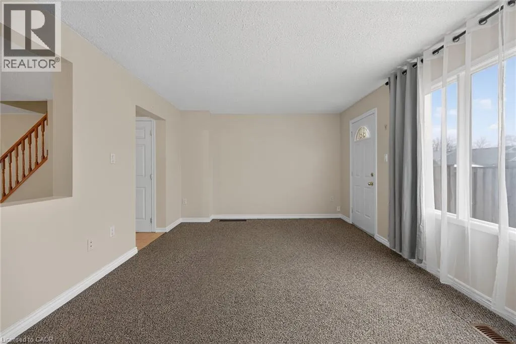 SOUTH ON QUIGLEY ROAD AND EAST ON ANGUS ROAD. Great opportunity to own a beautifully maintained end-unit townhome in Hamiltonâs desirable Vincent neighbourhood. Backing onto private homes only, this unit offers exceptional privacy and a quieter setting. Located in a safe, family-friendly with a conveniences of walking to schools, shops and recreation facilities, this home is ideal for first-time buyers, downsizers, or investors. Features include 3 generously sized bedrooms, 1 bathroom, a spacious kitchen, separate dining area, and a bright living room with walkout to a fully fenced backyard with year-round privacy. The full basement offers endless possibilities for a rec room, home office, or playroom, plus ample storage and convenient garage access. Minutes to the QEW, Red Hill Valley Parkway, shopping, schools, visitor parking, and a kids playground â all while tucked away from main road traffic. Donât miss your chance to own this great home itâs an ideal blend of functionality, convenience and affordability. (id:27476)