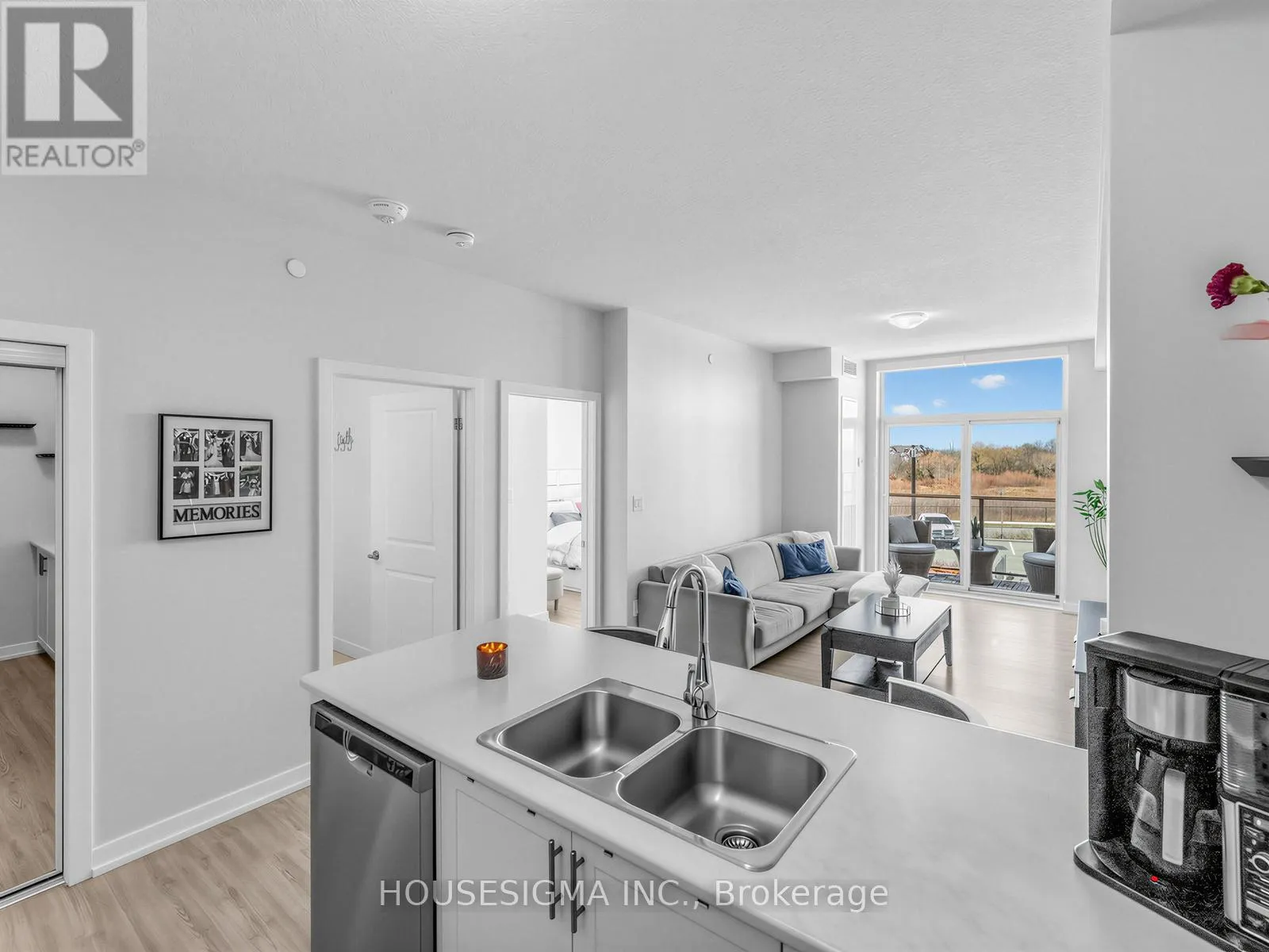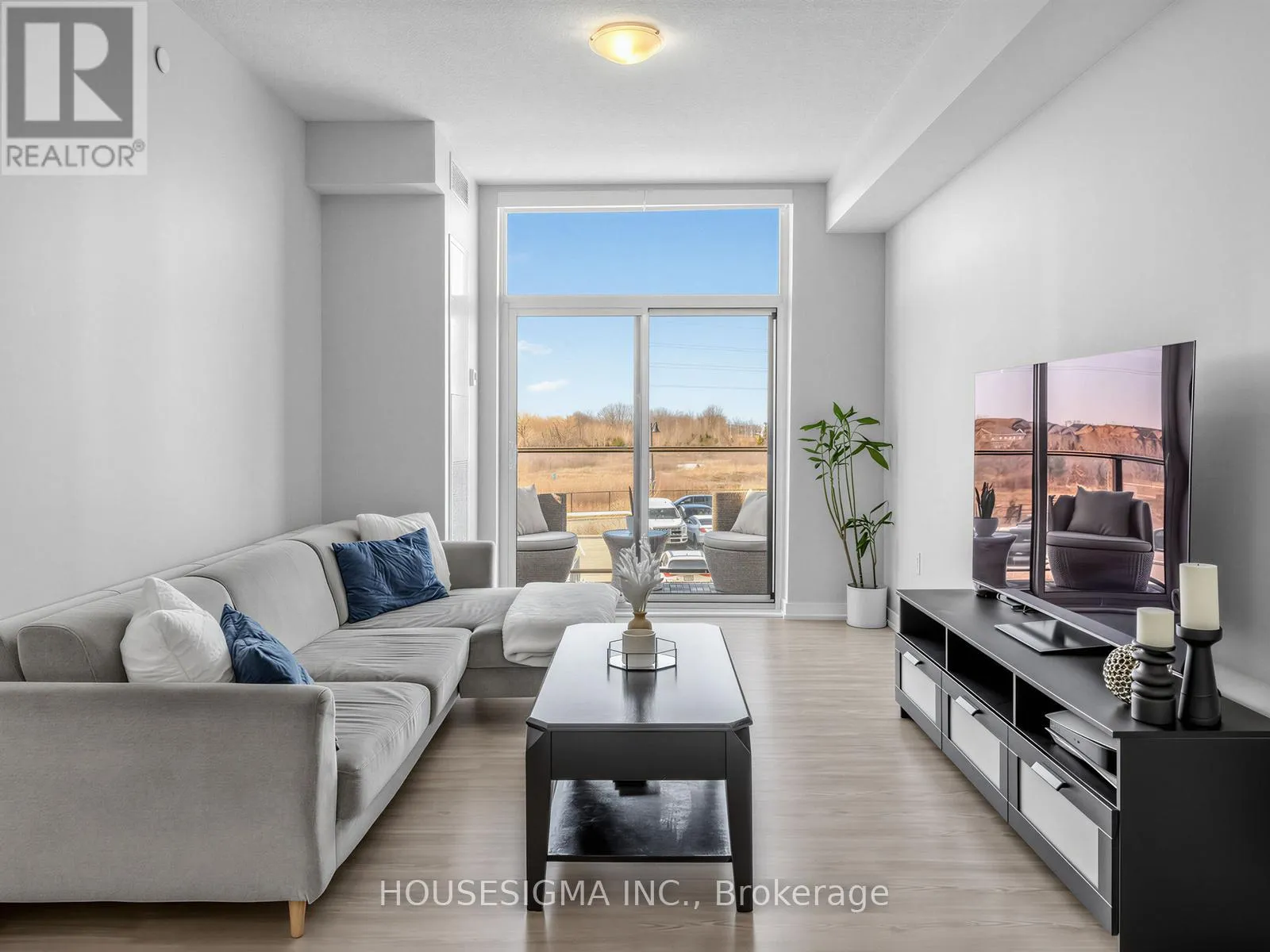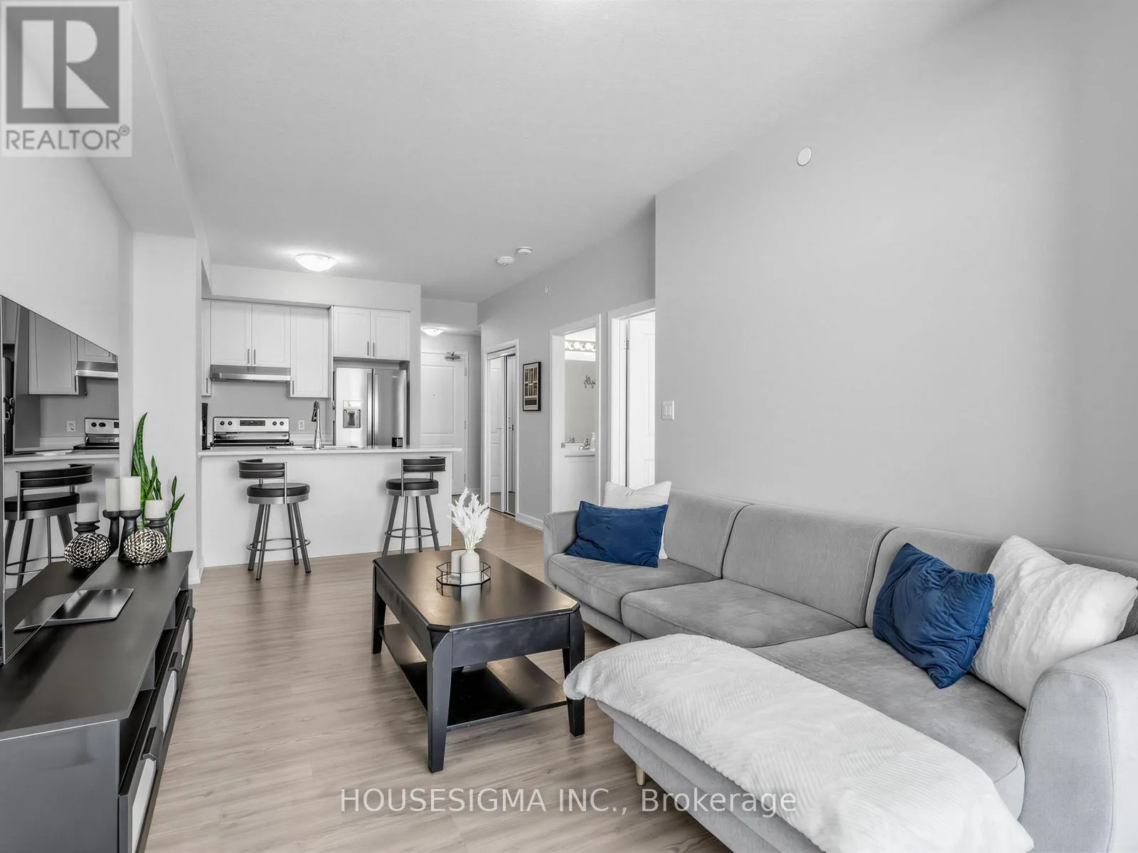 Dundas and Riverwalk Rare 2 Parking Spaces! Welcome to Trend Living in the heart of Waterdown. This beautifully maintained 1+den condo offers 692 sq. ft. of bright, functional living space with desirable western exposure that fills the unit with natural sunlight. Located on the second floor, the unit features an open-concept layout with laminate flooring throughout and a versatile den ideal for a home office, reading nook, or guest space. Step outside to your private open balcony, perfect for relaxing and enjoying the fresh air.This unit includes two parking spaces (one underground and one outdoor) and a private locker, providing rare and valuable convenience. Situated in the highly sought-after Trend community, with easy access to parks, shopping, dining, and major highways while enjoying the charm of Waterdown. A bright, move-in-ready condo perfect for first-time buyers, professionals, or investors. (id:27476)