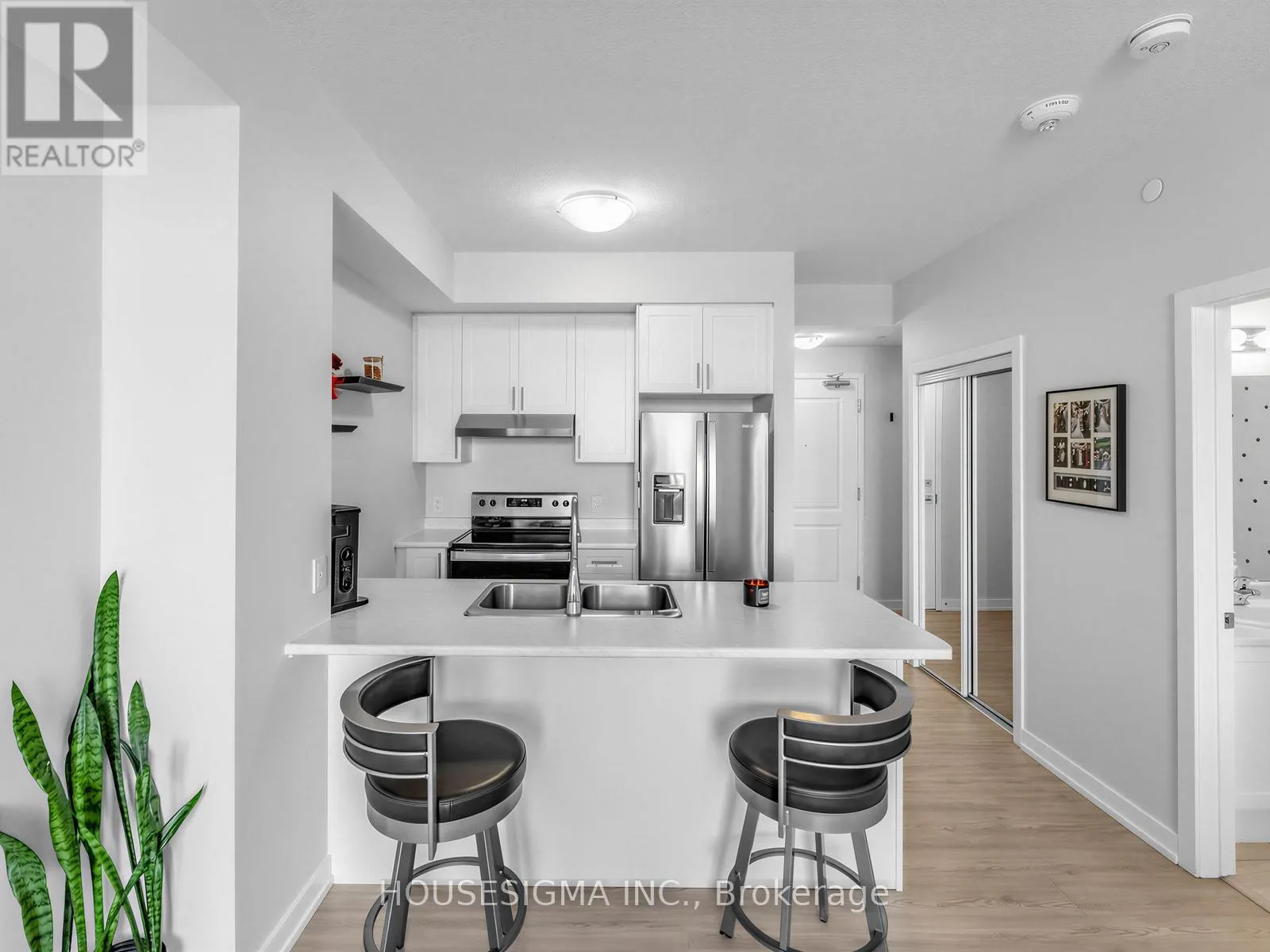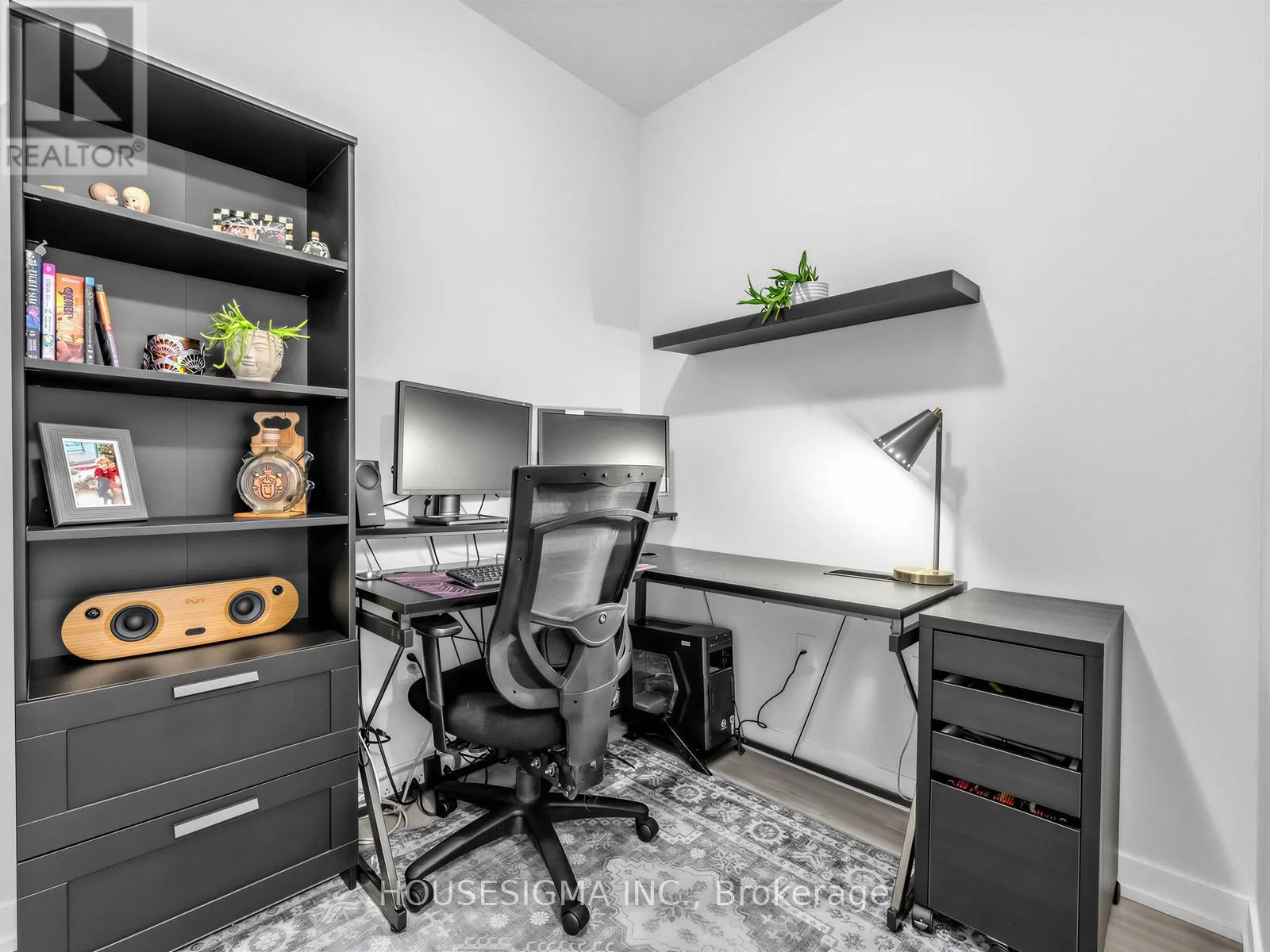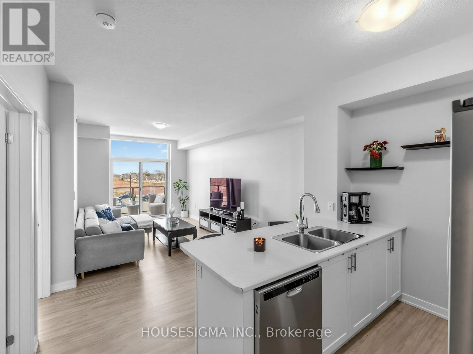 Dundas and Riverwalk Rare 2 Parking Spaces! Welcome to Trend Living in the heart of Waterdown. This beautifully maintained 1+den condo offers 692 sq. ft. of bright, functional living space with desirable western exposure that fills the unit with natural sunlight. Located on the second floor, the unit features an open-concept layout with laminate flooring throughout and a versatile den ideal for a home office, reading nook, or guest space. Step outside to your private open balcony, perfect for relaxing and enjoying the fresh air.This unit includes two parking spaces (one underground and one outdoor) and a private locker, providing rare and valuable convenience. Situated in the highly sought-after Trend community, with easy access to parks, shopping, dining, and major highways while enjoying the charm of Waterdown. A bright, move-in-ready condo perfect for first-time buyers, professionals, or investors. (id:27476)