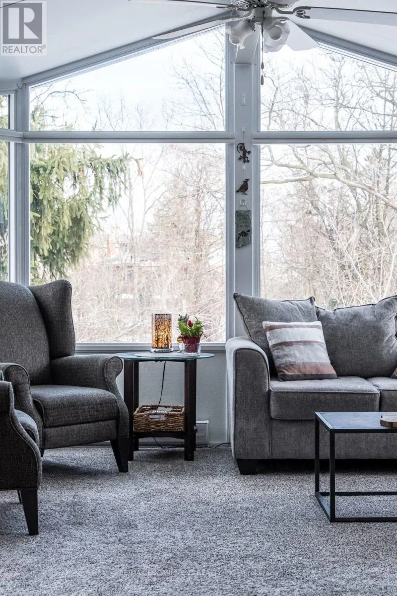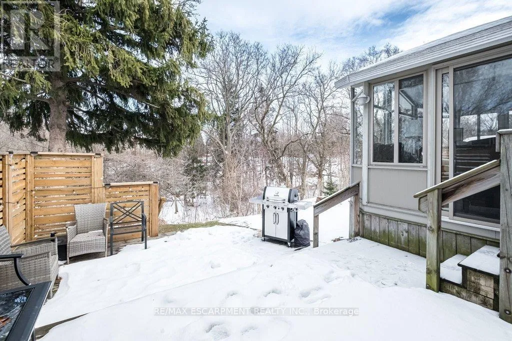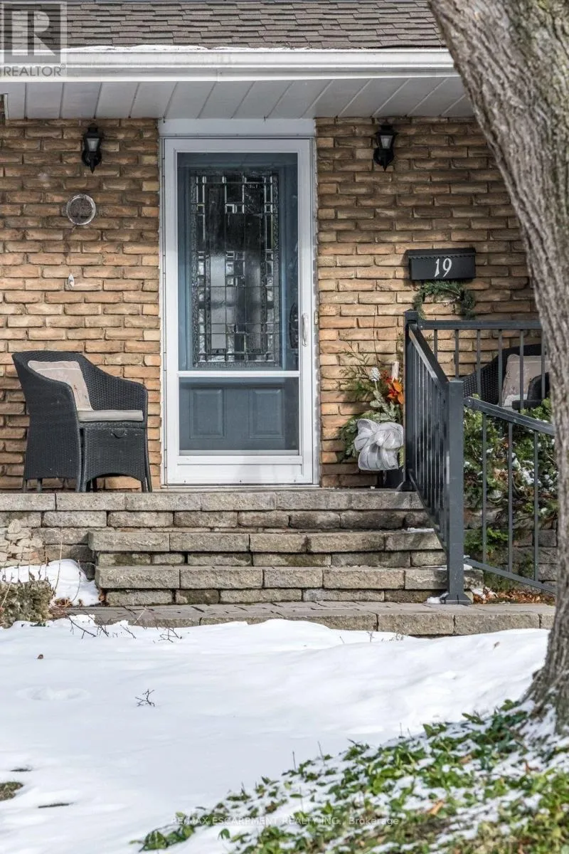 Cross Streets: Scenic Drive. ** Directions: Scenic north from Mohawk, bear to the right and then south onto Chateau Crt. Welcome to 19 Chateau Court in Hamilton, an exceptional opportunity! Families and professionals from the GTA (especially Mississauga, Oakville, & Toronto) seeking space, nature, & family lifestyle without leaving urban conveniences behind. This beautifully maintained four- bedroom home sits on a premium ravine lot offering rare privacy and peaceful treed views-something increasingly hard to find in larger city markets. The backyard retreat features a bright sunroom addition by QSI (2004, with permits) that opens to a remarkable two-tier deck with privacy fencing overlooking the ravine. A perfect setting for family gatherings, outdoor dining, and relaxed evenings surrounded by nature. Inside, the home balances comfort and practicality with a renovated Canec kitchen (2005), welcoming living room with Napoleon gas fireplace (2004), and durable ceramic flooring (2020) in high-traffic areas including the front hall, kitchen, back entry, and powder room. Alexanian broadloom (2022) adds warmth to the sunroom, living and dining rooms, staircase, and hallway, with original hardwood floors beneath. The upper level offers four spacious bedrooms and a beautifully renovated bathroom (2020), ideal for growing families or home office needs. Finished recreation room provides flexible family space for play, movies, or hobbies. Extensive updates include eaves & gutter protection (2015), repaved driveway (2018), redesigned front porch and gardens by Gelderman Landscaping, roof replacement by DeLuca Roofing (2019), and newer Boonstra furnace, A/C & heat pump (2025). Hamilton boasts exceptional education: public and private grade and secondary schools systems, Hillfield Strathallan College, McMaster University, Mohawk College, & Redeemer College. Family living thrives near parks, escarpment trails, shopping, dining, transit, and convenient highway access. This is a rare opportunity to enjoy privacy, quality updates, natural beauty, & family value many GTA buyers are seeking in Hamilton. (id:27476)