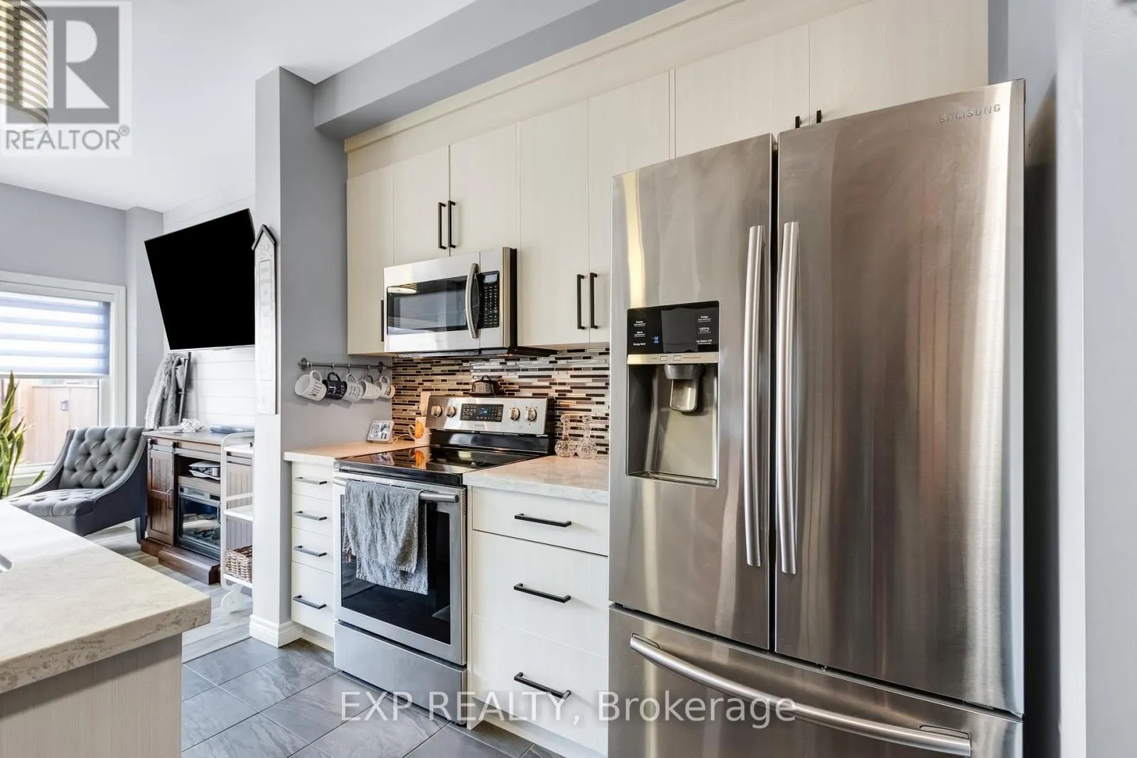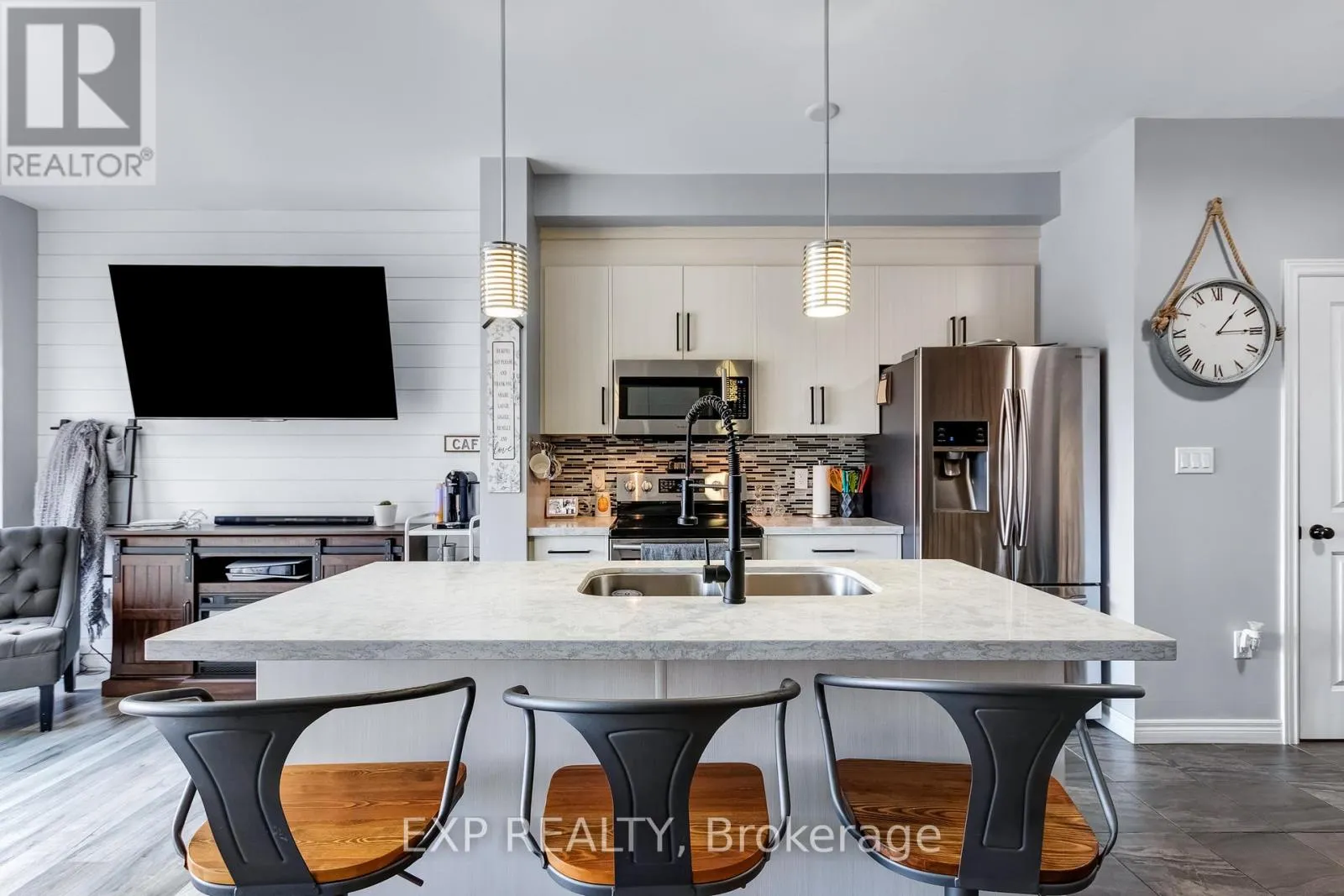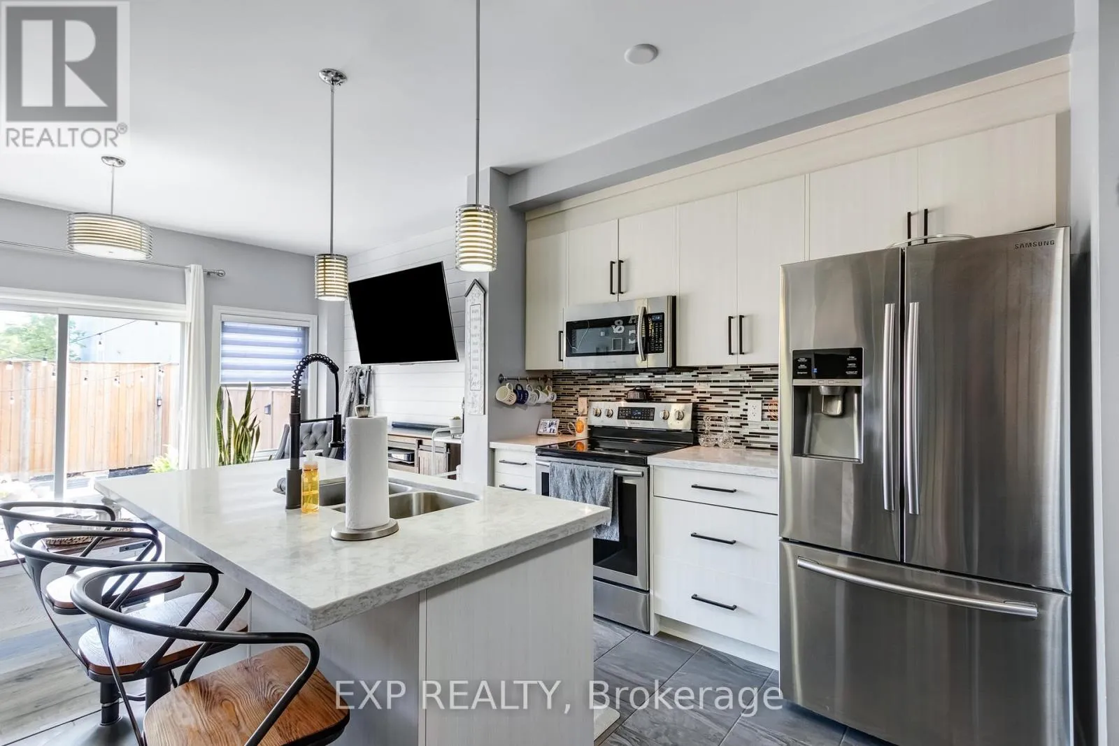 Woodward & Glow Welcome to this beautiful detached home in a sought after family neighbourhood near Lake Ontario. The open concept main level is designed for modern living, featuring a stylish eat in kitchen with quartz counters, stainless steel appliances, centre island with breakfast bar, and walk out to a fully fenced backyard with stamped concrete patio, ideal for entertaining. The spacious primary suite offers a walk in closet and private ensuite with glass walk in shower, while all bathrooms feature granite countertops for a polished finish. Conveniently located close to schools, parks, major amenities, and easy highway access. (id:27476)