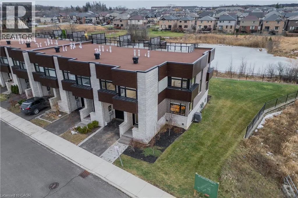 Green Mountain and Upper Centennial Beyond a home, Fallingwater is a statement of arrival and a masterpiece of the esteemed Losani Collection. This is not merely Unit #1; it is the vision that set the standard, the original model home that showcased the full potential of contemporary luxury living in Stoney Creek. Commanding the most expansive, pie-shaped lot, this end-unit sanctuary offers unrivaled privacy and a breathtaking, direct view over a tranquil outdoor pondâa serene vista enjoyed from your principal rooms. With only three units in the complex, exclusivity is paramount, and this residence represents the undisputed pinnacle. Step inside to discover over 2,441 square feet of impeccably designed, living space, artfully enhanced by high ceilings that amplifies the sense of light and volume. The home unfolds with the grace of a gallery, leading you to a sprawling 164 sq. ft. elevated terrace, your private stage for outdoor entertaining. Ascend further to the 241 sq. ft. rooftop terraceâa crowning glory offering panoramic views and an unparalleled space for sunset soirees or peaceful contemplation. While other, more modestly scaled units are available in the complex, Fallingwater stands apart. It is the largest, the first, and by every measure, the finest. This is the home for those who seek not just square footage, but significance; not just a view, but a vista; not just a unit, but a legacy property. Presented with professional photography that captures its exquisite d architectural brilliance, Fallingwater awaits its final curator. This is your chance to acquire the cornerstone residence of Stone Creek's most distinguished address. (id:27476)