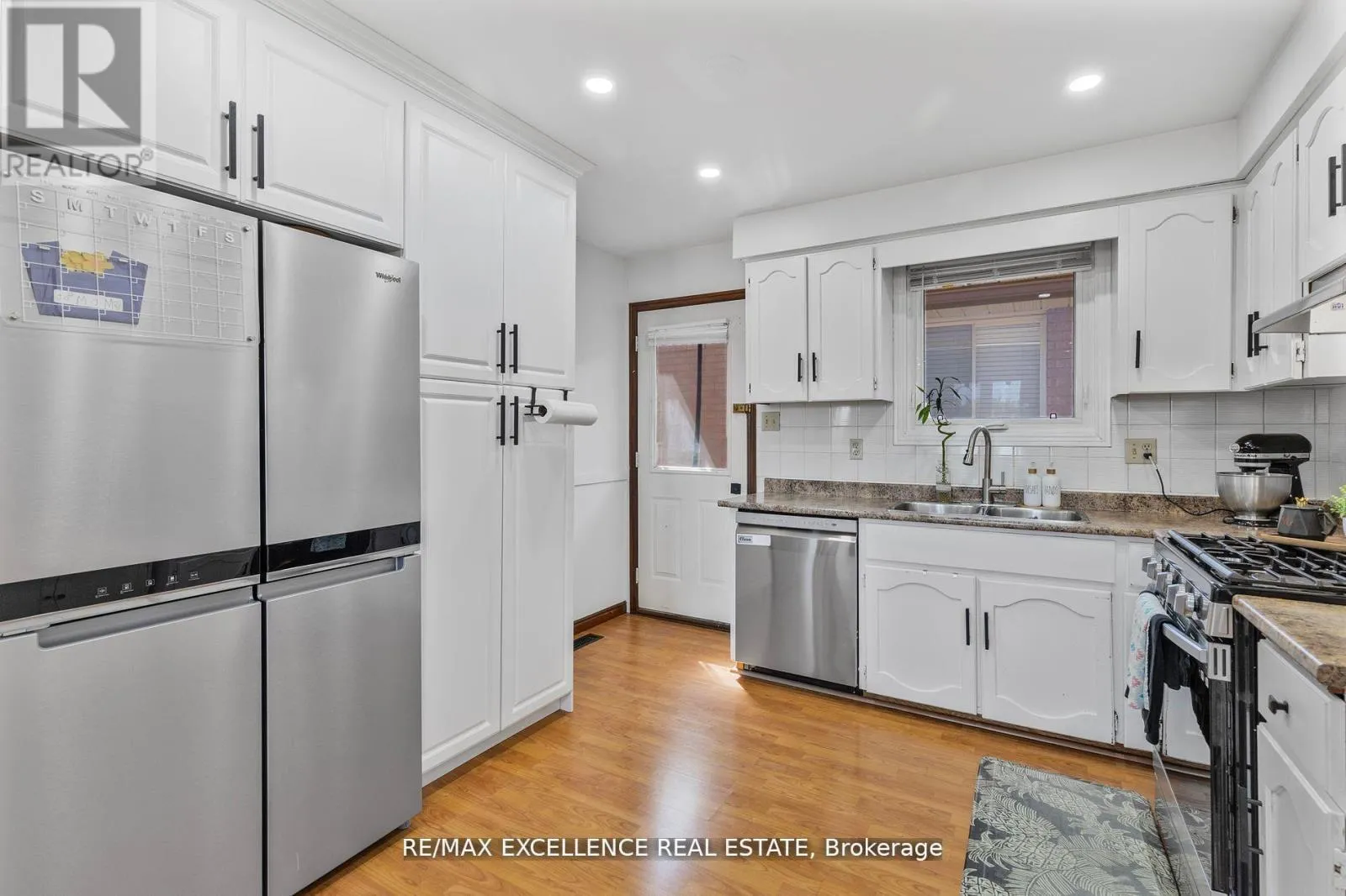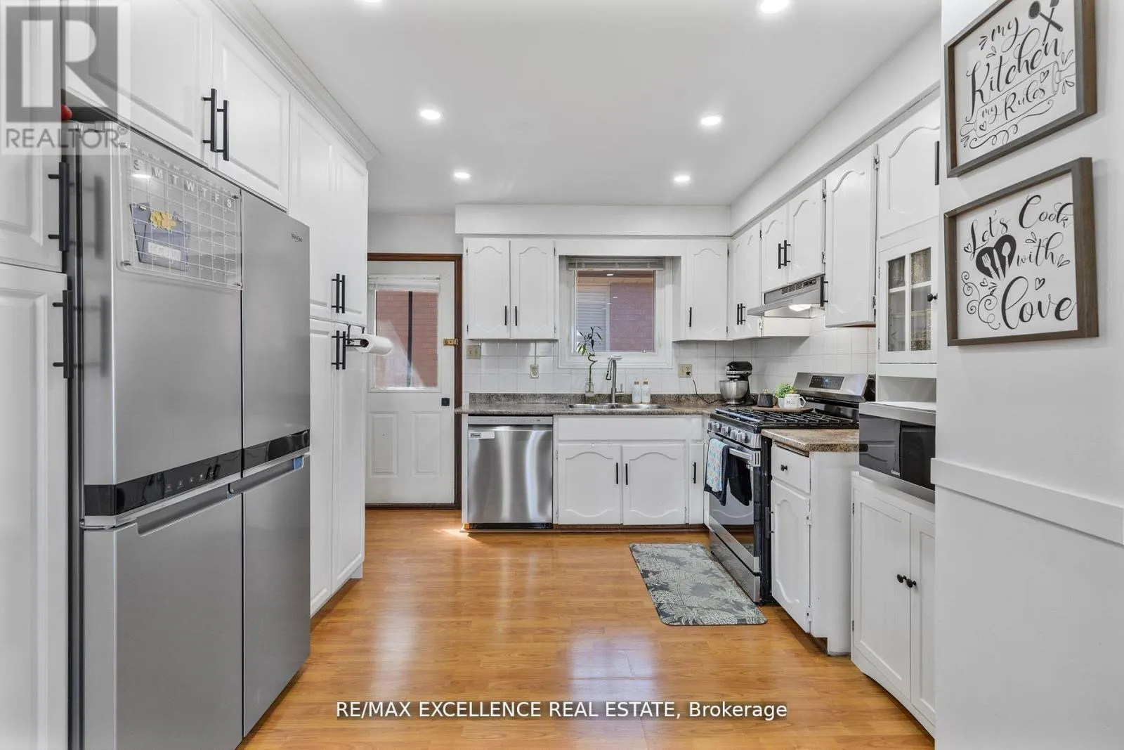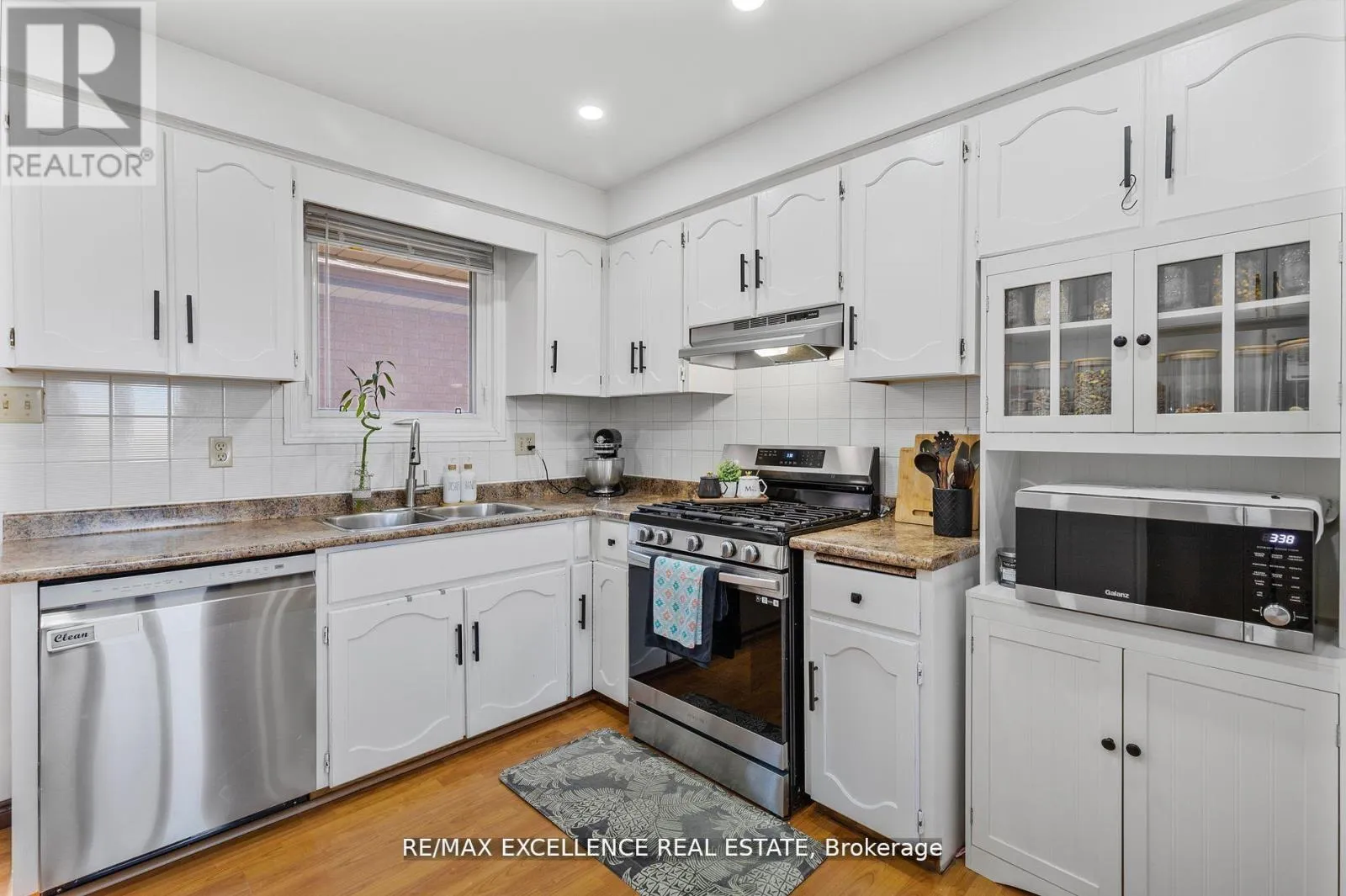 Cross Streets: Dewitt Road. ** Directions: Dewitt Road to Juniper Drive. Welcome to 102 Juniper Drive, a well-maintained 3-level detached backsplit situated on a massive premium corner lot in a desirable Stoney Creek neighbourhood. Offering 5 bedrooms and 2 bathrooms, this spacious home features a functional layout ideal for growing families, multi-generational living, or investors looking for future potential. The main level and lower family level are fully finished, providing generous living space including additional bedrooms and flexible areas that can accommodate extended family or a potential in-law setup. The basement level remains unfinished, offering excellent potential to create additional living space, a recreation area, or future income possibilities. Recent upgrades within the past 3 years include newer appliances (fridge, gas stove, dishwasher, washer & dryer), energy-efficient pot lights on the main and lower levels, fresh paint with modern feature wall accents, updated kitchen and bathrooms, new fencing, and enhanced security with cameras and a video doorbell. The lower family level also features two additional bedrooms with updated carpet-free flooring. The property offers a single car garage and a double driveway, providing ample parking for family and guests. Located in a family-friendly neighbourhood close to schools, parks, shopping, and highway access, this home offers the perfect combination of space, comfort, and future potential. (id:27476)